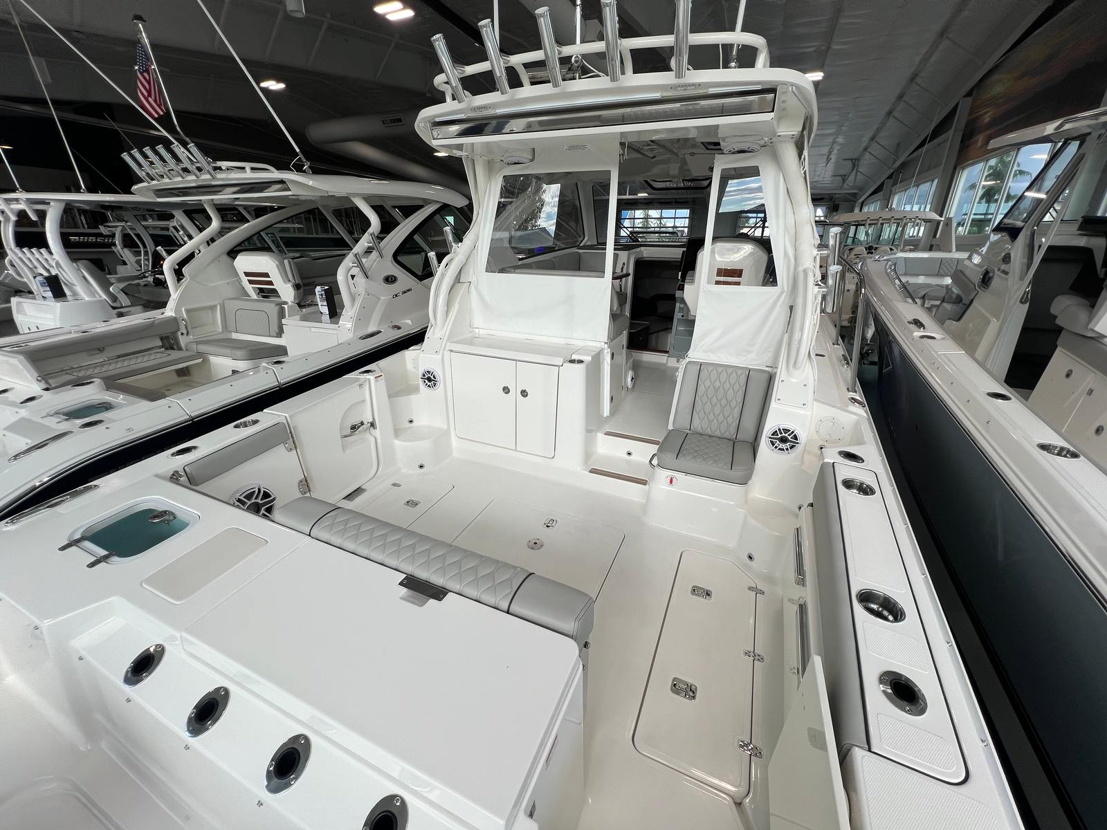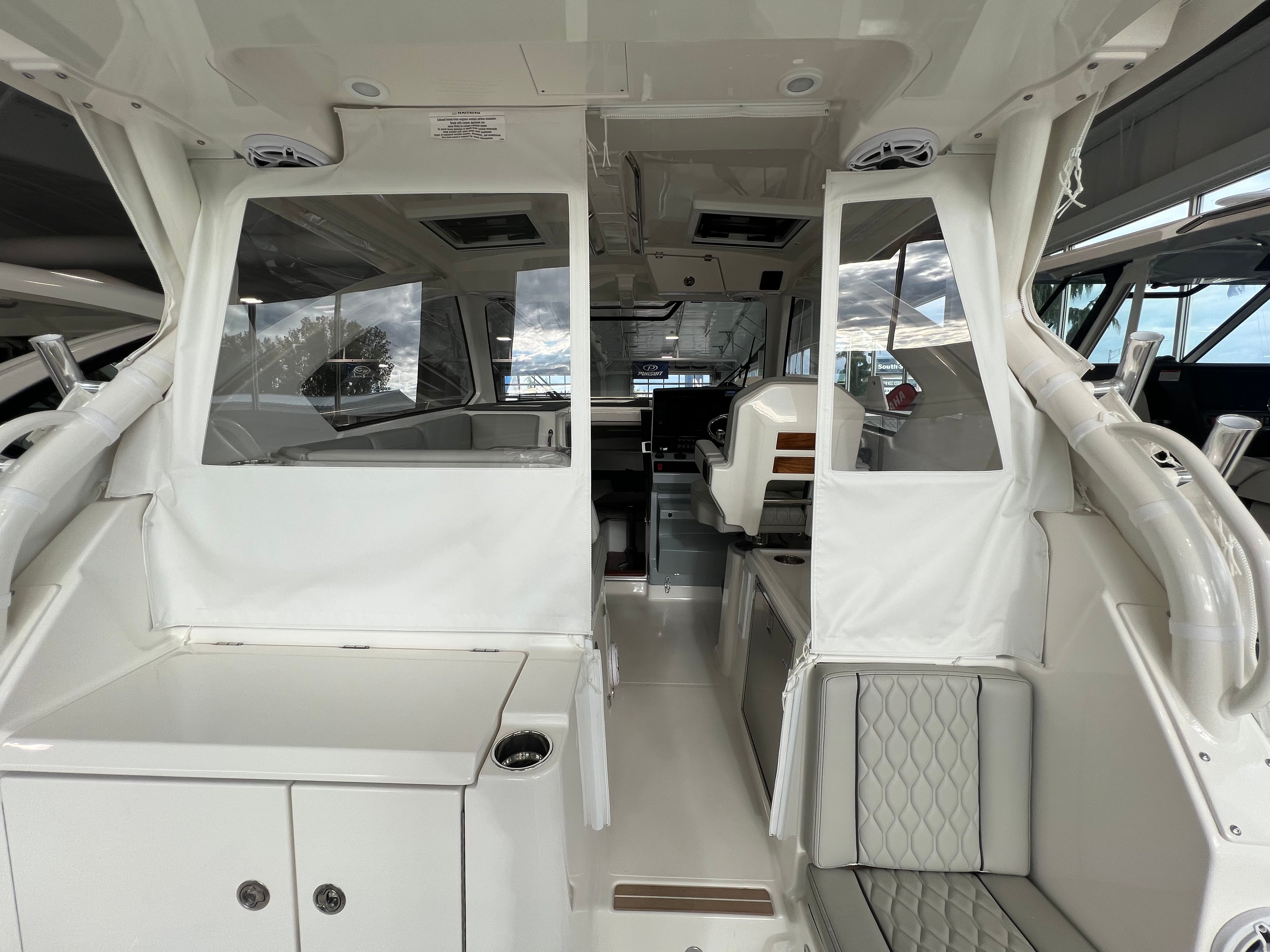 Owning the Pursuit 325 OS means embracing a lifestyle of fun, relaxation, and adventure. The spacious layout and premium amenities create the perfect setting for entertaining friends, hosting family gatherings, or simply unwinding in style. The advanced air conditioning systems in both the cabin and cockpit ensure that everyone stays cool and comfortable, even on the hottest days. The dedicated storage for tables and other essentials keeps the deck clutter-free, allowing you to move about the boat with ease and enjoy every moment on board.The Pursuit 325 OS is designed with socializing in mind, offering plenty of seating and gathering spaces for sharing meals, stories, and laughter. The elegant teak and fiberglass tables provide the ideal backdrop for alfresco dining or sunset cocktails, while the retractable sunshade allows you to customize your environment for maximum comfort. Whether you are seeking solitude or the company of loved ones, this cruiser boat for sale delivers the versatility and luxury you desire.