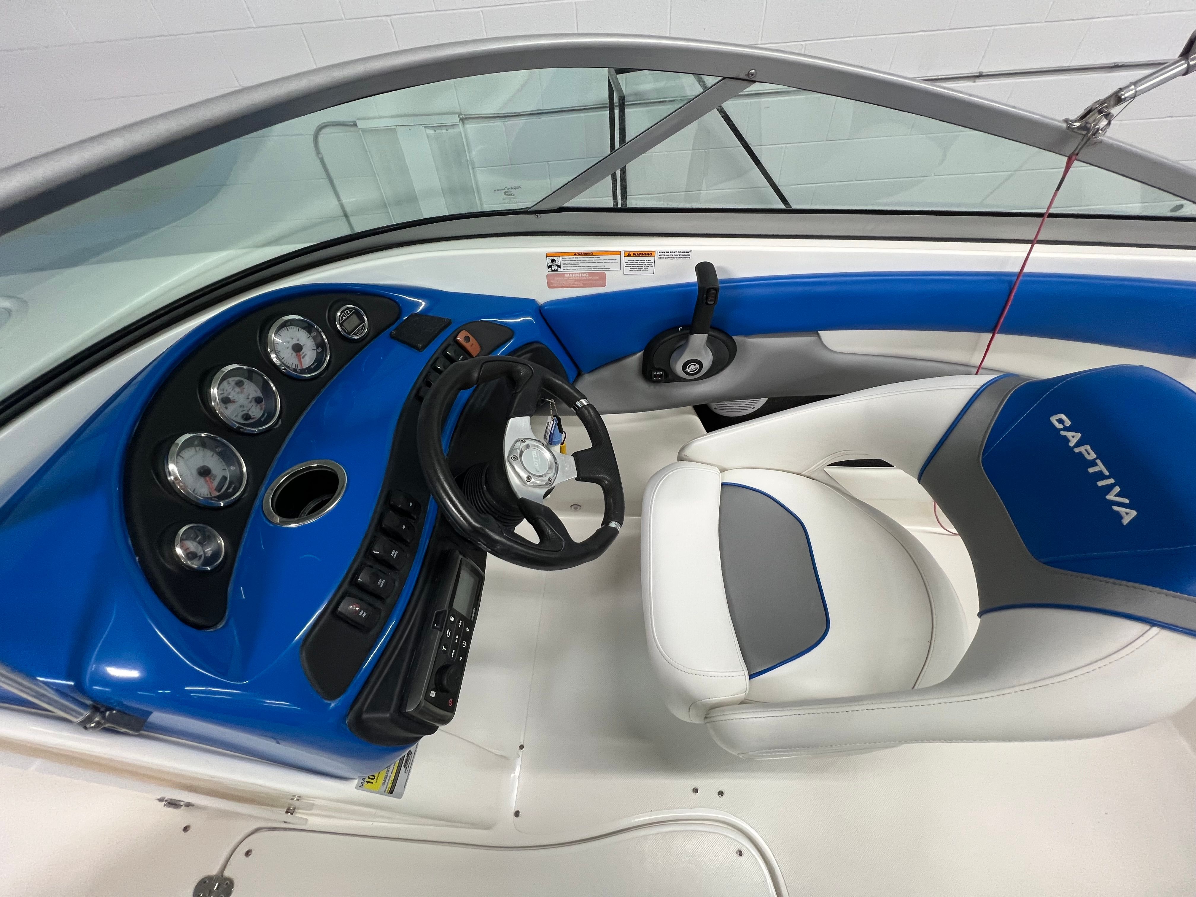 The 2012 Rinker 216 Captiva is a 21-foot bowrider that perfectly balances sporty design with practical features. As a used boat in excellent condition, it offers a fantastic opportunity to own a quality Rinker boat for sale at a great value. With its sleek lines, eye-catching blue canvas, and spacious layout, this bowrider is built for memorable days on the water. Its age of 13 years is a testament to Rinker’s reputation for durability and timeless appeal.