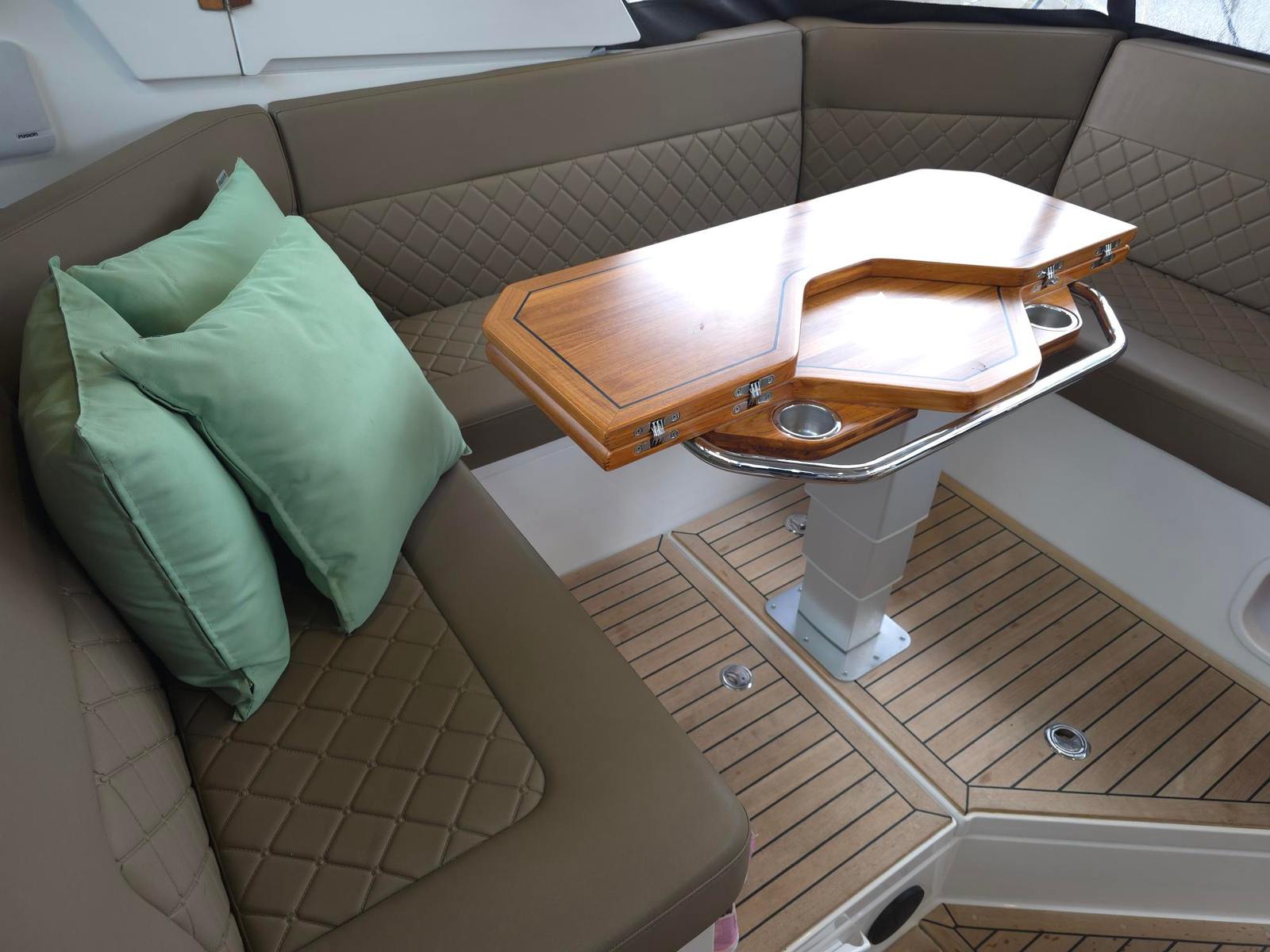 The cockpit can be transformed into an additional sleeping area if you are hosting additional guests. The wrap around canopy and the Hard-Top combine to provide a cabin-like atmosphere
