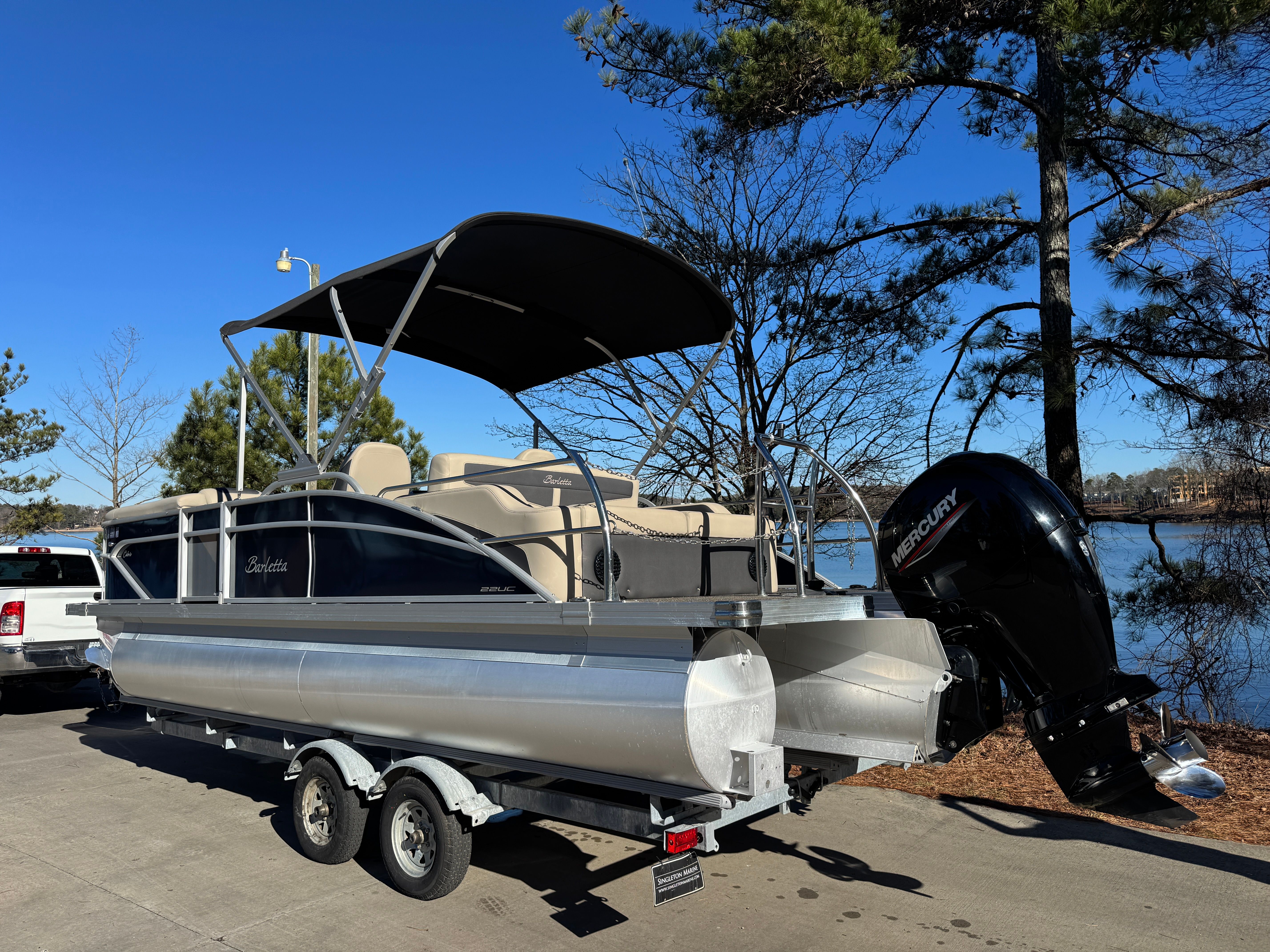 At the heart of this Barletta boat for sale is a powerful single engine with 150 horsepower, providing a smooth and responsive ride. With 249 engine hours, this pontoon boat has been enjoyed but remains in excellent running condition, offering plenty of reliable performance for future adventures. The 150 HP engine delivers the perfect balance of speed and efficiency, allowing you to glide effortlessly across lakes and rivers. Whether you are towing water toys, cruising at a leisurely pace, or heading to your favorite fishing spot, the Cabrio C22UC’s engine ensures you have the power and agility to make the most of every outing.