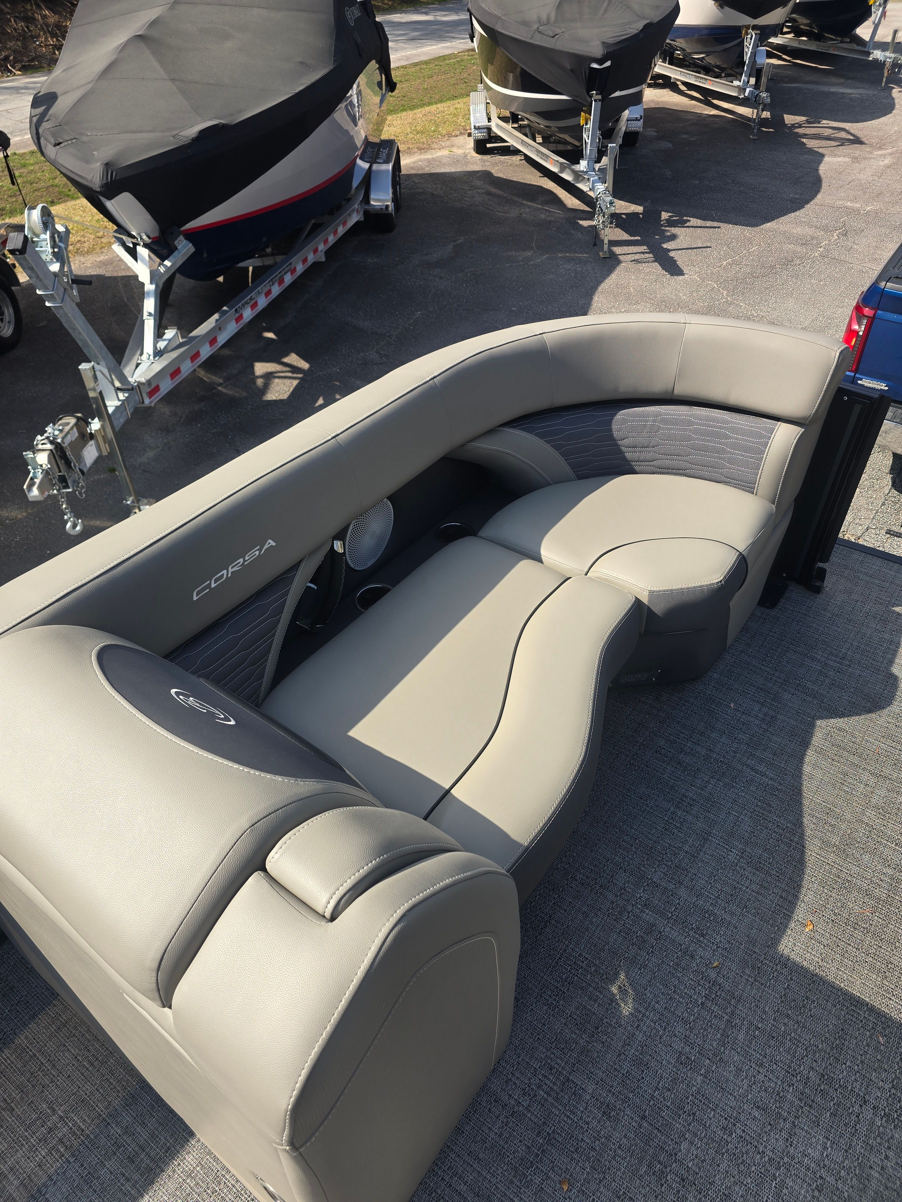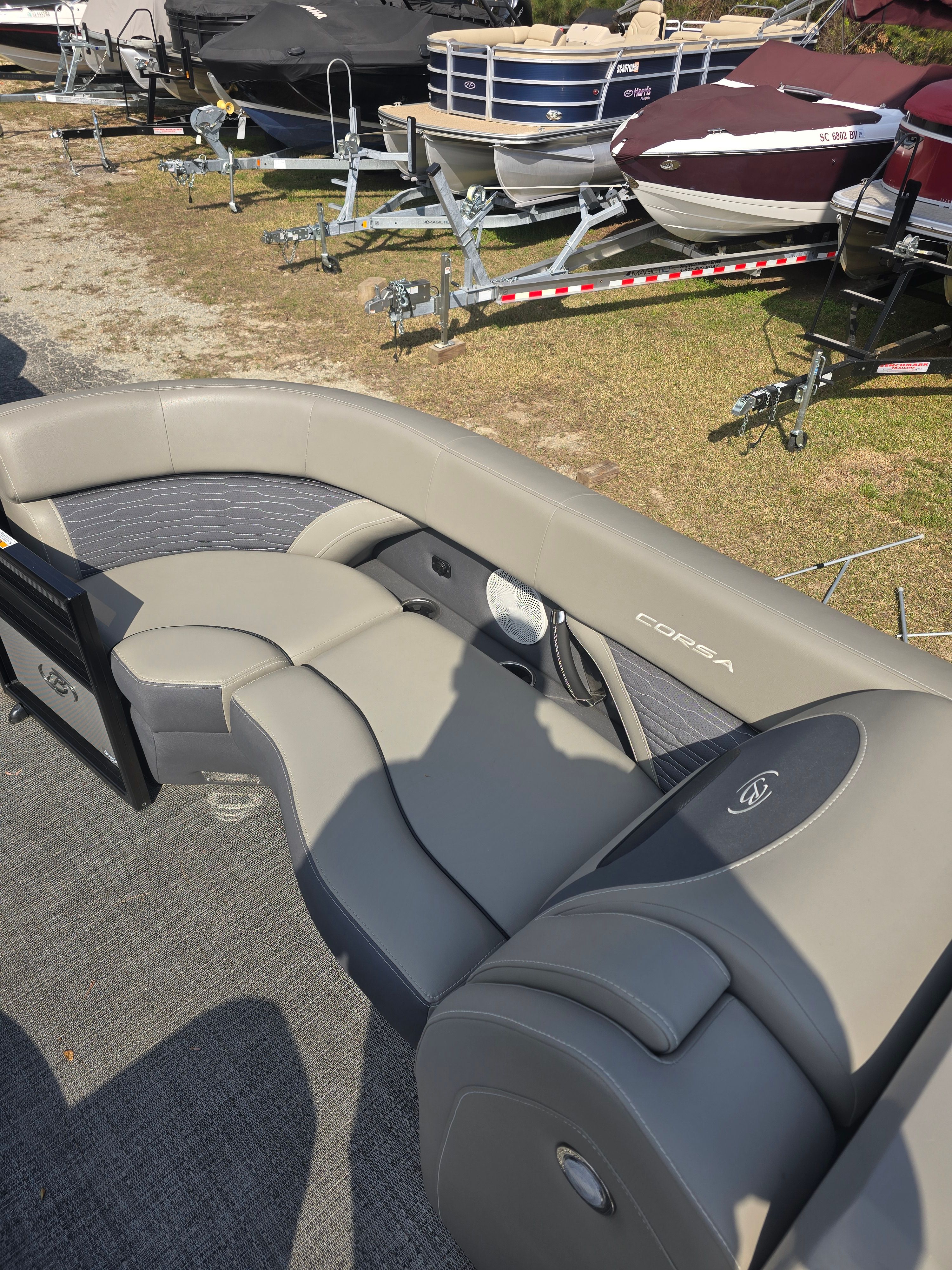 The Barletta Corsa 23UC is as practical as it is stylish. Its spacious design offers ample storage for all your gear, making it easy to bring along everything you need for a day of fun. The intuitive layout ensures that docking and maneuvering are straightforward, even in tight spaces. The efficient engine provides excellent fuel economy, allowing you to spend more time on the water and less time at the pump.This pontoon boat is perfect for a variety of activities, from leisurely cruises and family picnics to water sports and fishing trips. The versatile design adapts to your lifestyle, making it a smart investment for anyone looking to maximize their time on the water. With its blend of comfort, performance, and practicality, the Barletta Corsa 23UC stands out as a top choice among pontoon boats for sale.