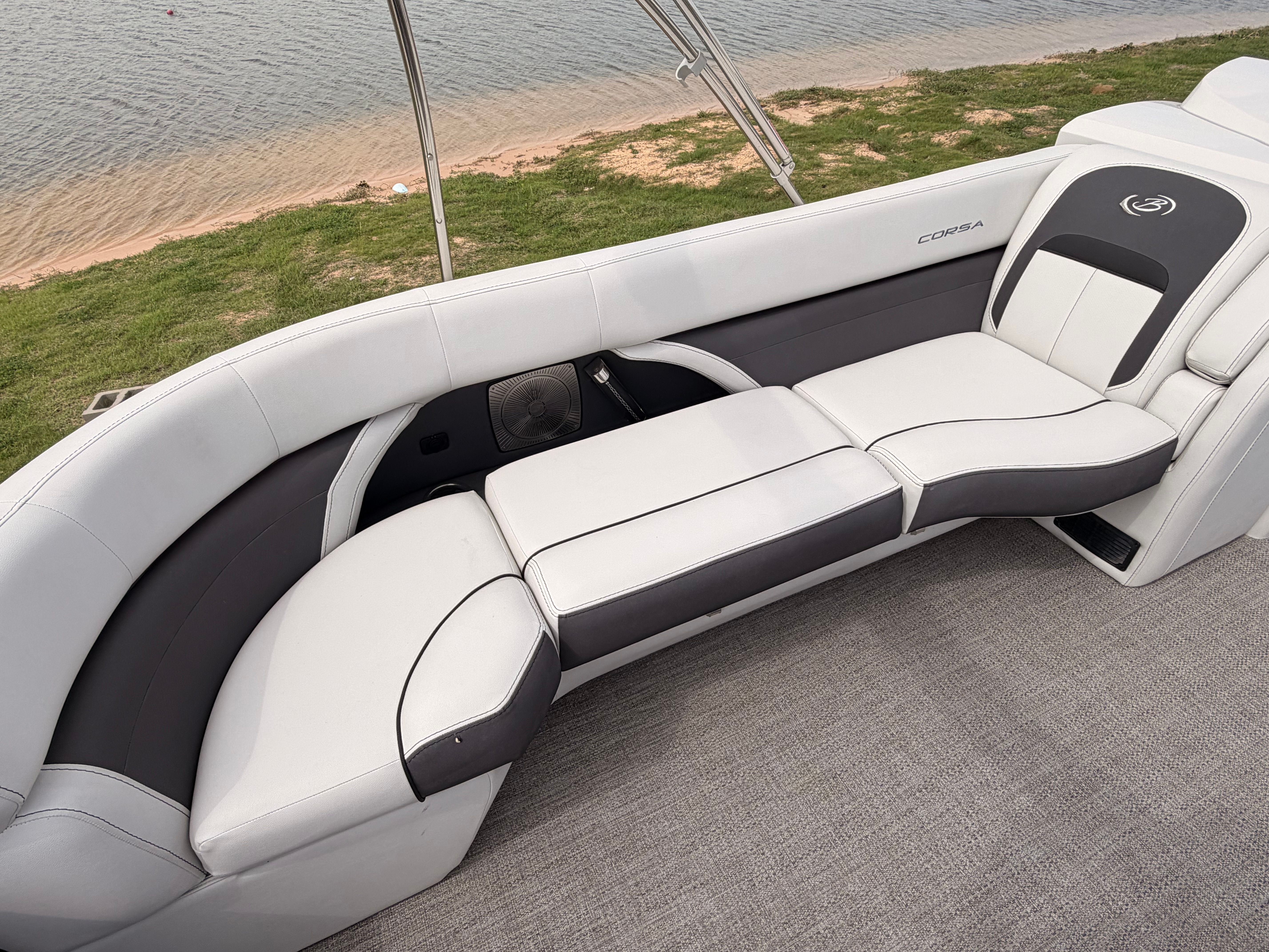 Powering this Barletta Corsa 25UCA is a robust 400-horsepower engine, ensuring thrilling performance and smooth handling. With only 12 engine hours, this pontoon boat is barely broken in, promising years of reliable adventures ahead. The single-engine setup provides a perfect balance of power and efficiency, making it easy to cruise, tow water toys, or reach your favorite destinations quickly. Whether you are gliding across calm lakes or navigating lively waterways, the responsive handling and impressive acceleration of this Barletta boat for sale will keep you and your guests smiling from start to finish.