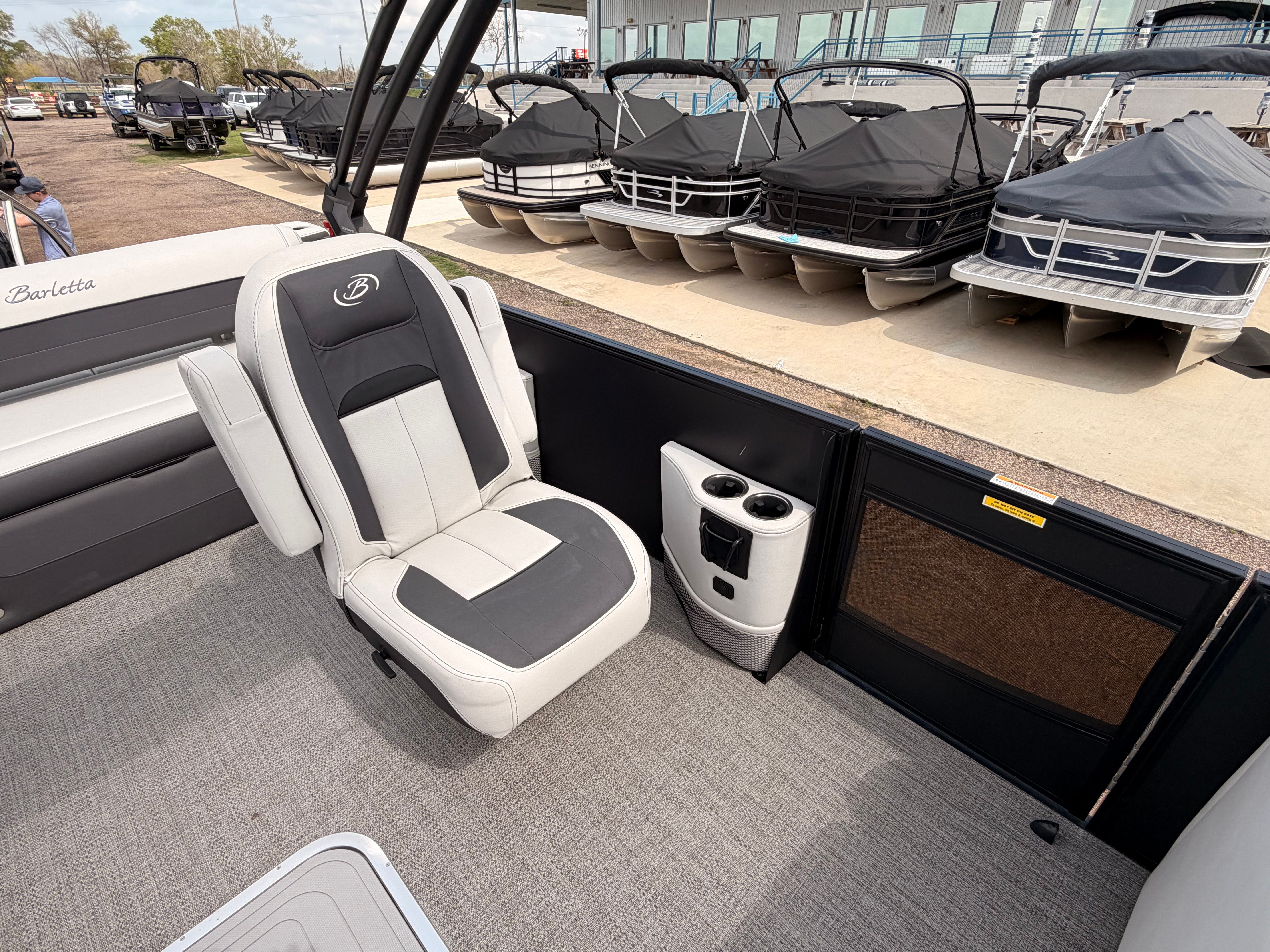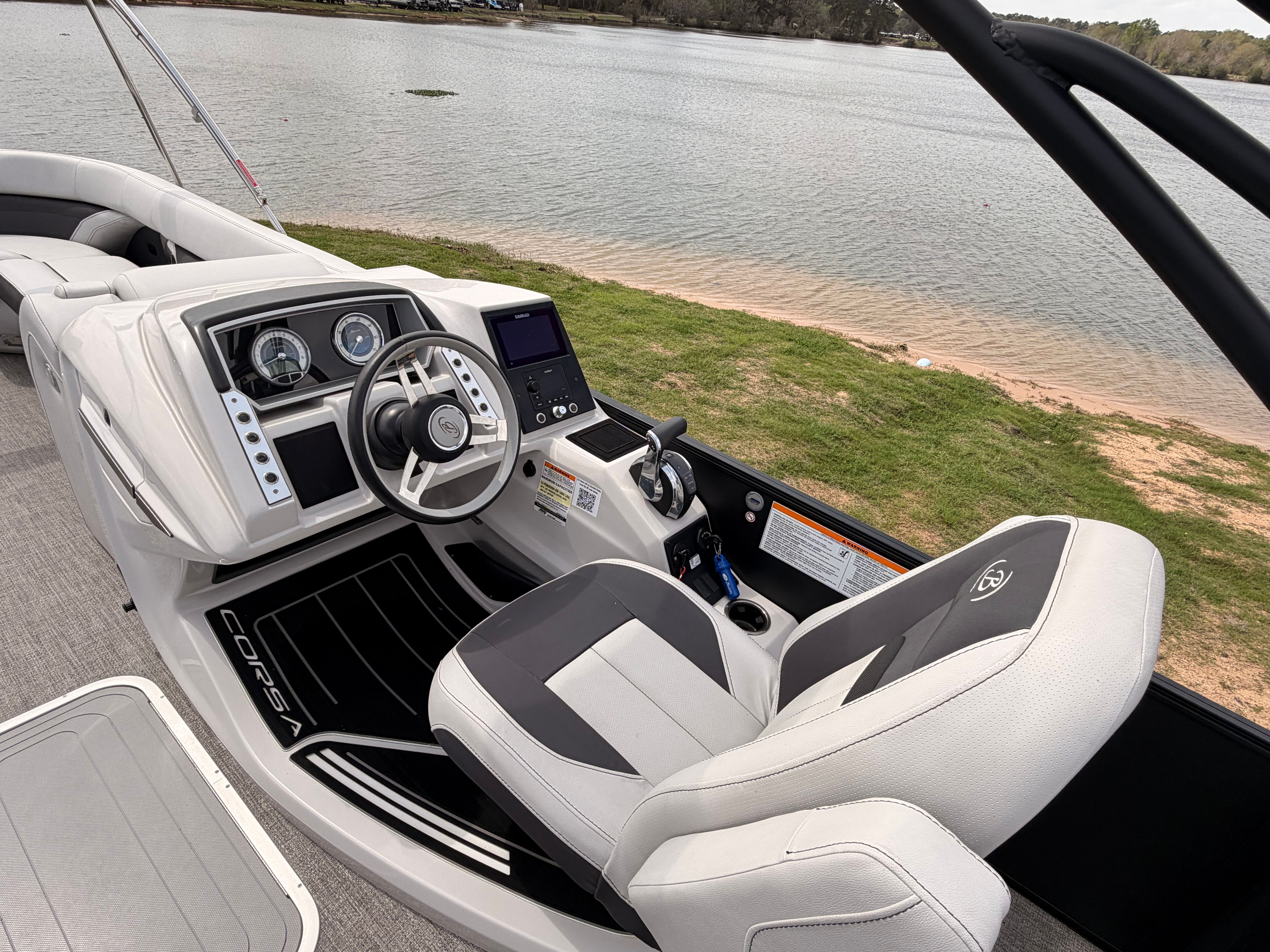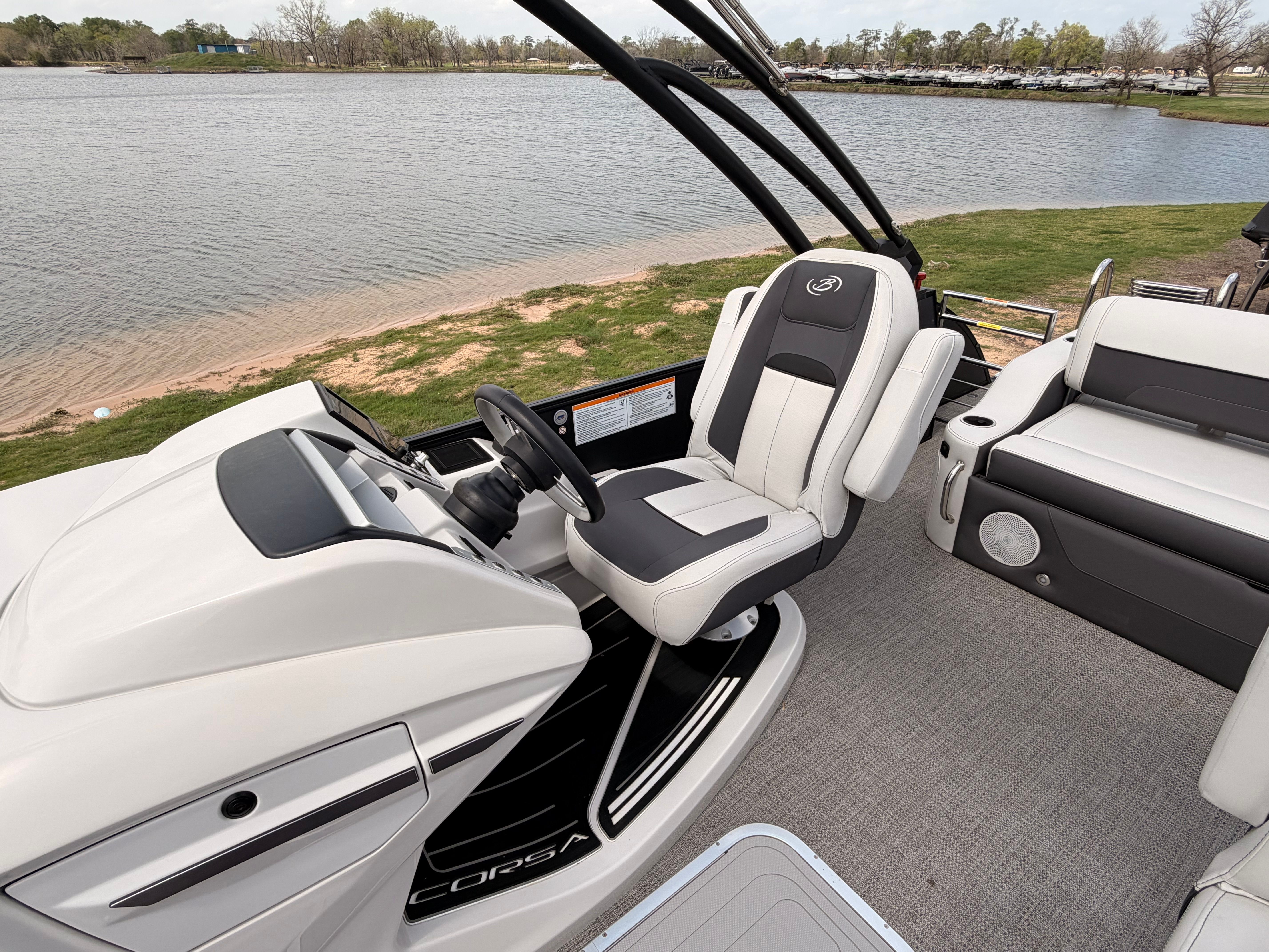 The Barletta Corsa 25UCA is loaded with features that enhance both functionality and enjoyment on the water. Its 27-foot length offers ample space for family and friends, ensuring everyone has room to relax and socialize. The thoughtfully designed layout maximizes comfort, with plush seating and open areas that invite conversation and fun. The pontoon’s construction reflects Barletta’s commitment to quality, utilizing premium materials and advanced techniques for durability and longevity.This pontoon boat for sale is equipped with a range of amenities that cater to both relaxation and adventure. The spacious deck is perfect for sunbathing, entertaining, or simply taking in the views. The intuitive helm station puts you in complete control, while the ergonomic seating ensures comfort during long days on the water. Every detail, from the stylish rails to the elegant flooring, is crafted to enhance your boating experience.