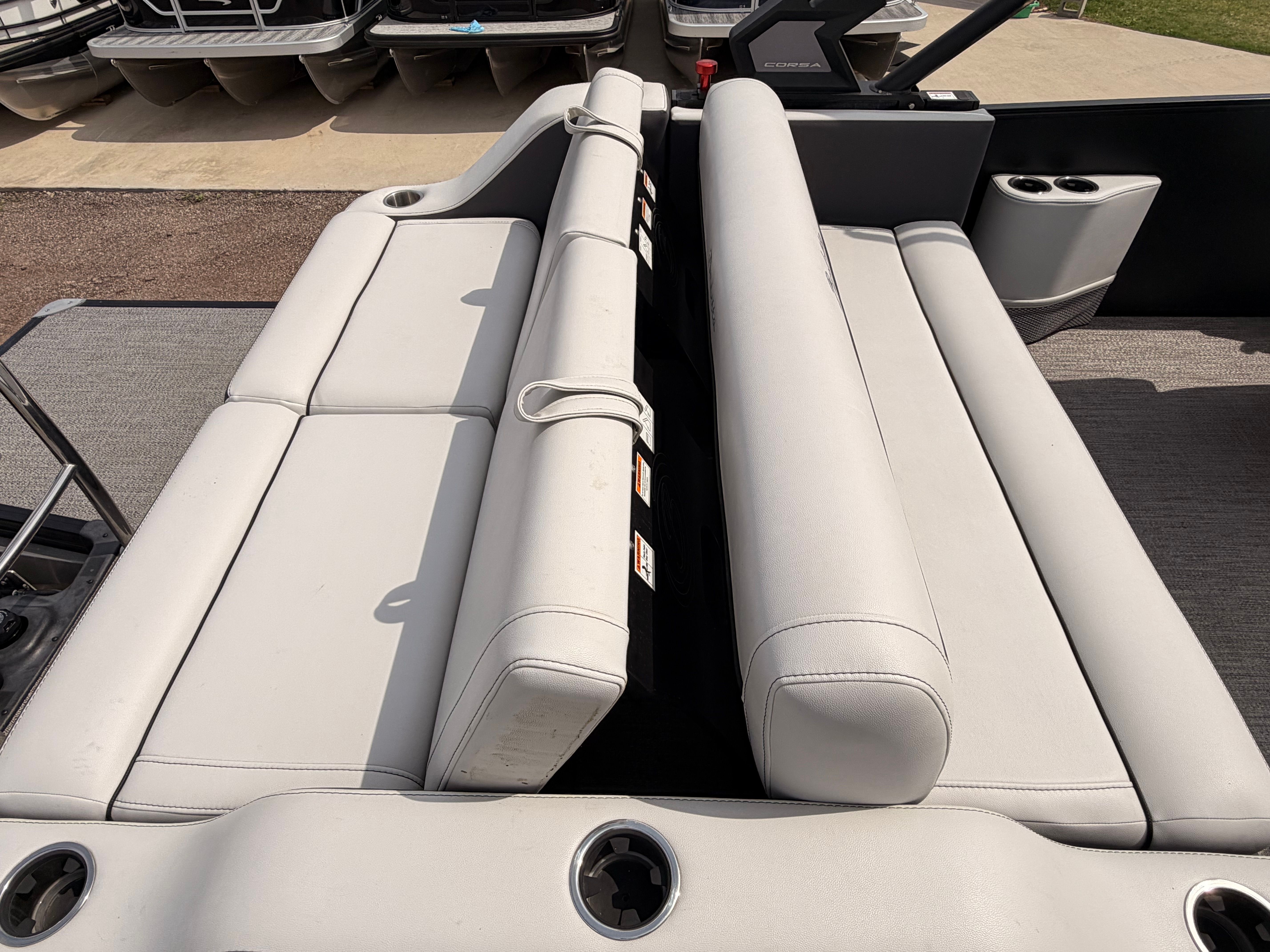 The 2022 Barletta Corsa 25UCA stands out as a premier pontoon boat for sale, combining luxury, performance, and versatility in one exceptional package. With its 400-horsepower engine, low engine hours, and spacious 27-foot layout, this used Barletta boat for sale offers an unbeatable blend of excitement and comfort. The thoughtfully designed features and practical benefits make it an ideal choice for families, friends, and boating enthusiasts alike.If you are ready to elevate your time on the water, the Barletta Corsa 25UCA is waiting to deliver unforgettable experiences. Don’t miss your chance to own this remarkable pontoon boat – contact the dealer today to learn more and schedule your personal viewing. Your next adventure begins with the Barletta Corsa 25UCA!