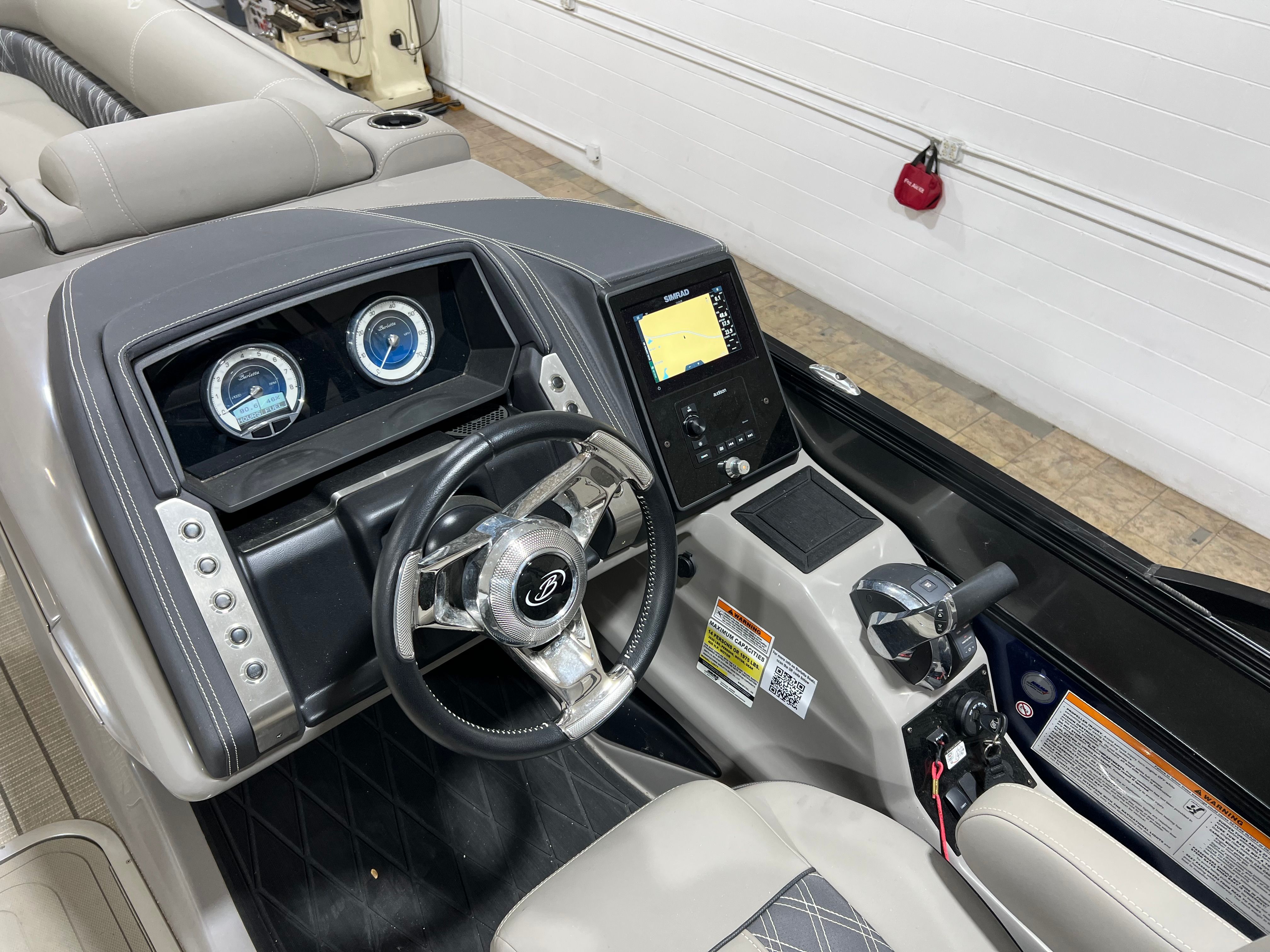 Power and reliability are at the heart of the Barletta L25QCSS. Equipped with a robust 300-horsepower engine, this pontoon delivers an exhilarating ride, whether you’re cruising across the lake or towing water toys for the kids. The single engine setup ensures smooth handling and responsive acceleration, making it easy to navigate through various water conditions. With only 81 engine hours, you can trust that this pontoon boat for sale has plenty of life left for countless adventures. The combination of power and efficiency makes the Barletta L25QCSS a top contender in the world of luxury pontoons.