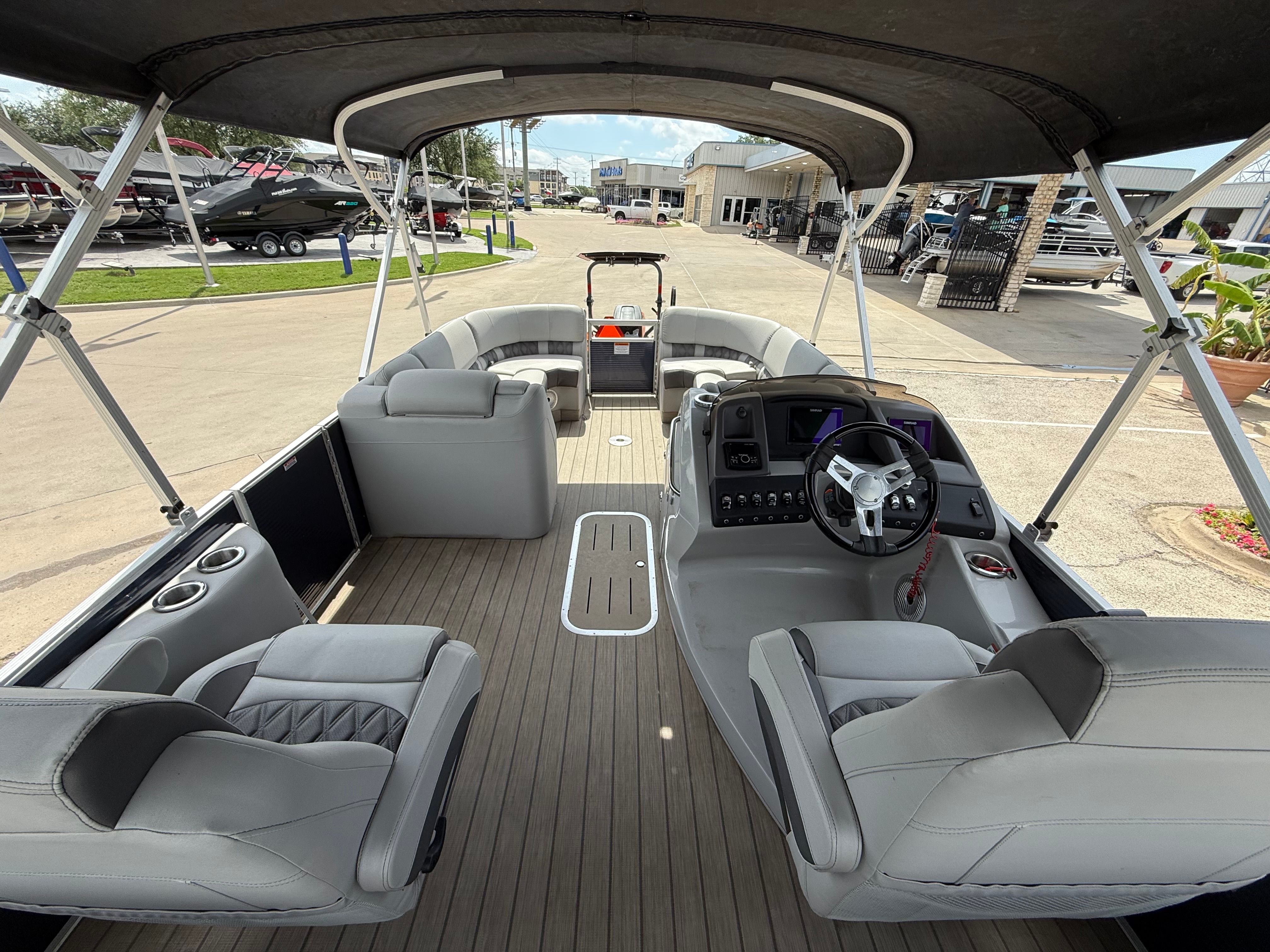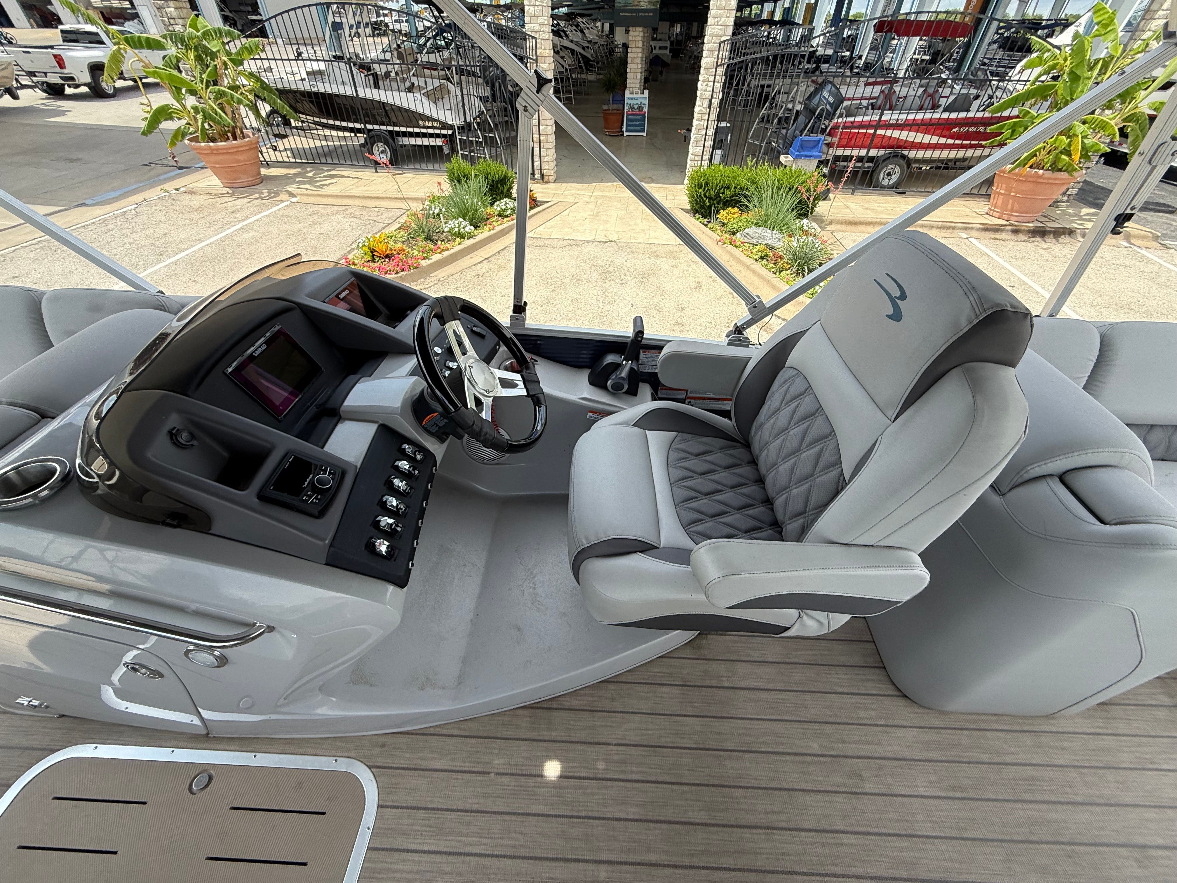 The Bennington 23 RFB is packed with features that enhance your time on the water. Its spacious deck layout provides plenty of room for guests to move around comfortably, while the plush seating invites you to relax and unwind. The thoughtful design ensures that every inch of space is utilized efficiently, offering both style and functionality. The pontoon’s durable construction and high-quality materials are evident throughout, reflecting Bennington’s reputation for building boats that stand the test of time.This model’s special features are designed to maximize your enjoyment and convenience. The 23-foot length allows for generous seating and open areas, making it easy to host gatherings or simply stretch out and soak up the sun. The helm is ergonomically designed for ease of use, giving the captain full control and confidence while navigating. Storage compartments are strategically placed to keep your gear organized and out of the way, ensuring a clutter-free environment.