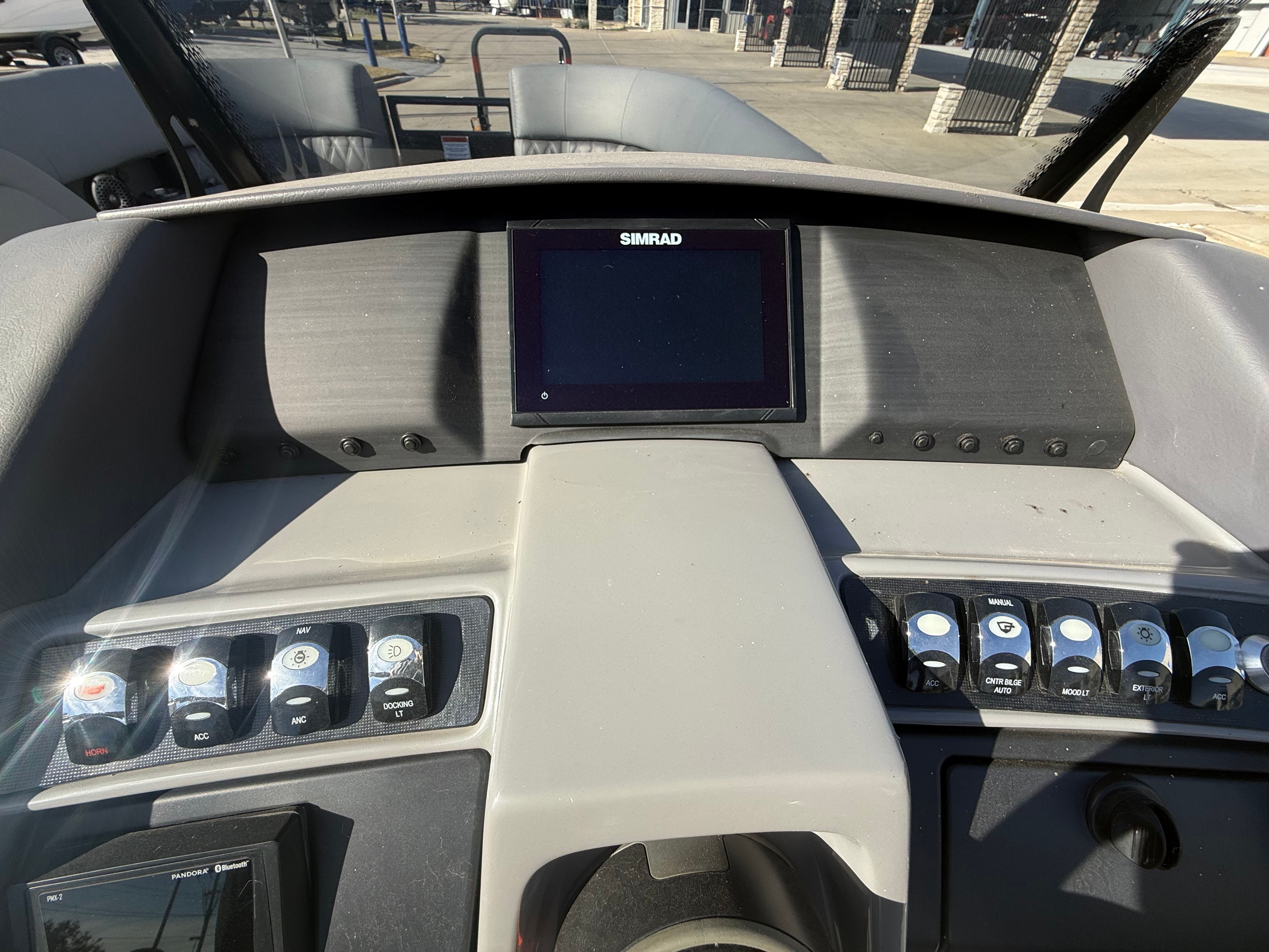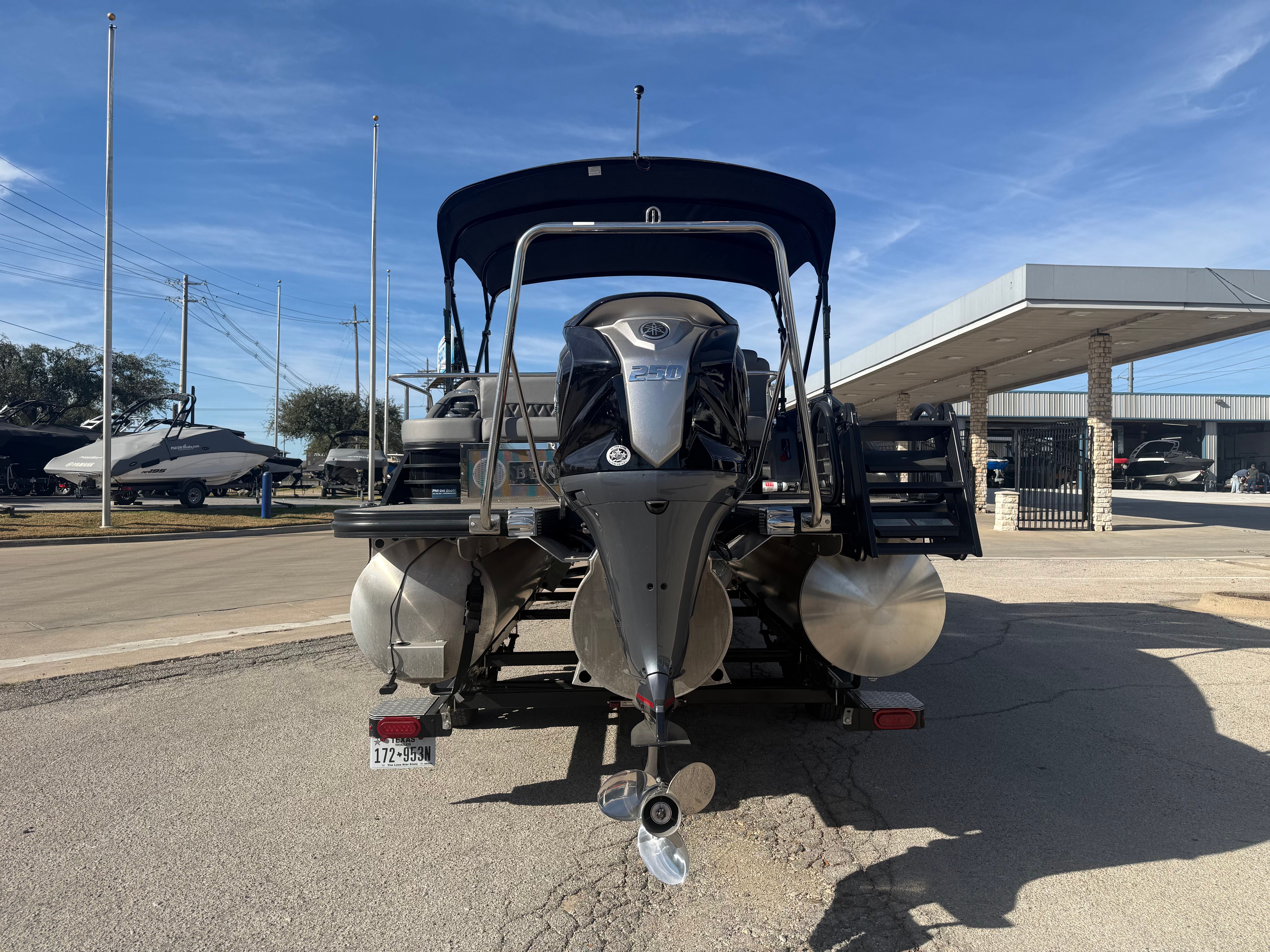 Clean 2024 Bennington 24 LXSB Swing Back powered by a Yamaha 250hp VMax SHO Outboard, SPS Performance tritoon package, Rockford Fosgate Audio Package, Blackout package, Yamaha mechanical Simrad, In floor storage, RGB side illumination, illuminated cup holders, docking lights, pillowtop diamond stitched seating, dual batteries, tandem axle trailer. This boat will be fully serviced and lake ready to go!