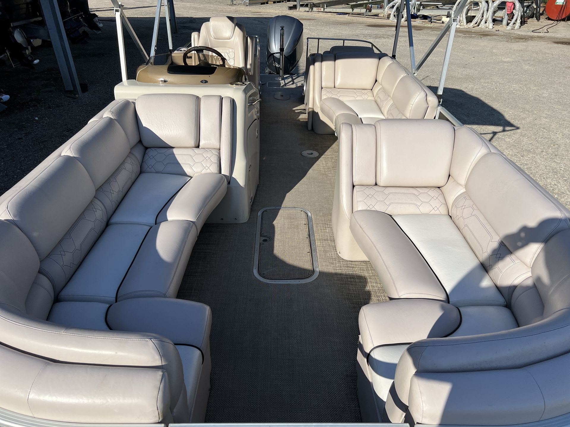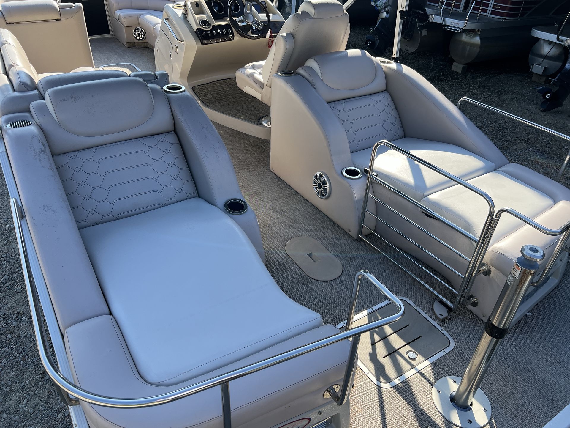 The 2013 Bennington 2575 QCW is designed with comfort and convenience in mind. Its spacious deck layout allows for easy movement and plenty of seating options, making it ideal for social gatherings and family fun. The high-quality construction and attention to detail are evident throughout, from the durable flooring to the stylish upholstery. The pontoon’s generous length provides ample storage for all your boating essentials, ensuring you have everything you need for a day on the water. With its thoughtful design and premium materials, this used pontoon boat offers a luxurious experience at an attractive value.