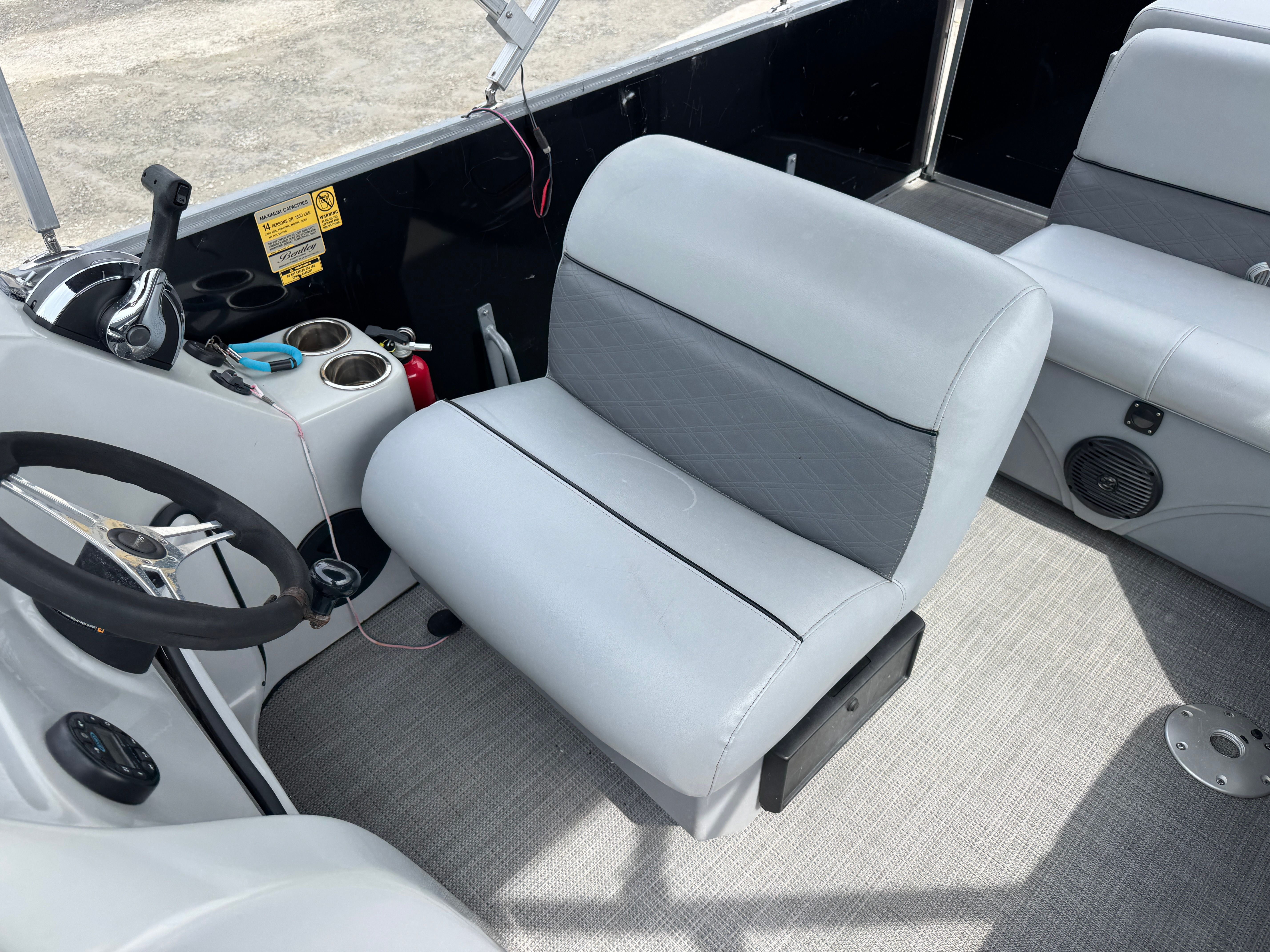 Powered by a single engine with 60 horsepower and 250 engine hours, the Bentley 200 Cruise delivers a smooth and efficient ride. The engine’s reliable performance ensures you can cruise lakes, rivers, and bays with confidence, whether you’re heading out for a leisurely day on the water or exploring new destinations. The 60 HP engine provides ample power for relaxed cruising, making it easy to navigate and dock, while also offering enough thrust for light water sports and towing activities. With 250 engine hours, this pontoon boat has been well-loved but still has plenty of adventures ahead.