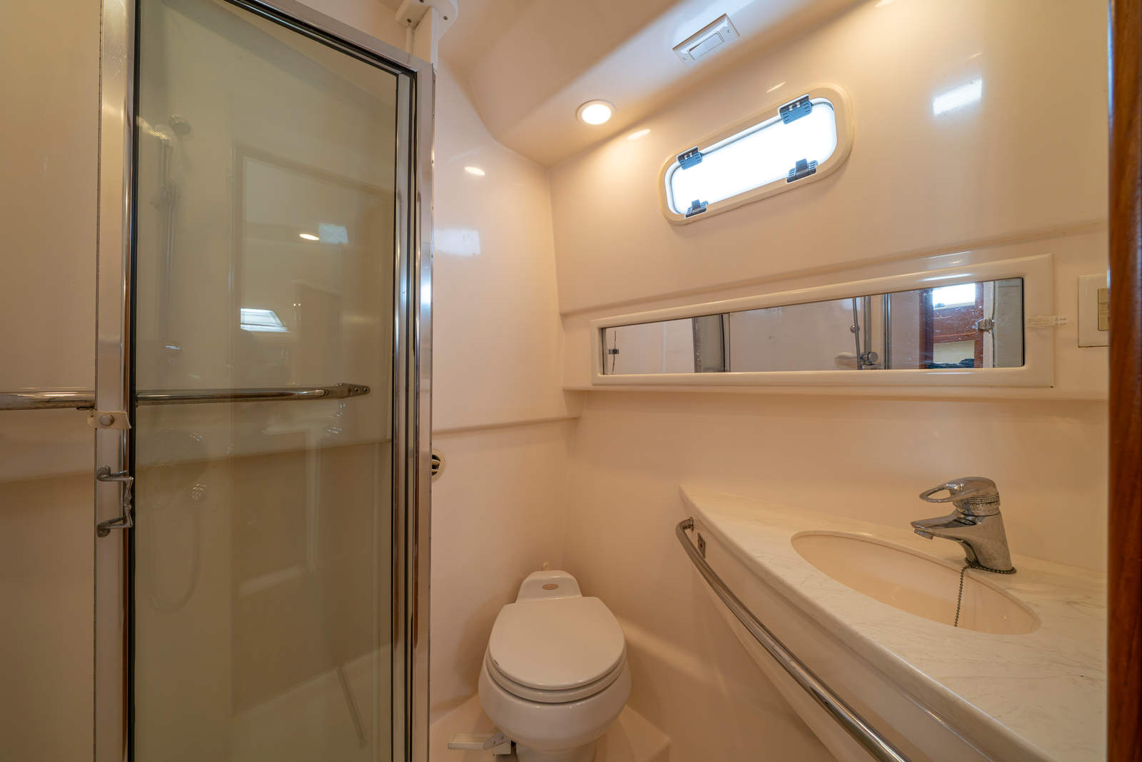 Sliding companionway door, opaque white acrylic panel