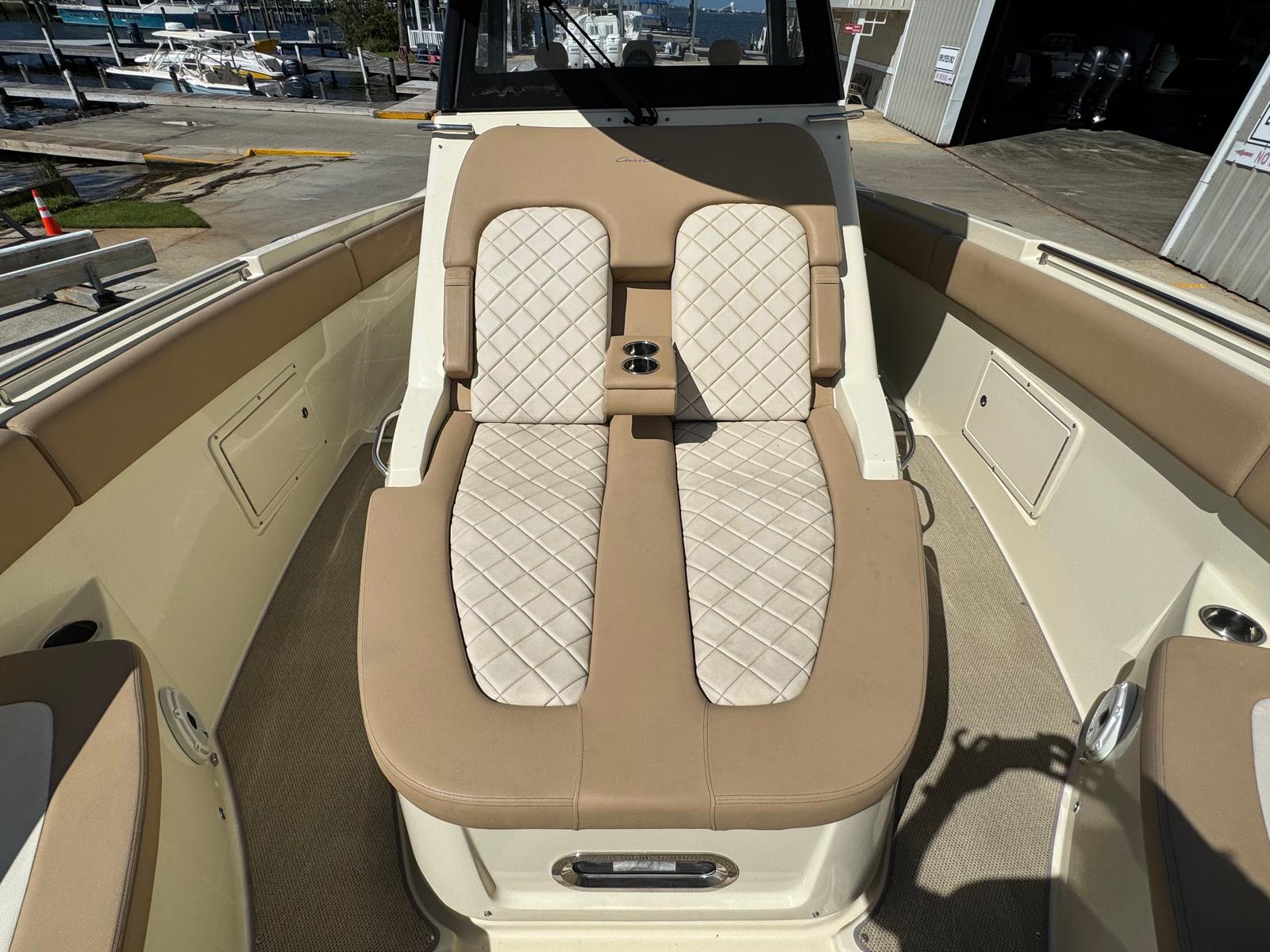 Power and performance are at the heart of the Chris-Craft Catalina 34. Equipped with twin engines that deliver a combined 850 horsepower, this center console boat is built for speed, agility, and reliability. The engines have only 200 hours, ensuring they are in excellent working order and ready for many more adventures. The Catalina 34’s powerful propulsion system allows for smooth acceleration, responsive handling, and impressive top speeds, making it ideal for everything from leisurely cruises to thrilling offshore excursions. Whether you’re navigating choppy waters or gliding across calm bays, this Chris-Craft boat for sale offers a ride that is both exhilarating and comfortable.