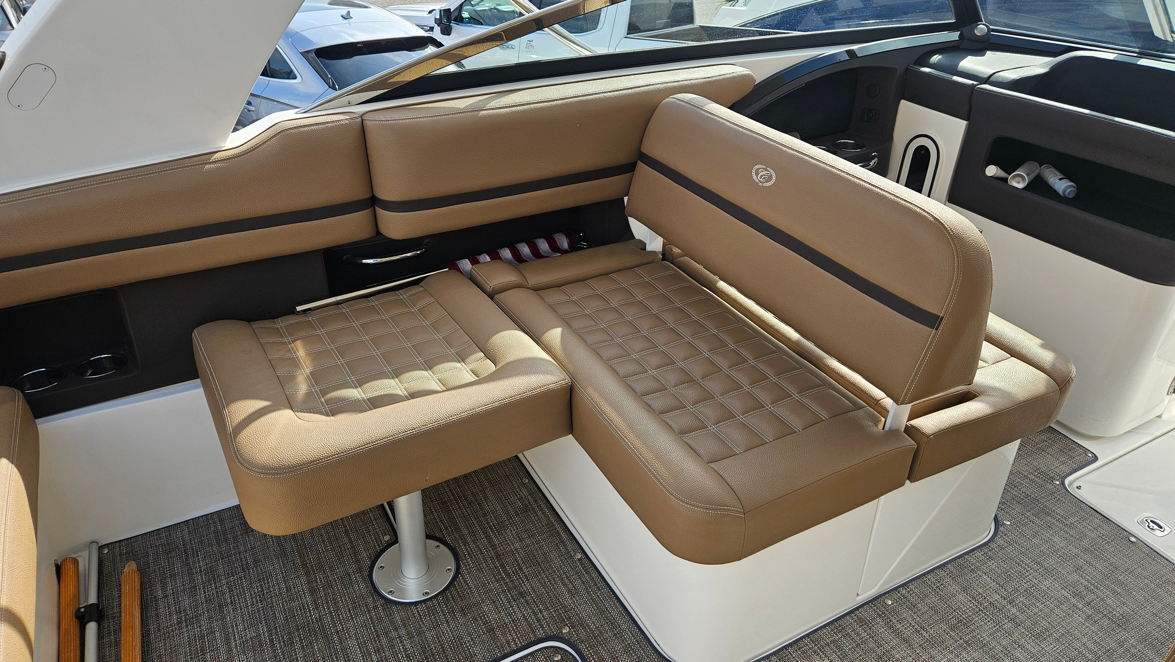 The Cobalt 30 SC is designed with practicality in mind, making ownership easy and enjoyable. The windlass anchor system simplifies the process of securing your boat, saving you time and effort. The aluminum triple axle trailer offers reliable transport, so you can take your boat to new destinations or store it safely when not in use. The twin Yamaha F300 engines provide not only impressive power but also efficient operation, helping you maximize your time on the water while minimizing fuel consumption. The snap-in carpet is easy to clean and maintain, ensuring your boat stays looking its best. With thoughtful features like these, the Cobalt 30 SC is a Bowrider boat for sale that delivers both convenience and performance.