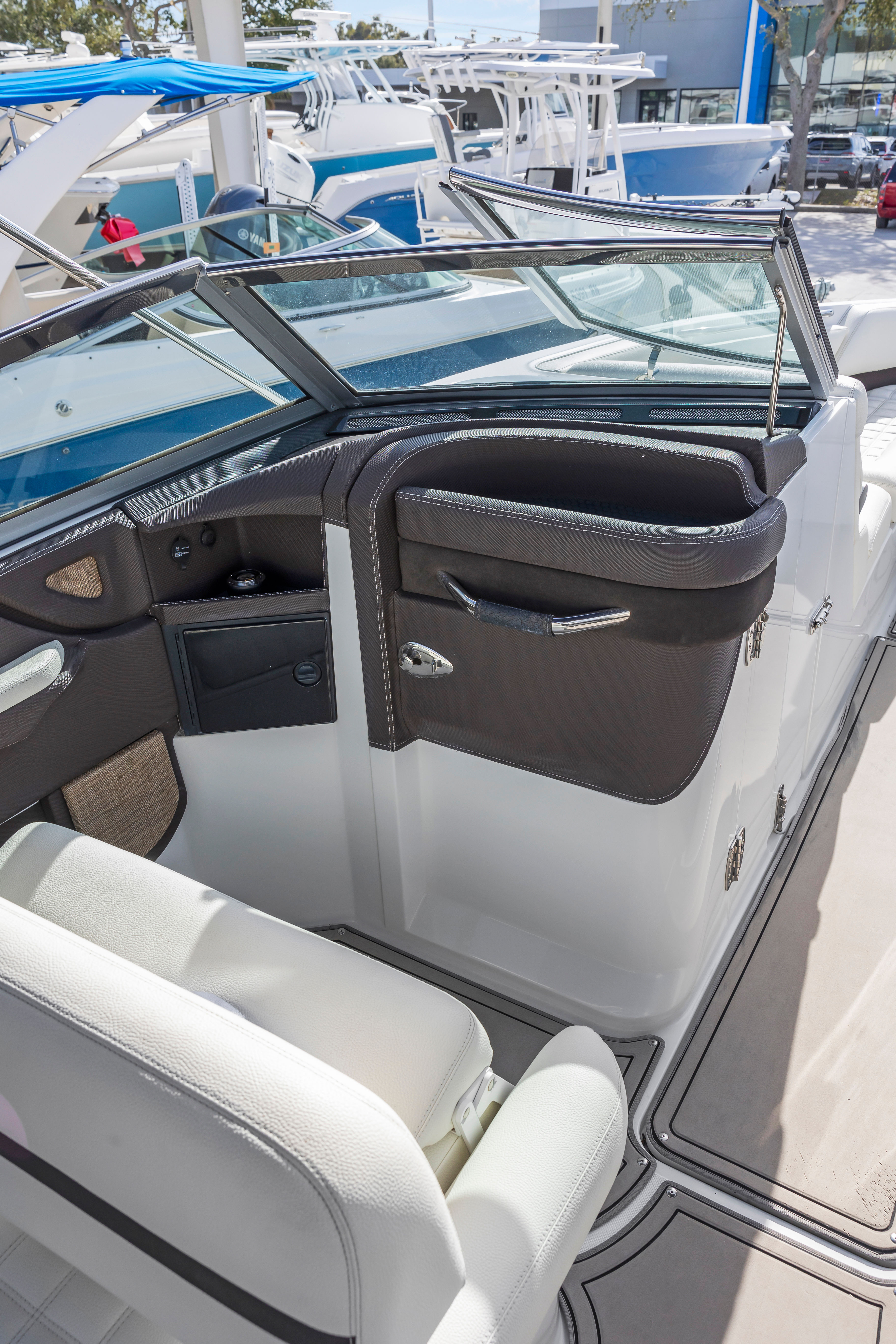 At the heart of the 2018 Cobalt R7 is a powerful single engine delivering an impressive 380 horsepower. This robust engine ensures exhilarating acceleration, smooth cruising, and responsive handling, making every outing a pleasure. With just 1 engine hour, you can enjoy the peace of mind that comes with a lightly used boat, offering near-new performance at a more accessible price point. Whether you are gliding across calm lakes or tackling choppier waters, the R7’s performance capabilities are sure to impress. The combination of power and precision makes this Bowrider boat for sale a joy to captain, providing both speed and stability for a wide range of activities.
