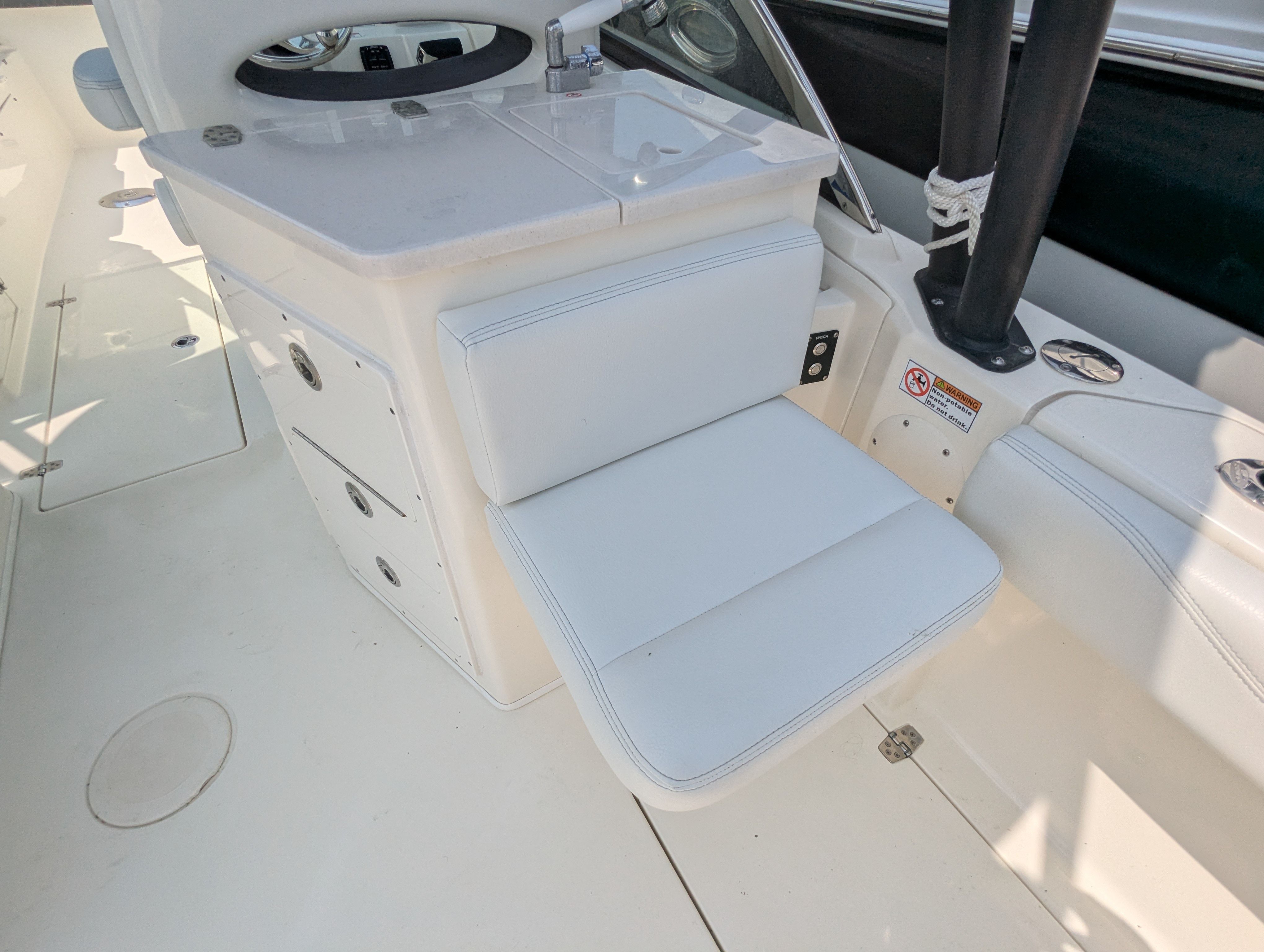 Powering the 2024 Cobia 240 DC is a robust single engine with 300 horsepower, delivering impressive acceleration and top-end speed. With only 132 engine hours, this boat’s powerplant is barely broken in, promising many seasons of reliable performance. The 300 horsepower engine ensures that you have the muscle needed for water sports, cruising, or reaching your favorite fishing spot quickly and efficiently. The responsive handling and smooth ride make this dual console boat a joy to operate, whether you are navigating open waters or maneuvering in tight marinas.