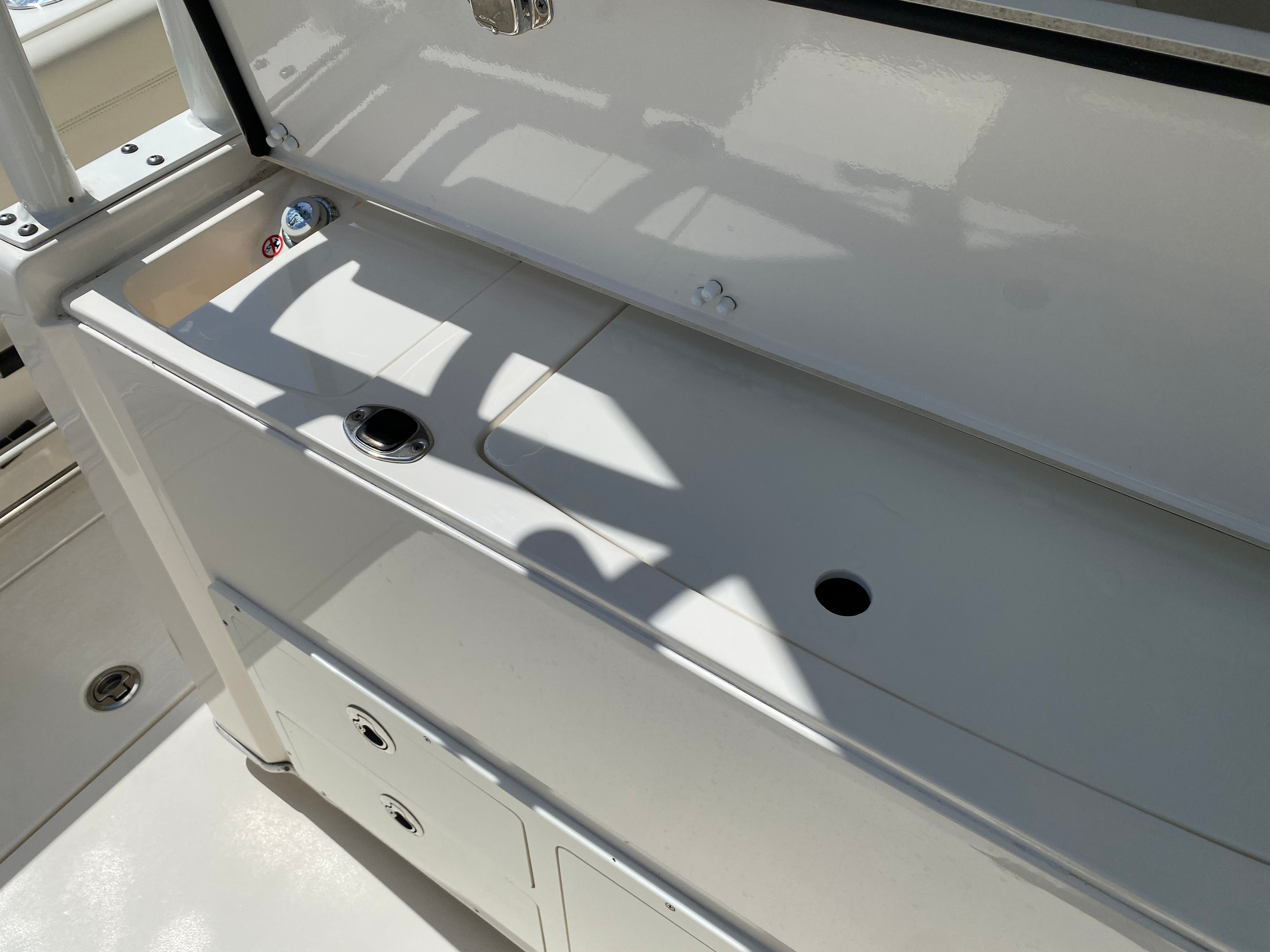 This Cobia boat for sale is as practical as it is exciting. The Center Console configuration allows for ample storage space for fishing gear, water toys, and personal belongings, keeping the deck clutter-free and organized. The boat’s design makes docking and maneuvering straightforward, even for those new to boating. The efficient twin-engine setup not only delivers impressive power but also offers the peace of mind that comes with redundancy and reliability. With only 150 engine hours, this used Cobia 301 CC is ready to provide years of dependable service. Whether you are planning a quick afternoon escape or a full day on the water, this boat’s thoughtful features make every trip easy and enjoyable.