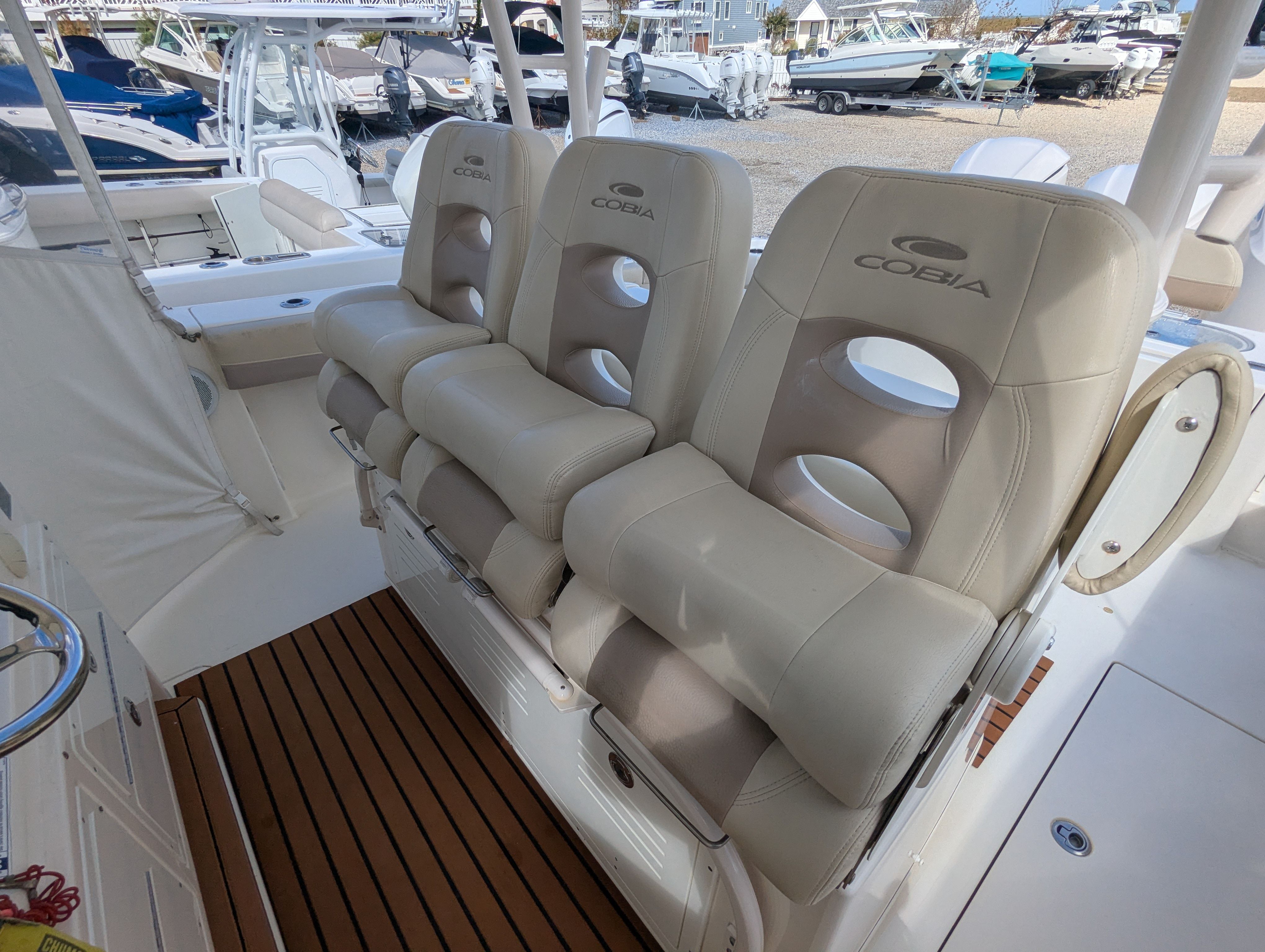 In summary, the 2018 Cobia 344 CC is a remarkable Center Console boat for sale that combines power, style, and versatility. With its triple-engine setup delivering 900 horsepower, spacious 33-foot layout, and thoughtful design, this Cobia boat for sale is perfect for anyone seeking adventure, comfort, and reliability on the water. Whether you’re planning fishing trips, family outings, or luxury getaways, the Cobia 344 CC stands ready to exceed your expectations. Don’t miss the opportunity to own this exceptional vessel—contact the dealer today to learn more and start your next boating adventure.