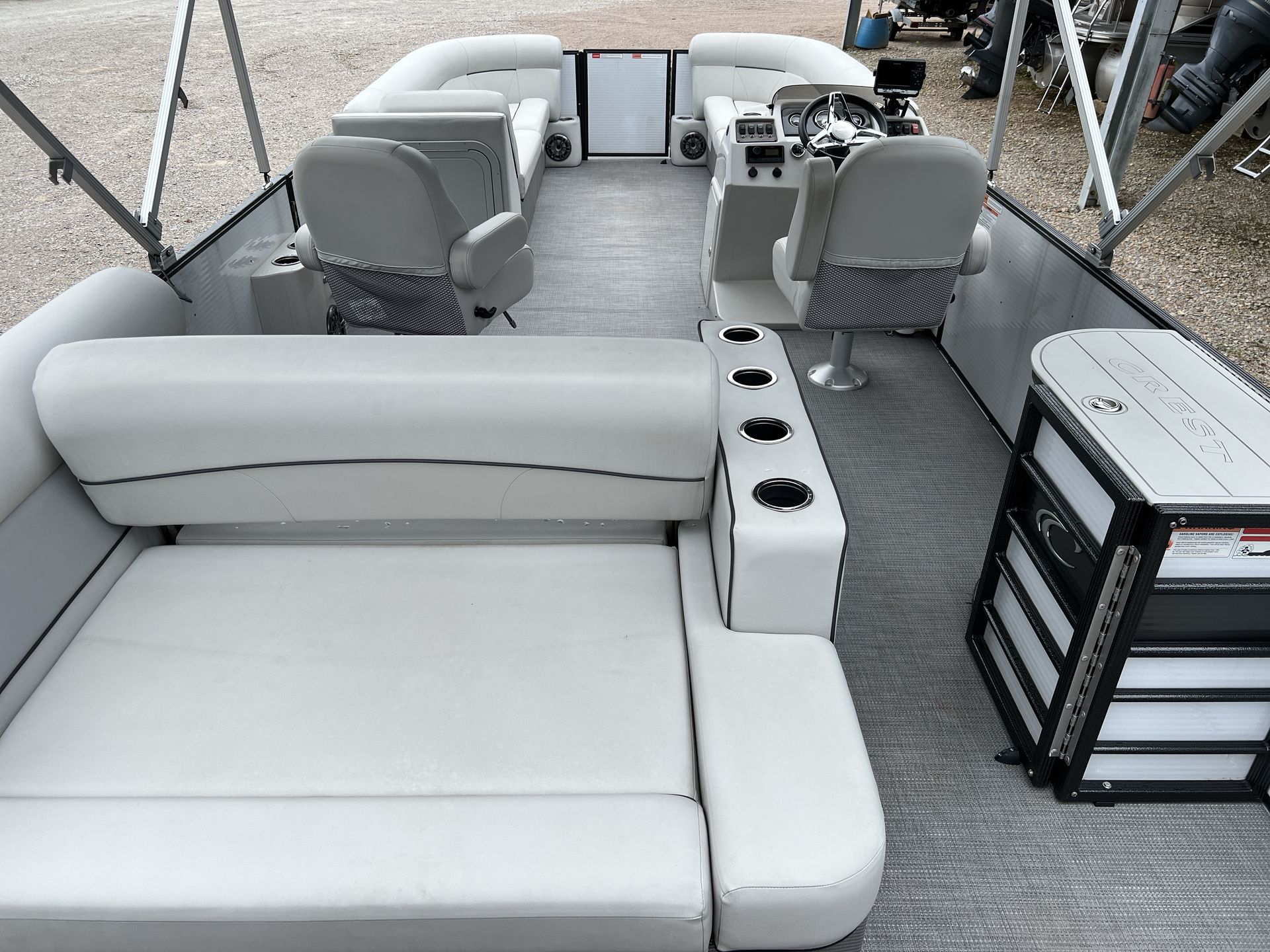 The Crest Classic 240 LX is packed with features that enhance both functionality and leisure. Its 24-foot length provides generous deck space, allowing for comfortable seating and plenty of room to move about. The pontoon’s layout is designed for socializing, with plush seating arrangements that invite relaxation and conversation. The sturdy construction and attention to detail are hallmarks of the Crest brand, ensuring durability and peace of mind on every outing.Special features of the Crest Classic 240 LX include a thoughtfully designed helm, intuitive controls, and ample storage compartments for all your gear. The pontoon’s layout makes it easy to host gatherings, enjoy meals on the water, or simply stretch out and soak up the sun. Every element of this Crest boat for sale is crafted to maximize comfort and convenience, making it a standout choice for boaters who value both style and substance.