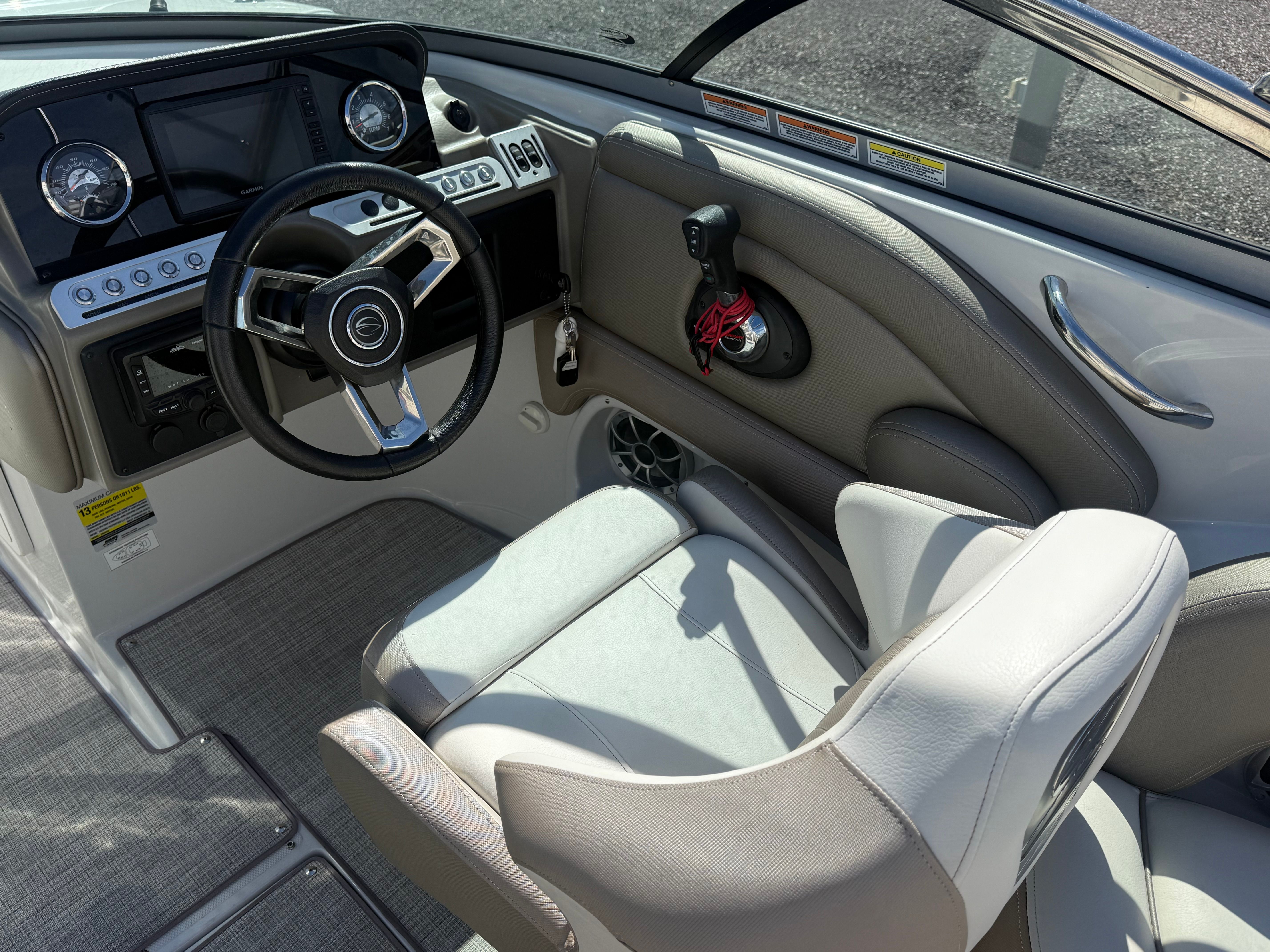 The 2022 Crownline 260 XSS is packed with features that enhance both its functionality and enjoyment. The spacious bowrider layout offers plenty of comfortable seating, allowing guests to relax and soak up the sun. The open design ensures easy movement throughout the boat, making it ideal for socializing and entertaining. The high-quality construction and attention to detail are evident in every aspect of the 260 XSS, from the stylish upholstery to the durable flooring.This Crownline boat for sale is equipped with a range of amenities designed to elevate your boating experience. The ergonomic helm provides excellent visibility and intuitive controls, ensuring that captains of all experience levels can navigate with confidence. The integrated swim platform makes it easy to access the water for swimming or watersports, while the ample storage compartments keep your gear organized and out of the way. Every feature is thoughtfully designed to maximize comfort, convenience, and enjoyment on the water.