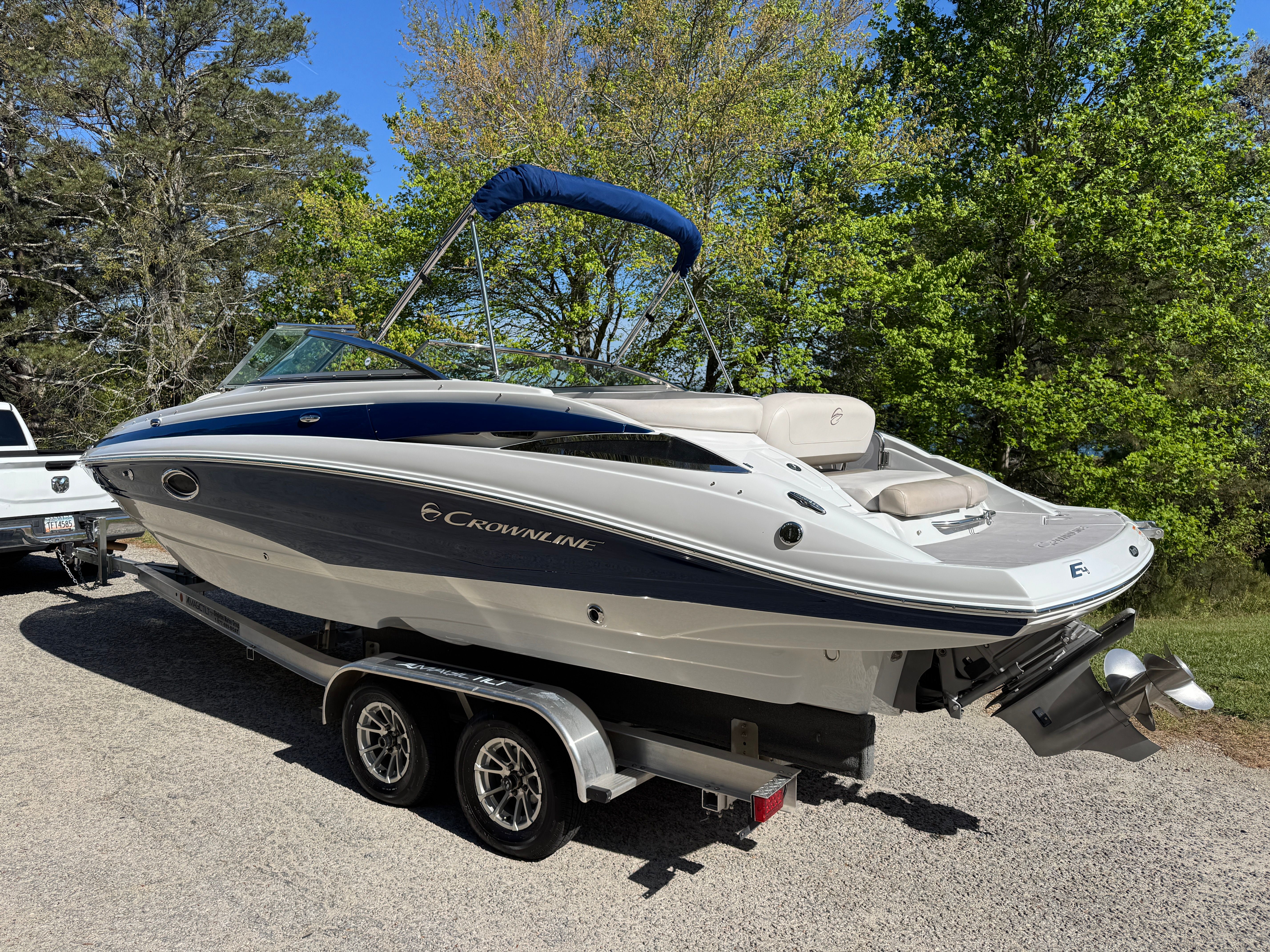 The 2013 Crownline E4 is a 25.25-foot bowrider that stands out for its sleek design and versatile functionality. This model is renowned for its spacious cockpit and bow seating, making it an ideal choice for those who enjoy entertaining guests or relaxing under the sun. As a used bowrider boat for sale, the E4 offers a unique opportunity to own a premium vessel at a fraction of the cost of a new model, without compromising on quality or performance.With its modern lines and attention to detail, the Crownline E4 is a testament to the brand’s commitment to craftsmanship and innovation. The 25.25-foot length provides ample space for passengers, while the thoughtful layout ensures everyone on board can enjoy the ride in comfort and style.