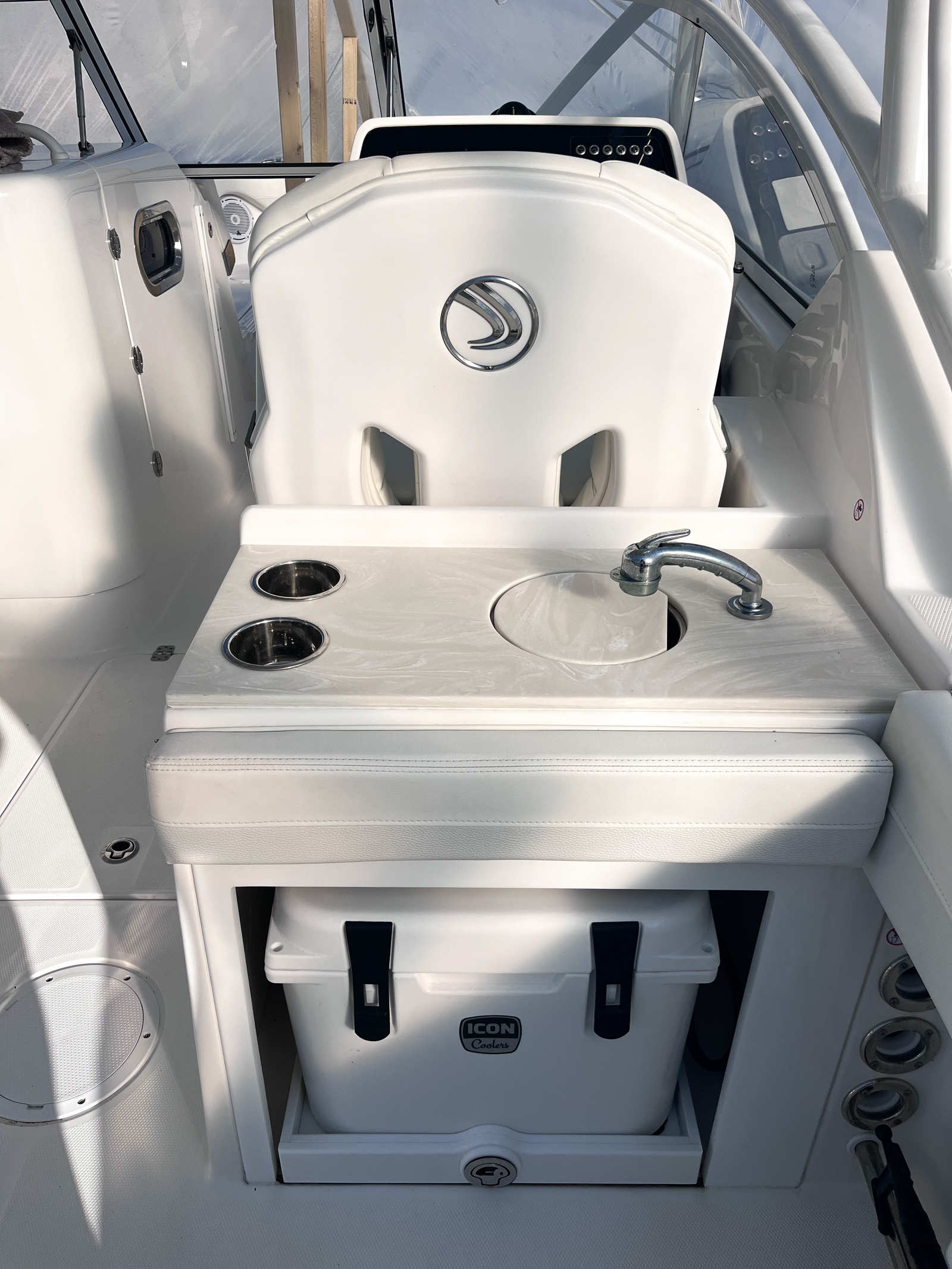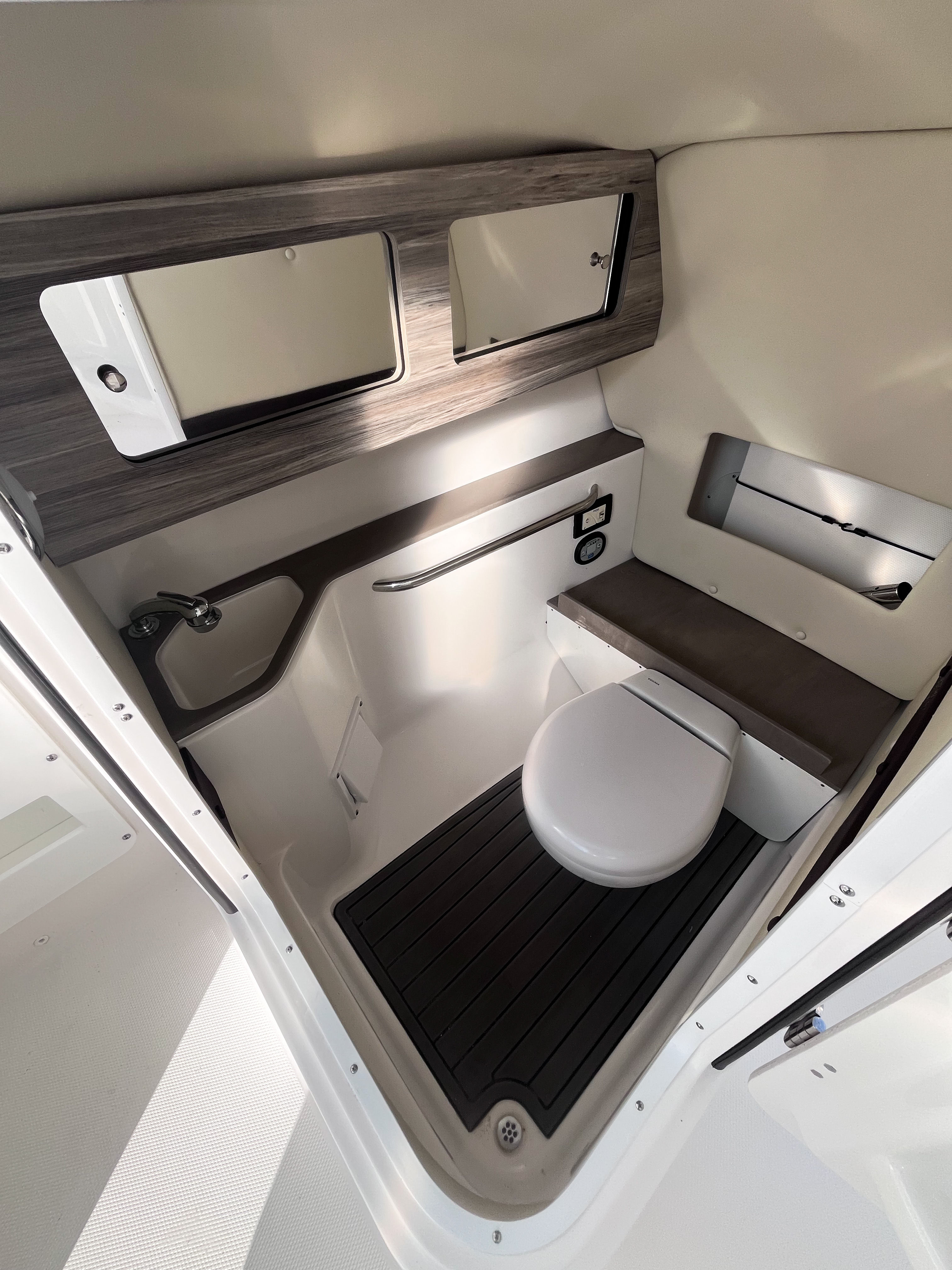 At the heart of the Edgewater 248 CX is a powerful single engine delivering an impressive 300 horsepower. This setup provides the perfect balance of speed, agility, and fuel efficiency, making it easy to reach your favorite destinations quickly and smoothly. The responsive handling and reliable performance of this Center Console boat make it a joy to operate, whether you are navigating tight marinas or cruising open waters. The 300-horsepower engine ensures that you have the power needed for towing water toys, getting to prime fishing spots, or simply enjoying a spirited ride across the waves.