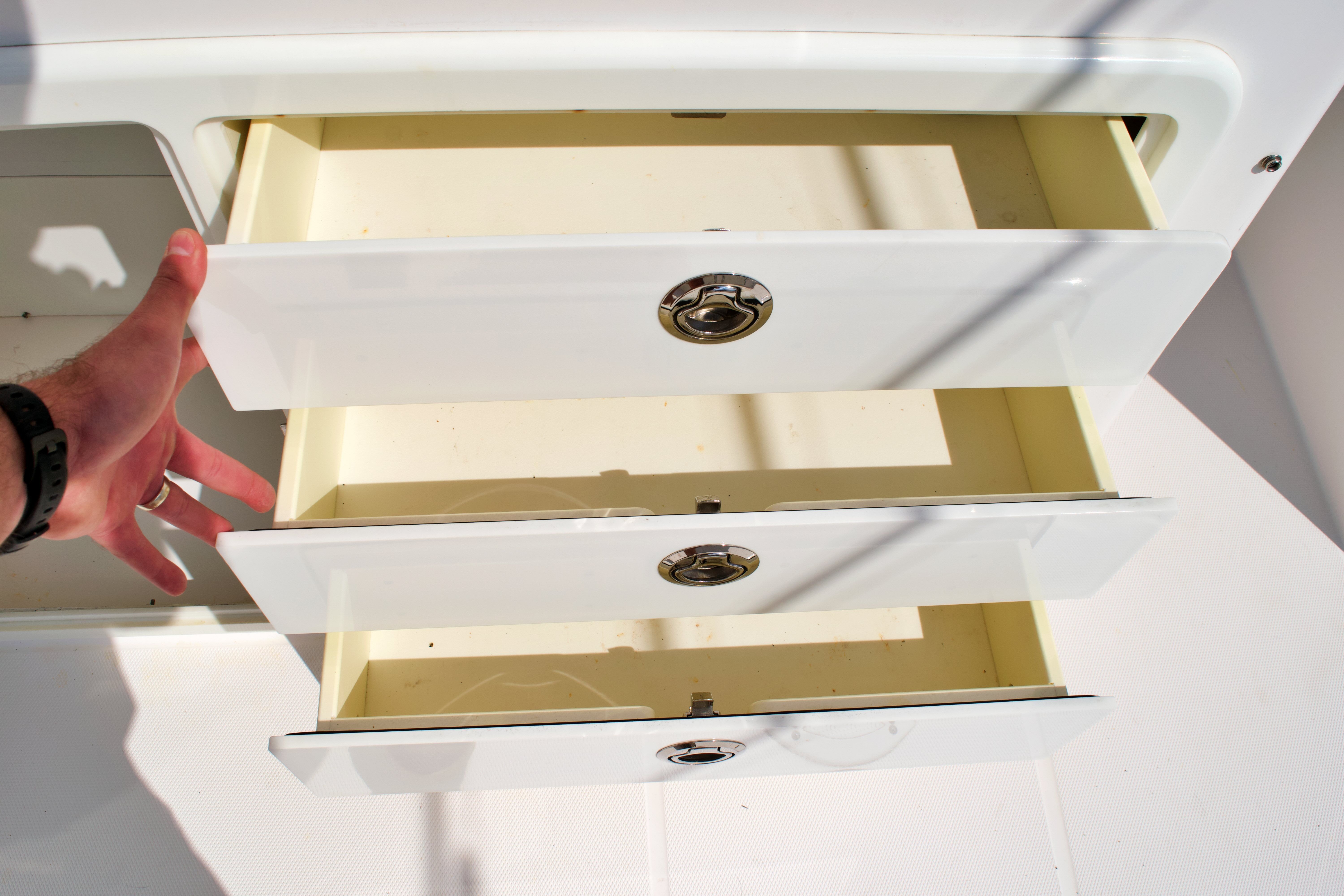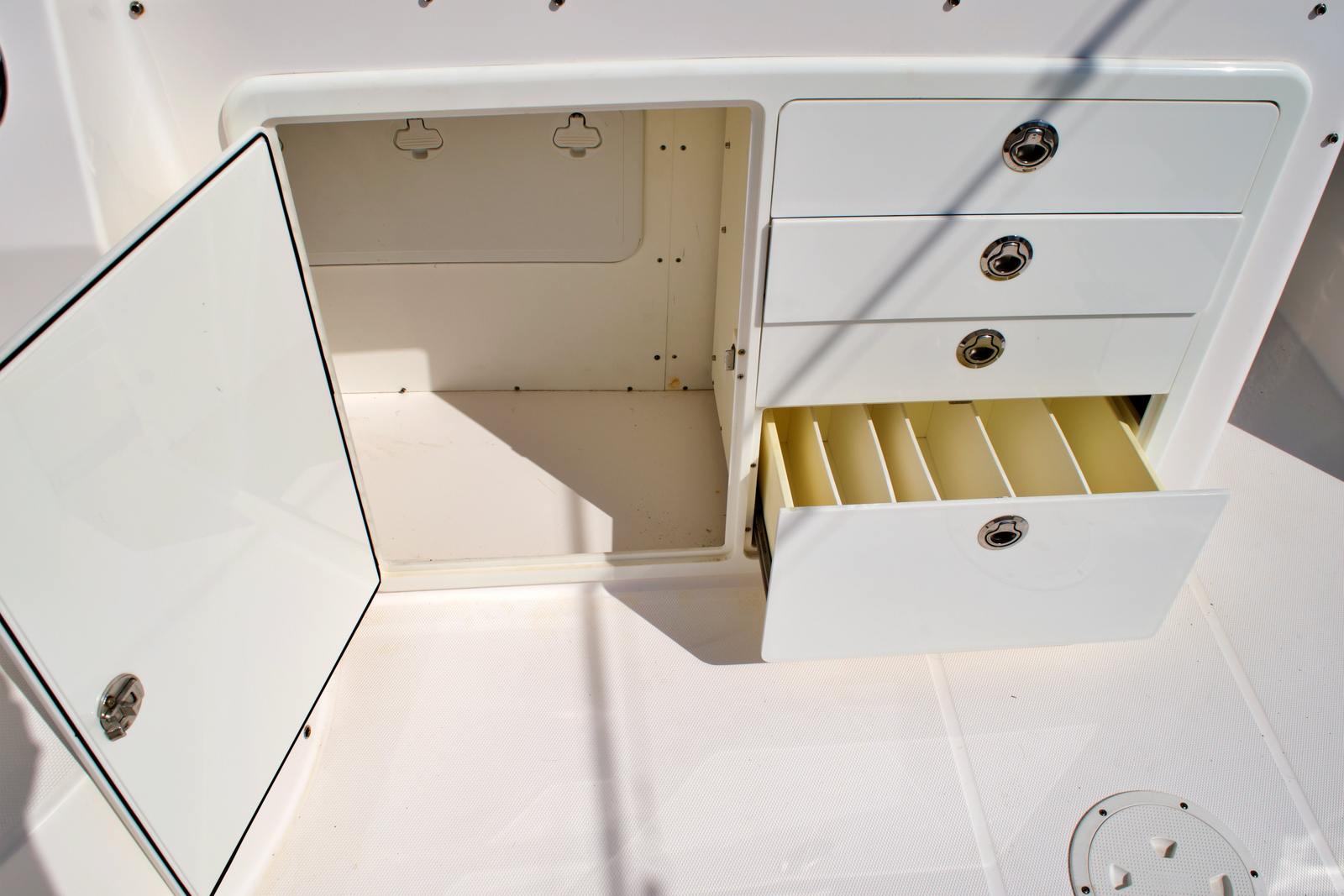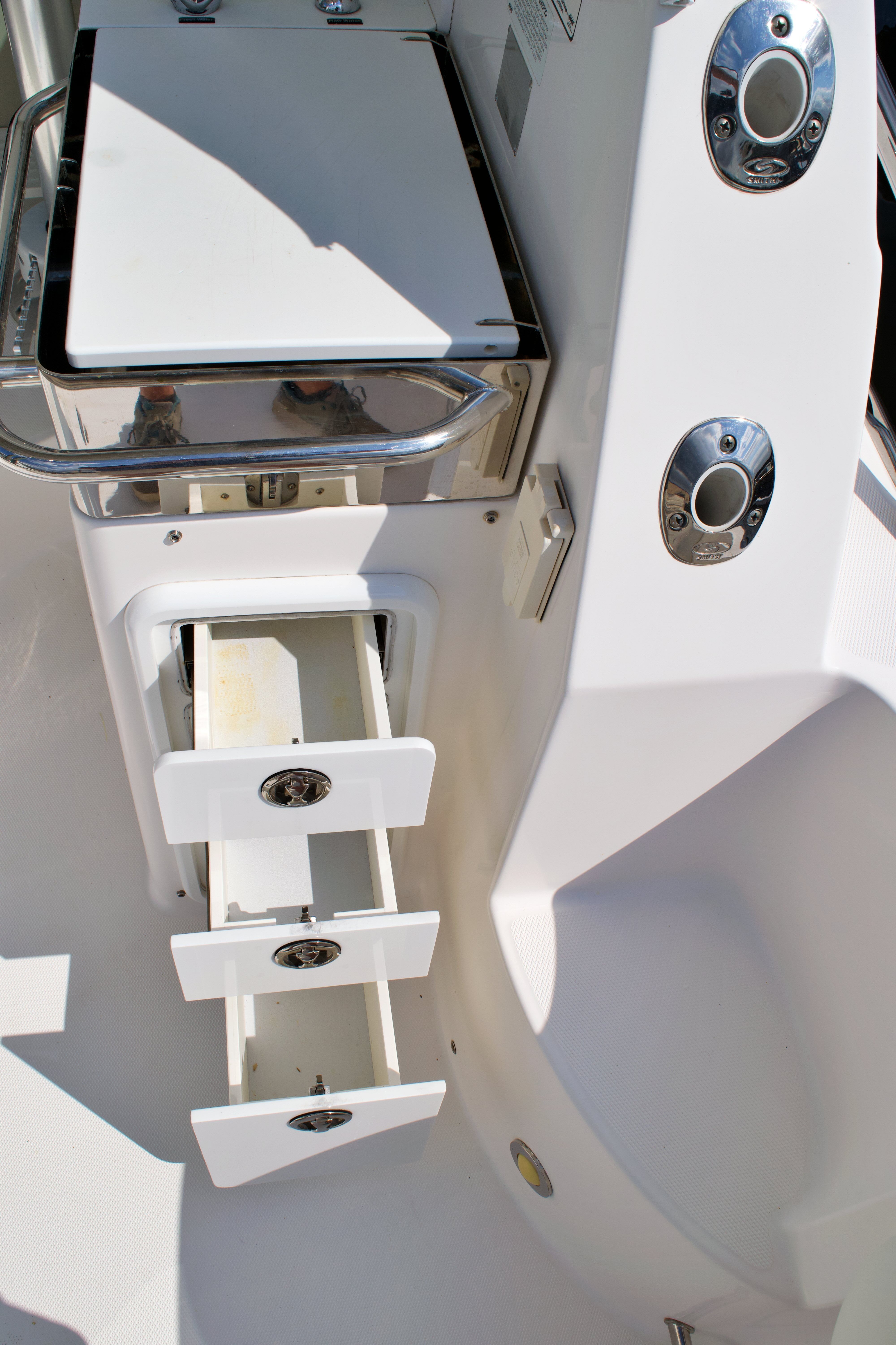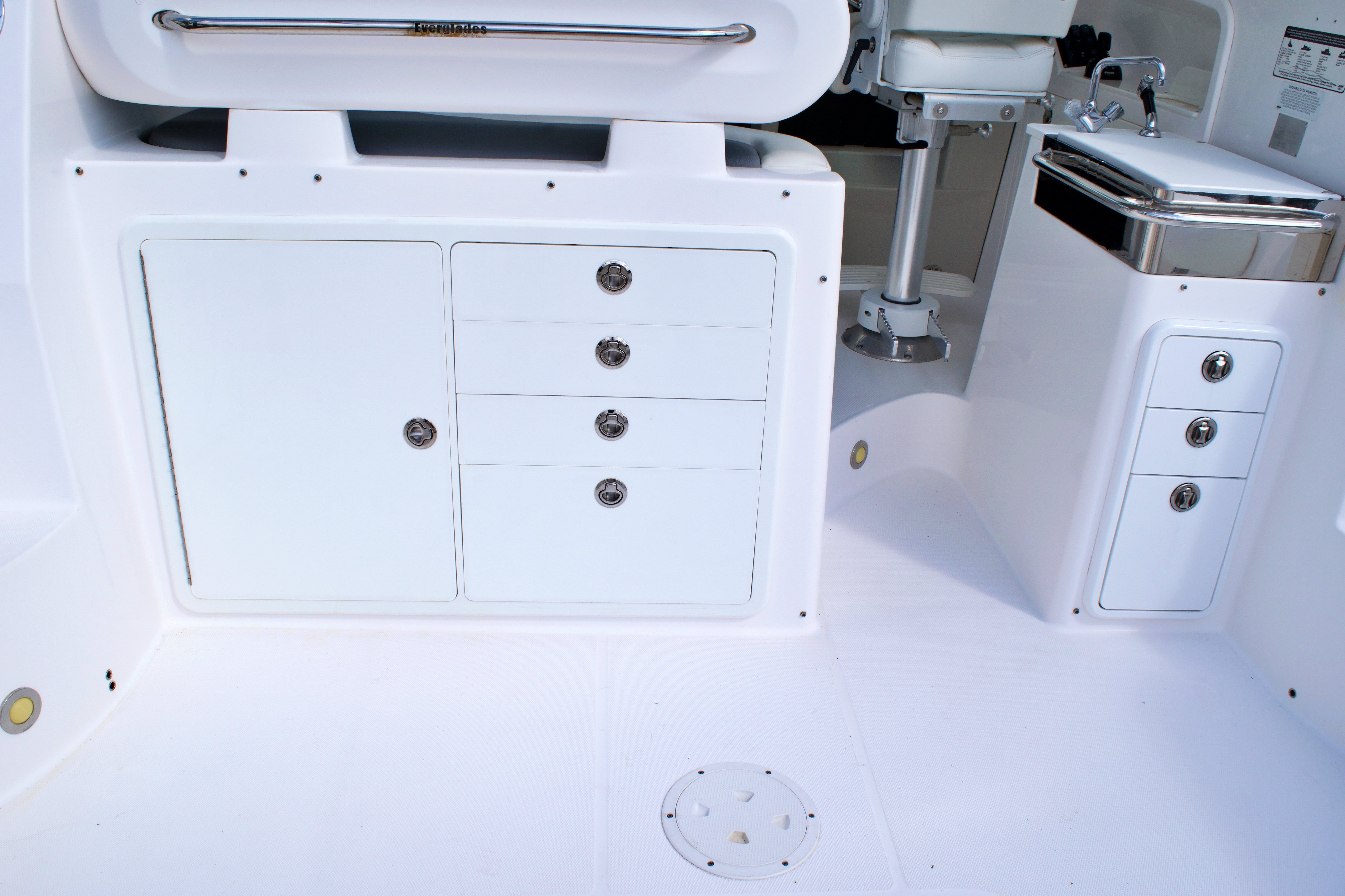 The Everglades 320 EX is as practical as it is enjoyable. Its thoughtful design includes ample storage for gear, tackle, and personal items, ensuring everything you need is within easy reach. The boat’s manageable size makes docking and maneuvering straightforward, even in busy marinas or tight spaces. Fuel efficiency is another key advantage, allowing you to spend more time on the water and less time at the pump. Whether you’re planning a long offshore excursion or a quick trip to a nearby island, this offshore boat for sale is equipped to make every outing smooth and hassle-free.