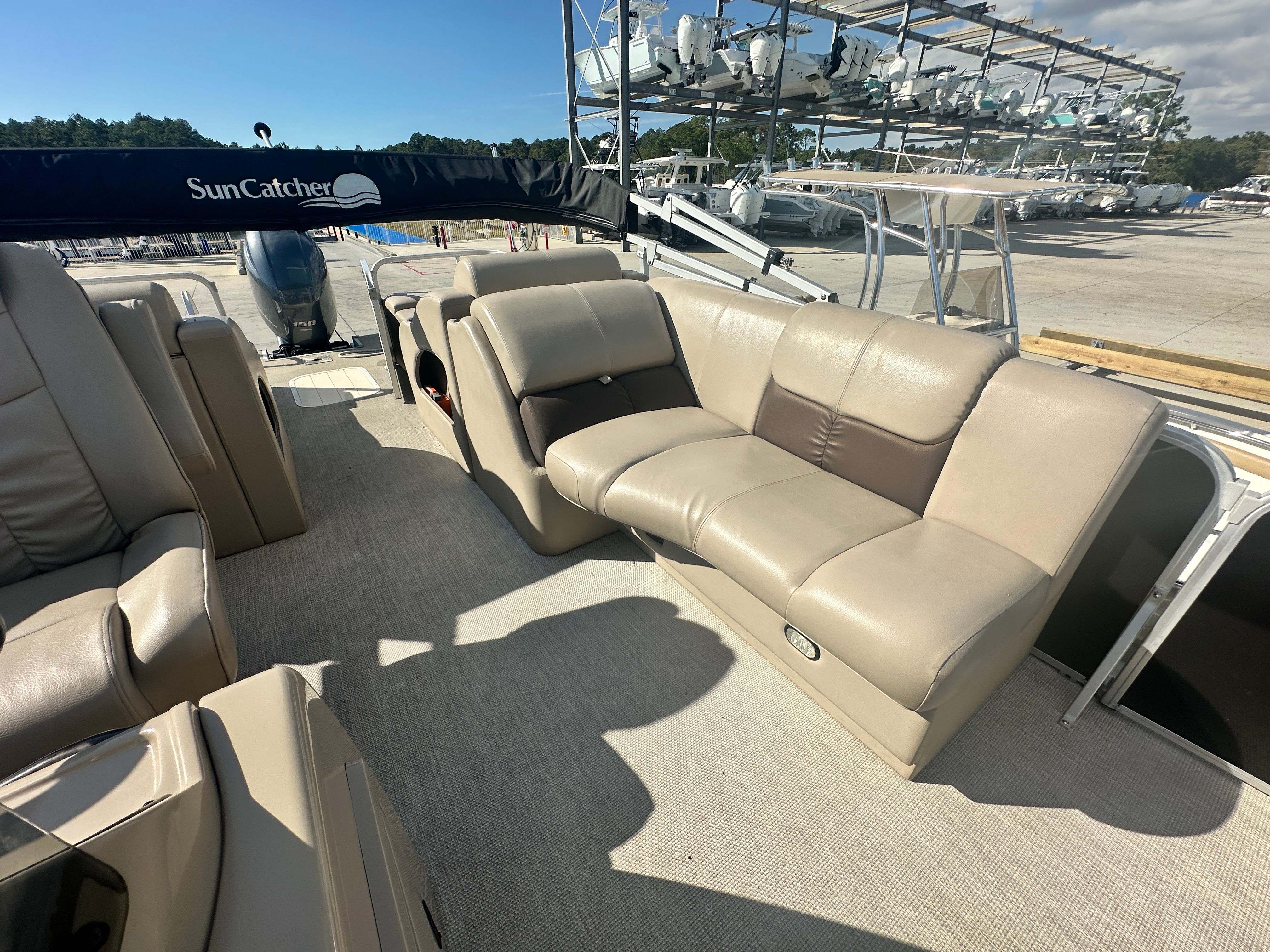 Beyond its recreational appeal, the G3 X324SS Pontoon offers practical benefits that make ownership a breeze. The spacious deck provides plenty of storage options for gear, coolers, and water toys, keeping everything organized and within reach. Its manageable length and responsive handling make docking and maneuvering straightforward, even for those new to boating.Fuel efficiency is another advantage, thanks to the single 150-horsepower engine. You’ll spend more time enjoying the water and less time refueling, maximizing your outings and minimizing hassle. The pontoon’s durable construction ensures it stands up to regular use, while its well-maintained status means you can hit the water with confidence.