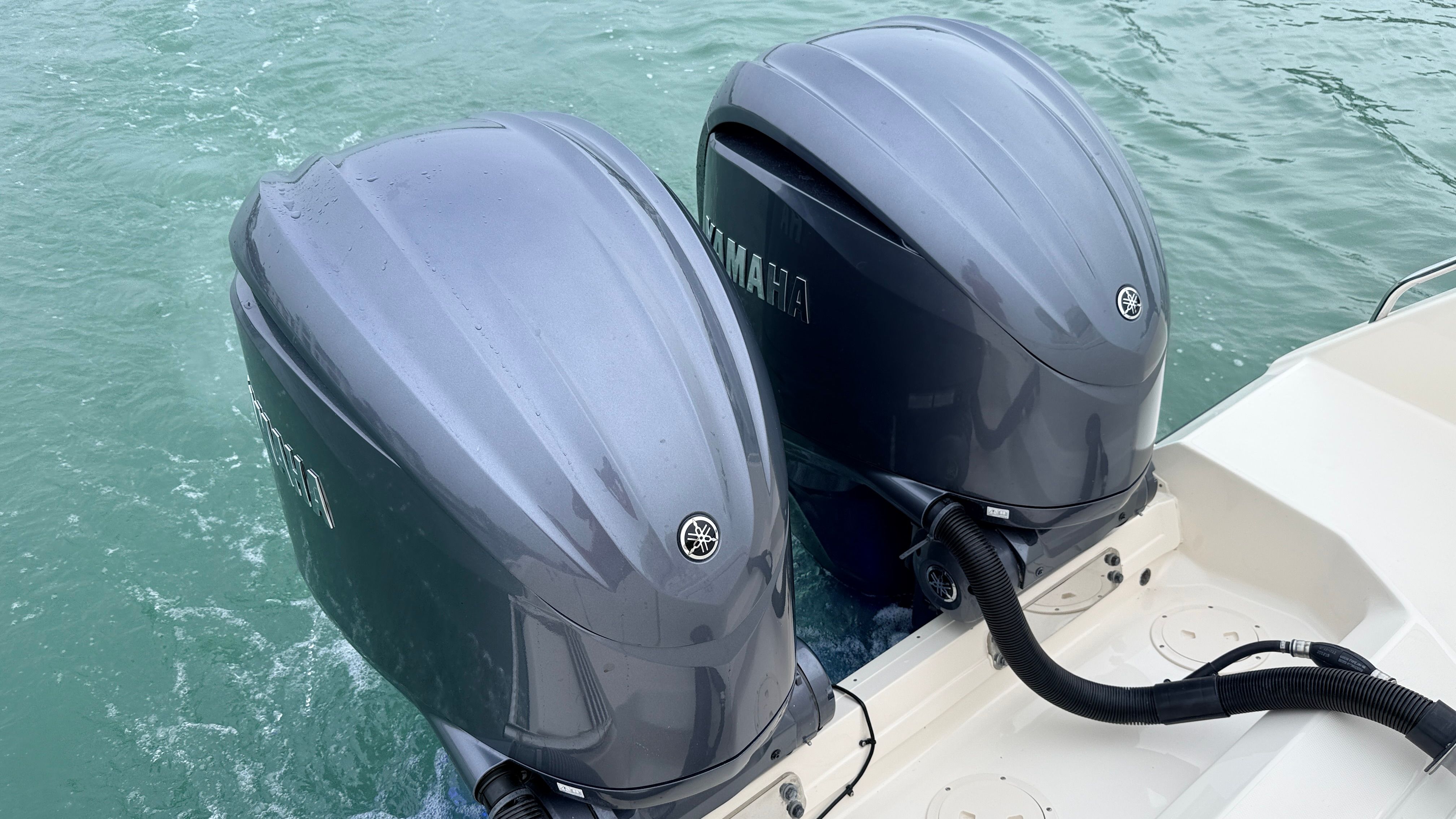• Twin Yamaha F300 DEC (Digital Electronic Controls): Upgraded gray engines with just 499 confirmed hours. Always serviced annually by certified Yamaha technicians at Quality Boats.