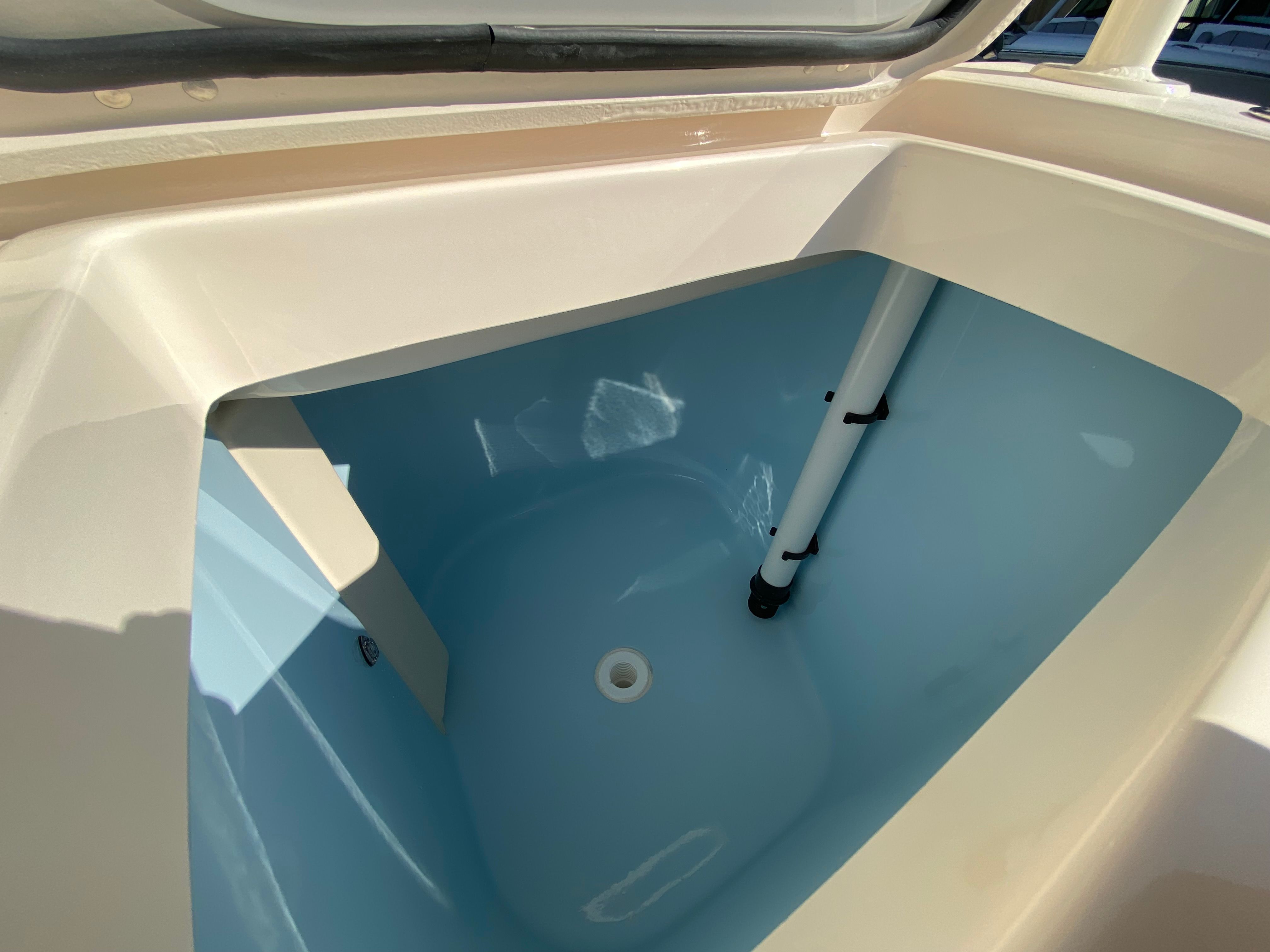 The Grady-White Canyon 306 is packed with special features that elevate your boating experience. The cast platform insert with cushion provides a comfortable spot for casting or lounging, while underwater lights add a touch of elegance and safety for evening cruises or night fishing. The gel coat in Celestial Blue gives the boat a striking appearance, complemented by the electric Sure Shade top in Oyster and an ivory bow shade for added comfort and protection from the sun. The Jit top underside in Celestial Blue enhances the boat’s aesthetic appeal, and the install silver logos (special request) add a personalized touch that sets this vessel apart from the rest.