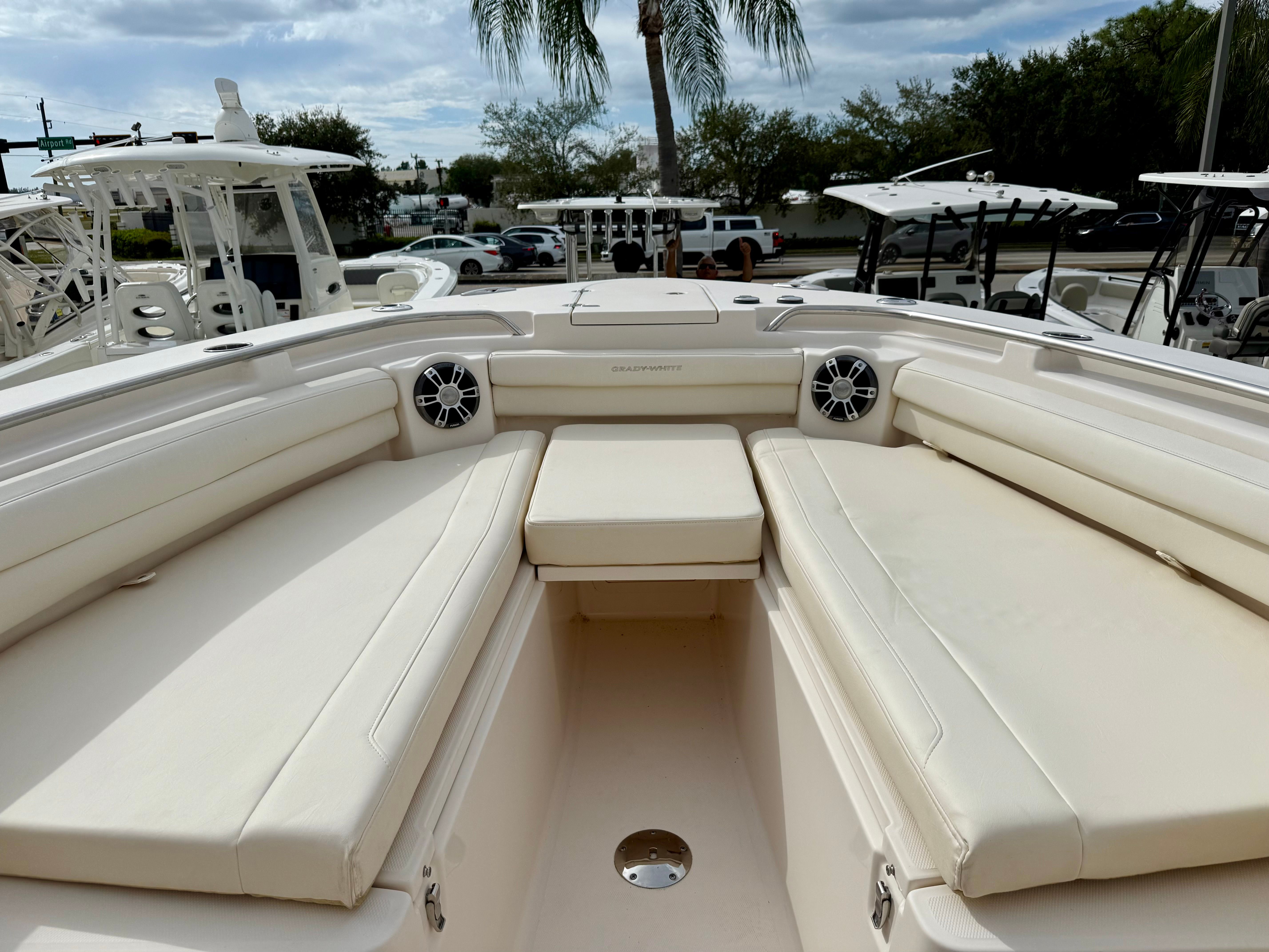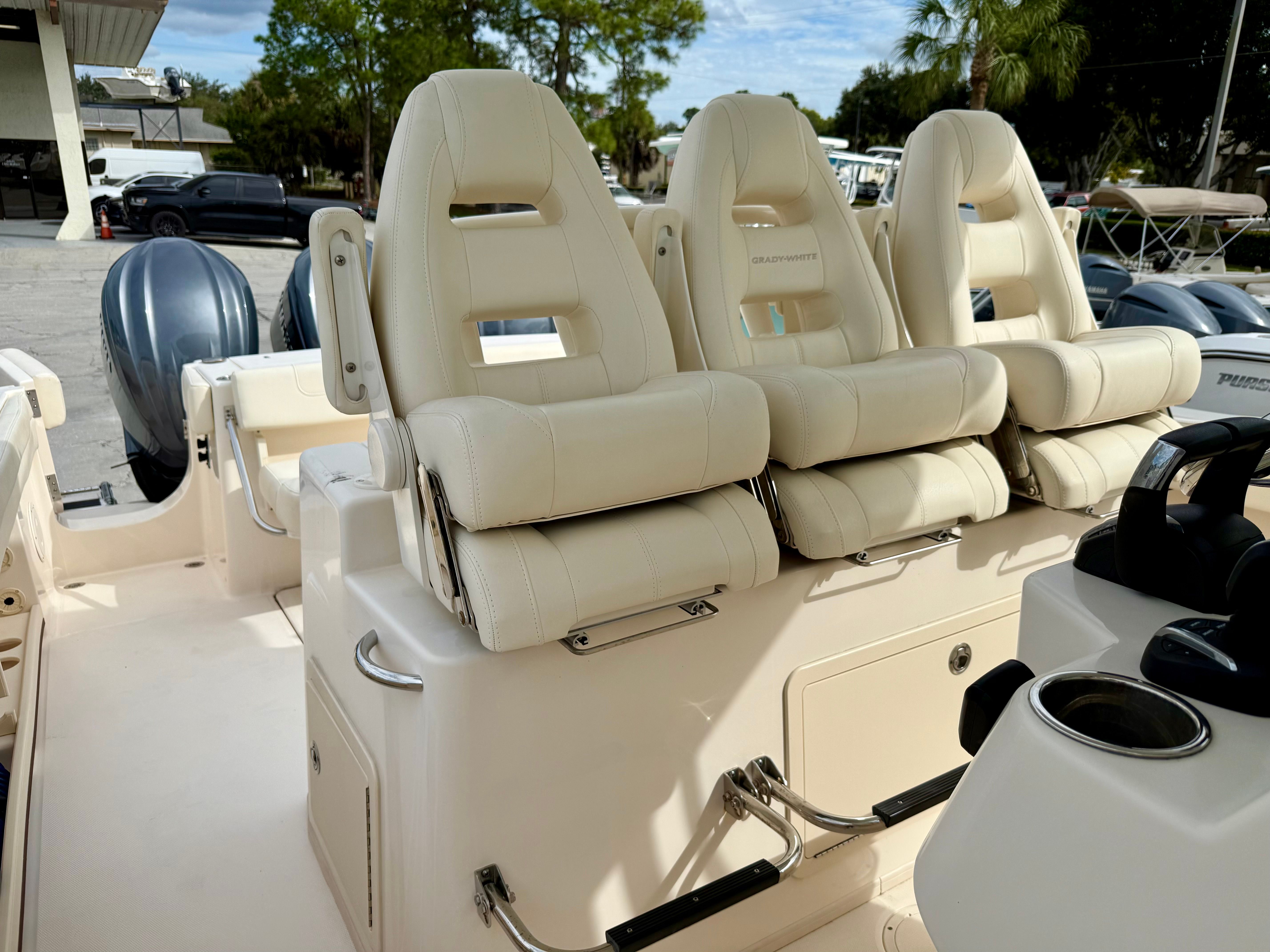 Consigned from a local customer, this impressive 2023 Grady-White Boats 336 Canyon has just been professionally cleaned and serviced, making it fully prepared for its next owner. Powered by triple Yamaha 300HP outboards with only 84 hours of use, this vessel combines power, reliability, and performance. A fresh 100-hour service has just been completed, ensuring that all systems are ready for the water. This 336 Canyon is equipped with twin Garmin 16-inch navigation displays featuring sonar for precise charting and fish finding, a Fusion stereo system for premium sound, Yamaha autopilot, Garmin VHF radio, trim tabs, a fully equipped marine head, and abundant seating from bow to stern for comfort and versatility. The layout is designed for both serious offshore fishing and leisurely family cruising. A fresh coat of bottom paint has also just been applied, adding to the vessel’s turnkey readiness. Call us today to schedule your private viewing. All preowned boat pricing includes financing through Naples Boat Mart with approved credit.