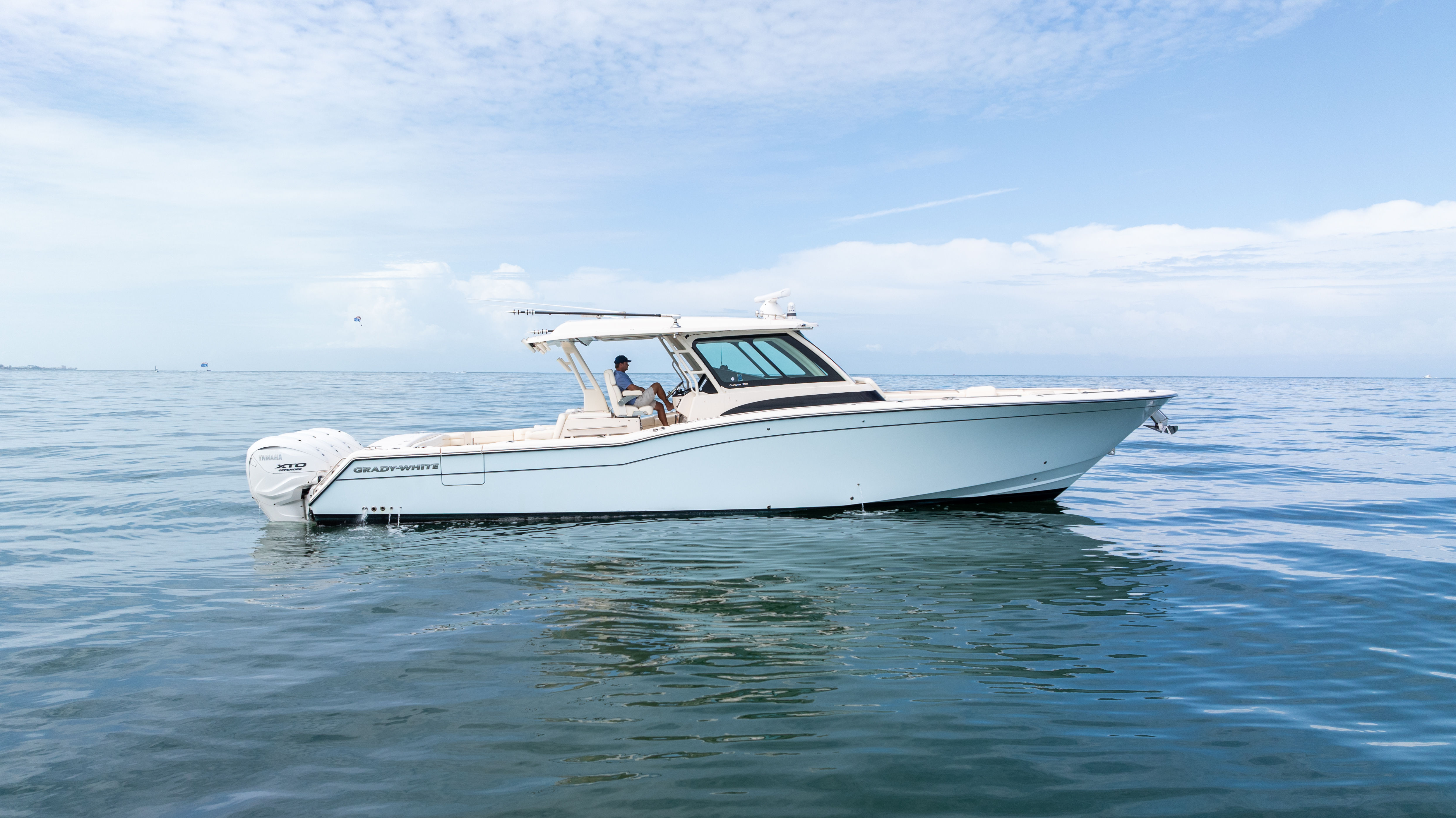 Experience the pinnacle of offshore sportfishing and cruising with this pre-owned 2023 Grady-White Canyon 456, a flagship center console loaded with power, comfort, and cutting-edge technology. Powered by quad Yamaha 450hp outboards, this beast delivers breathtaking performance with confidence-inspiring control, thanks to Yamaha’s integrated joystick steering system and bow thruster.