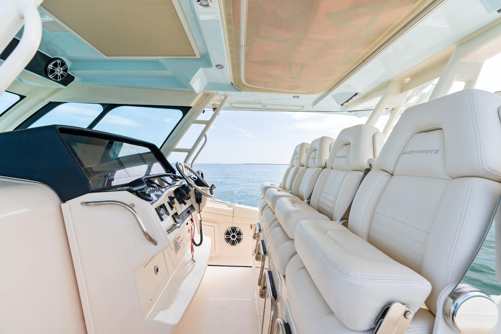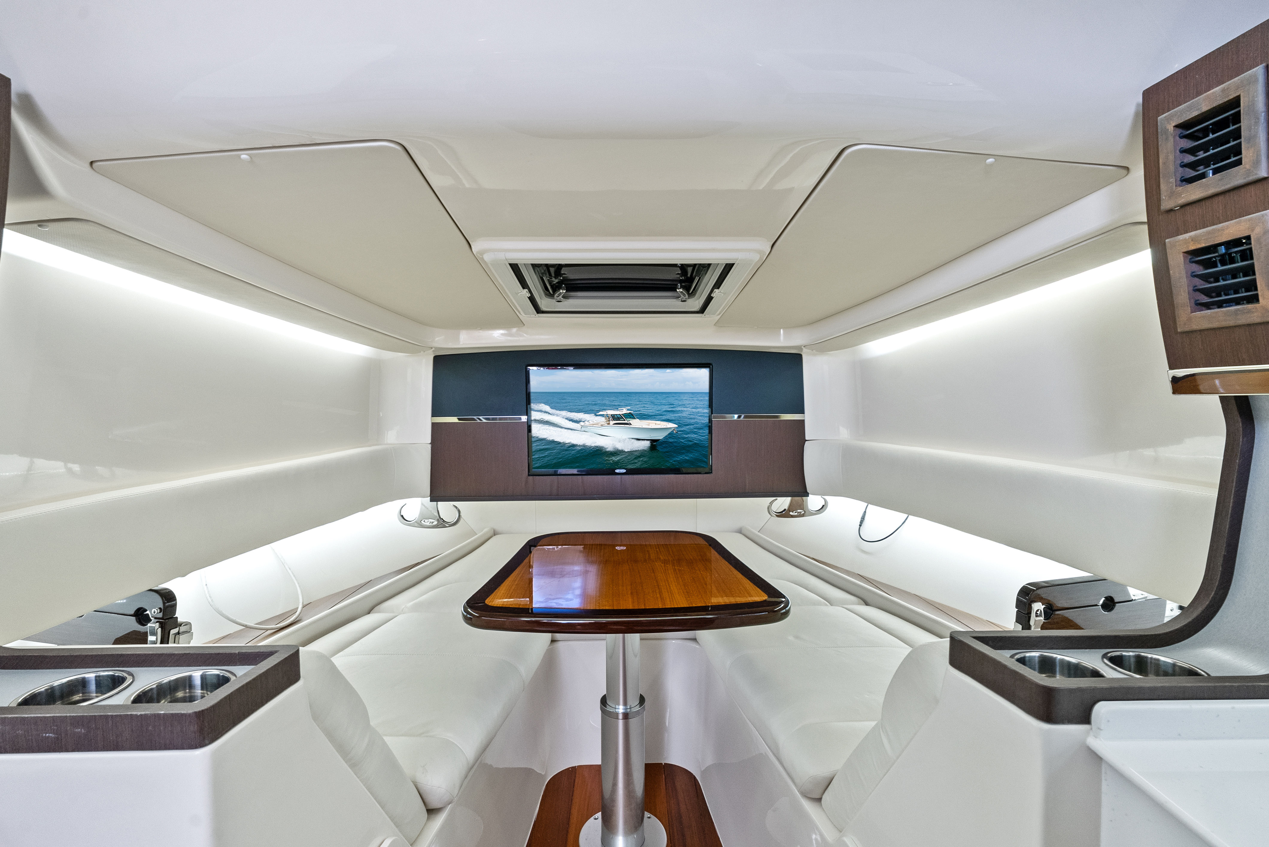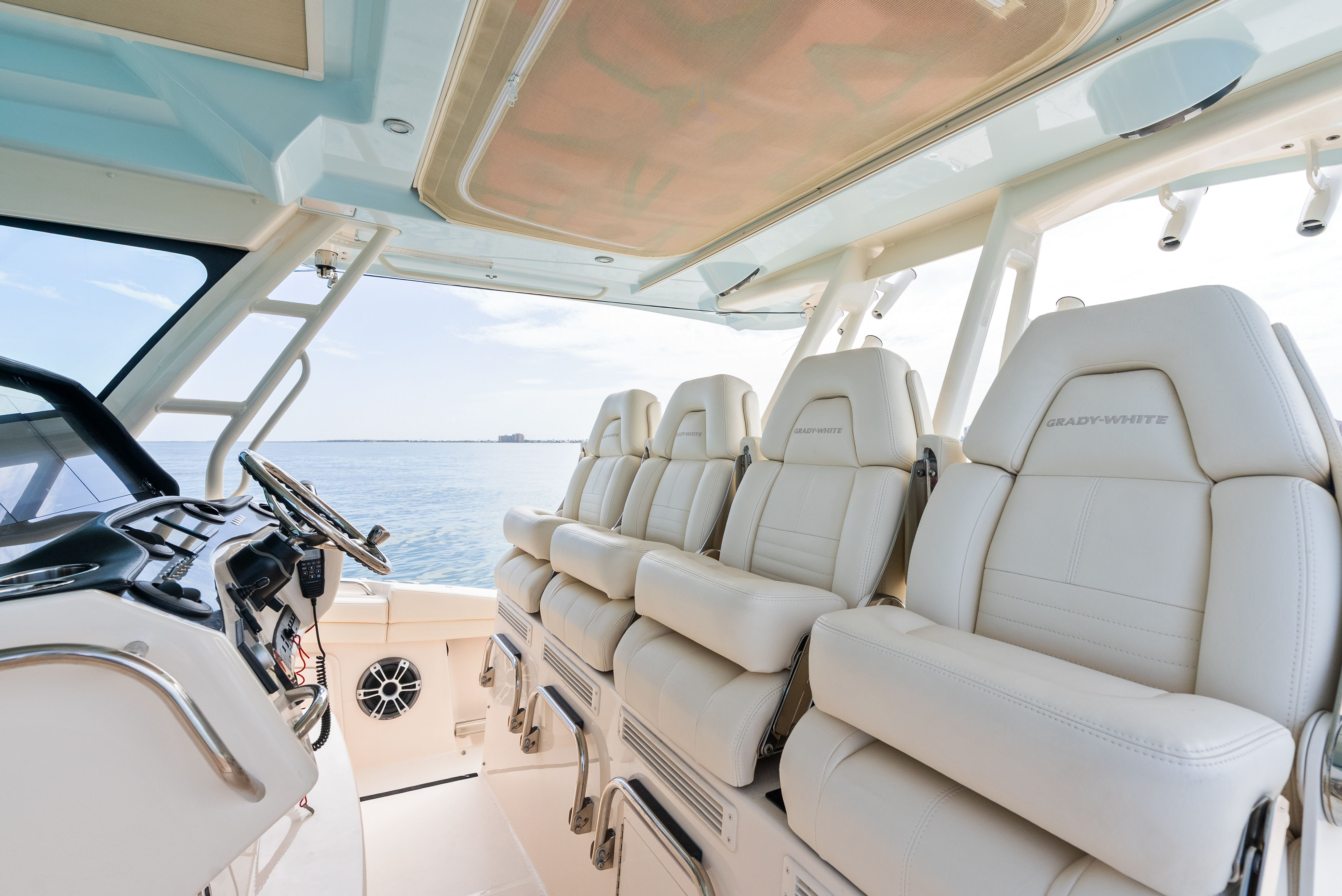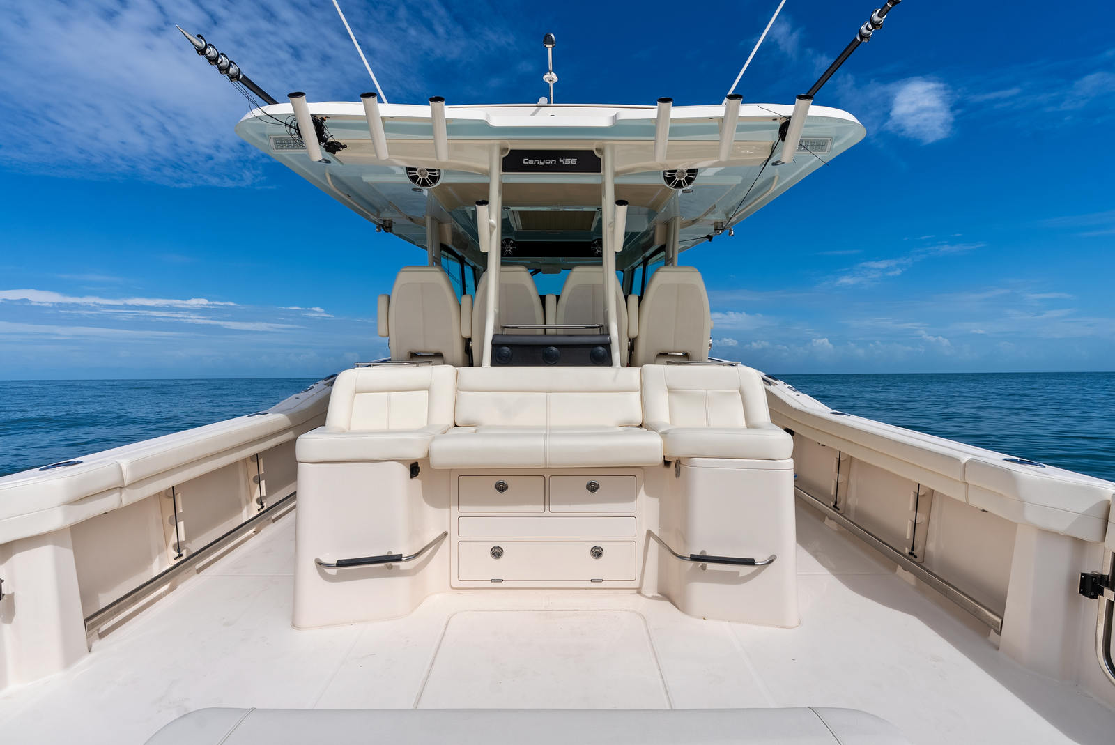 The Canyon 456 is not just about performance—it's about livable luxury. Below deck, the spacious climate-controlled cabin features: