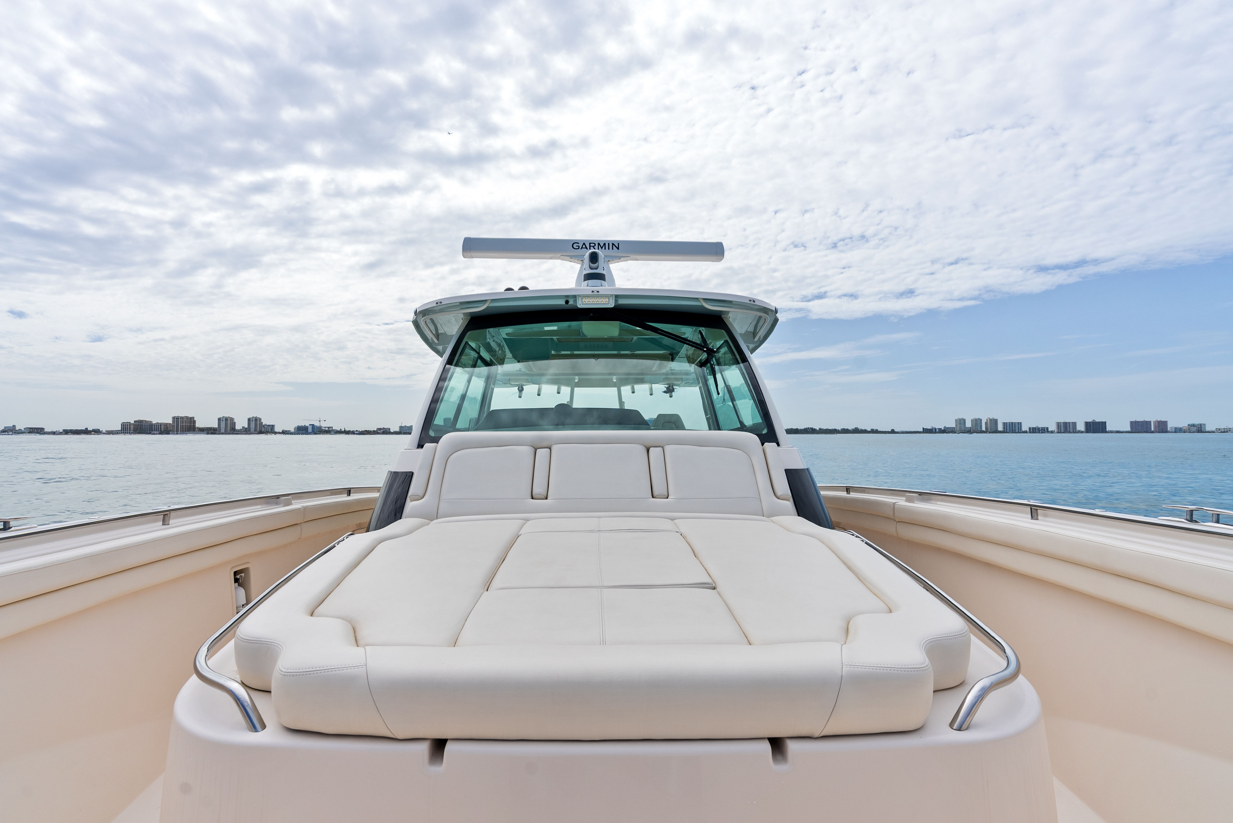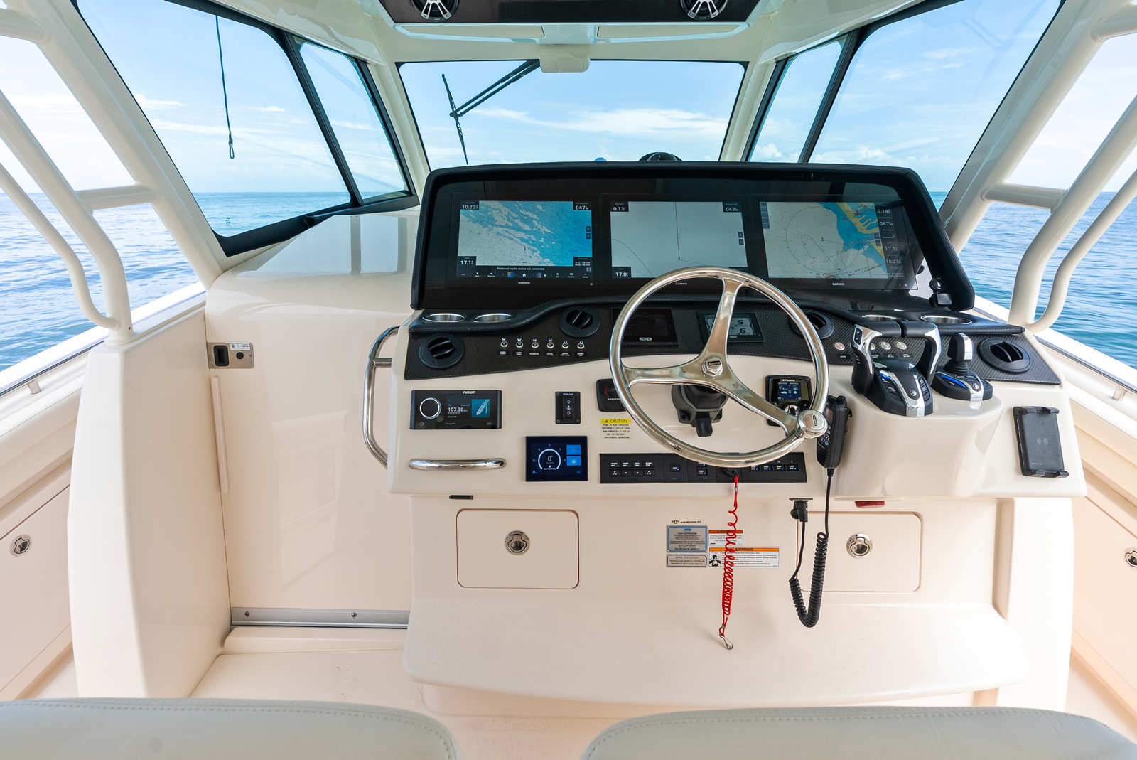 Equipped with triple Garmin multifunction displays at the helm, you’ll enjoy seamless control over chartplotting, sonar, and system diagnostics. The package also includes: