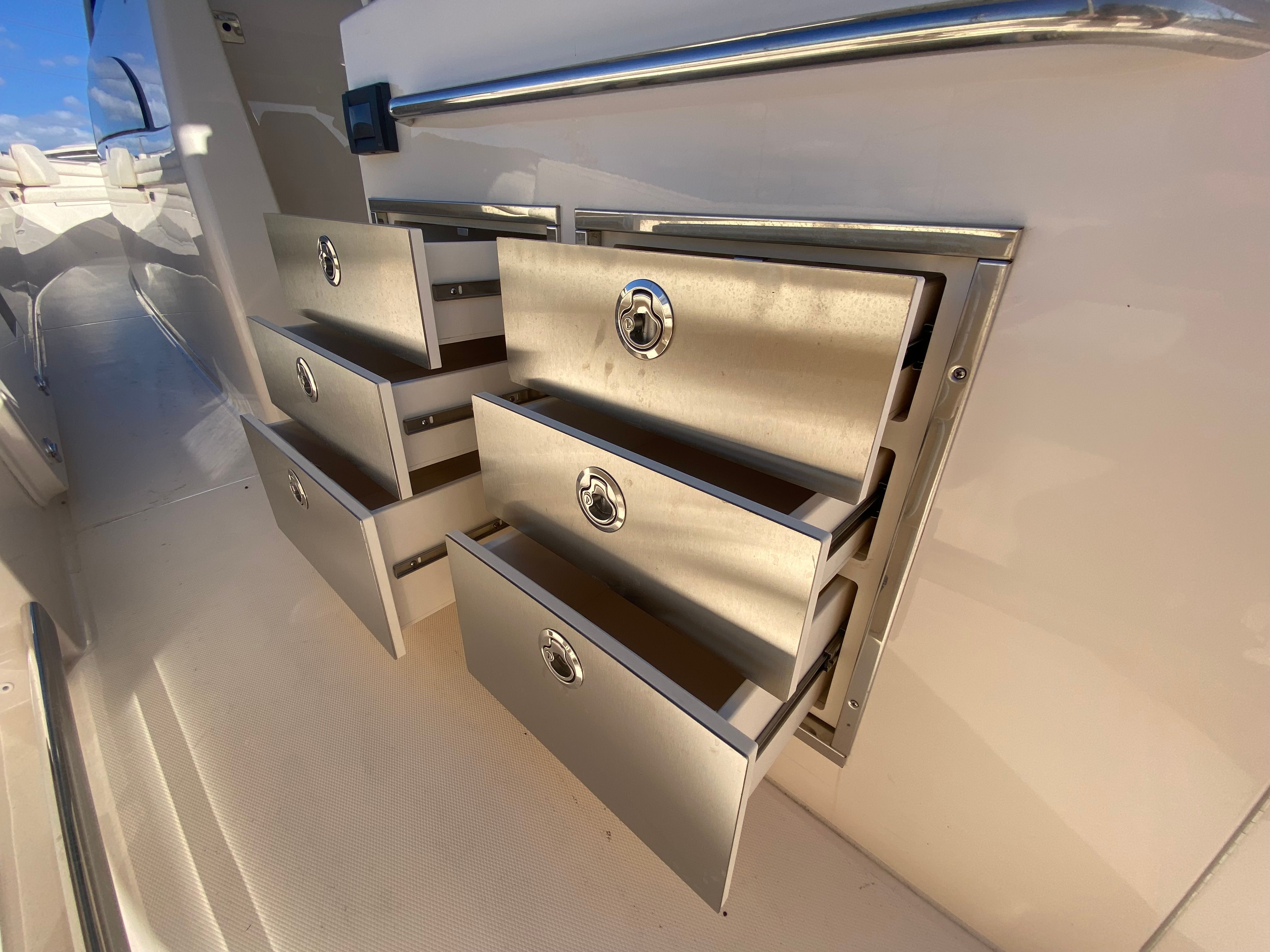 Powering the Canyon 456 are four robust Yamaha XF450NSA2 engines, delivering a combined 1800 horsepower. This quad-engine setup offers exhilarating speed, smooth handling, and the confidence to tackle offshore waters with ease. Whether you’re heading out for a day of deep-sea fishing or cruising along the coast, the Canyon 456’s performance is nothing short of impressive. The prerig Quad Yam XF450NSA2 FM W/ BTH ensures seamless integration and optimal engine management, allowing you to focus on the adventure ahead.