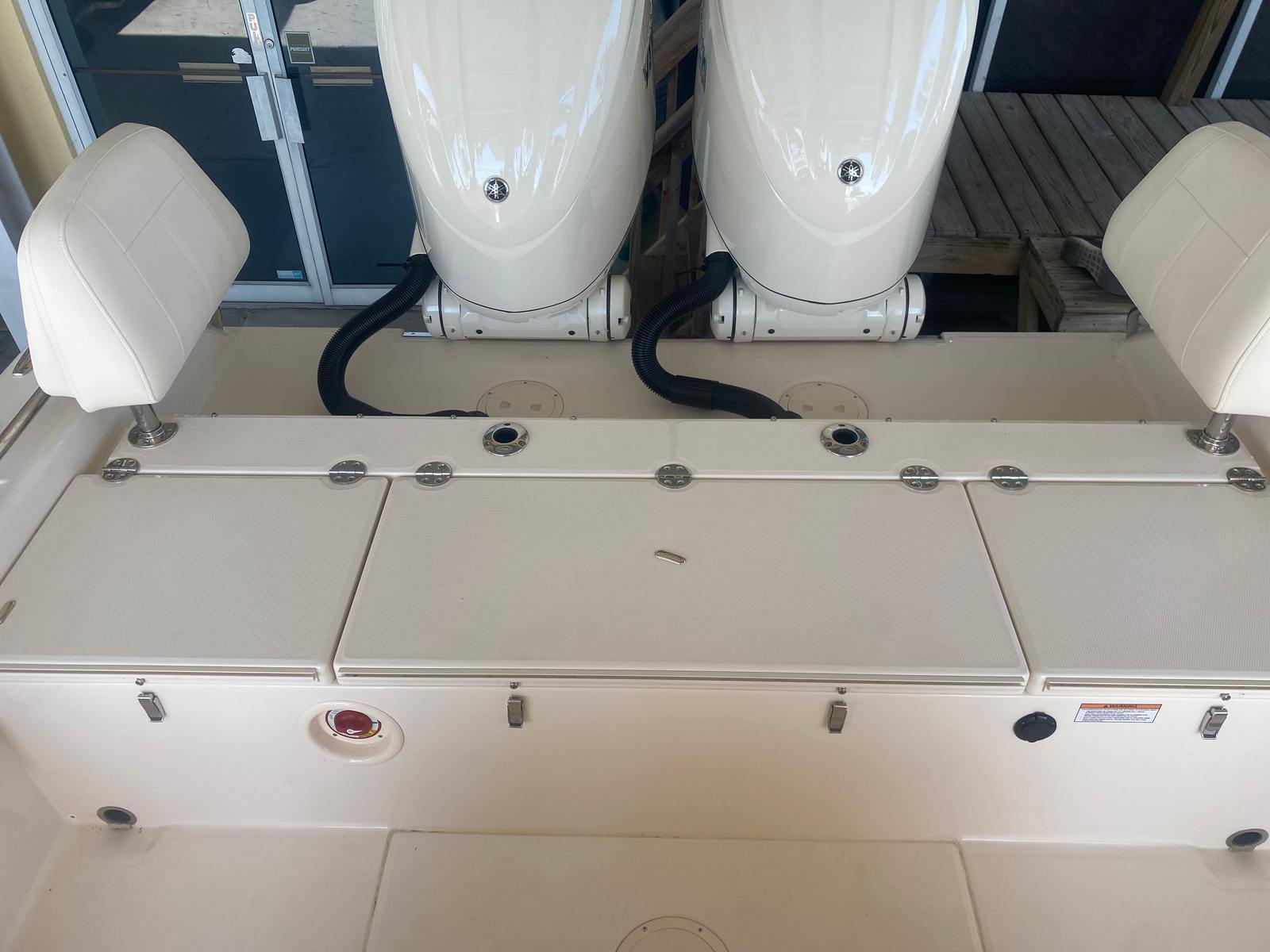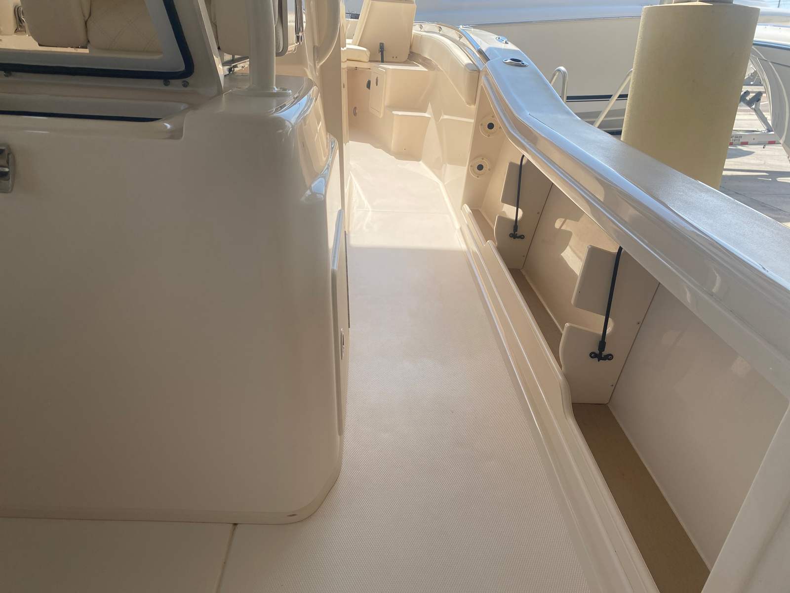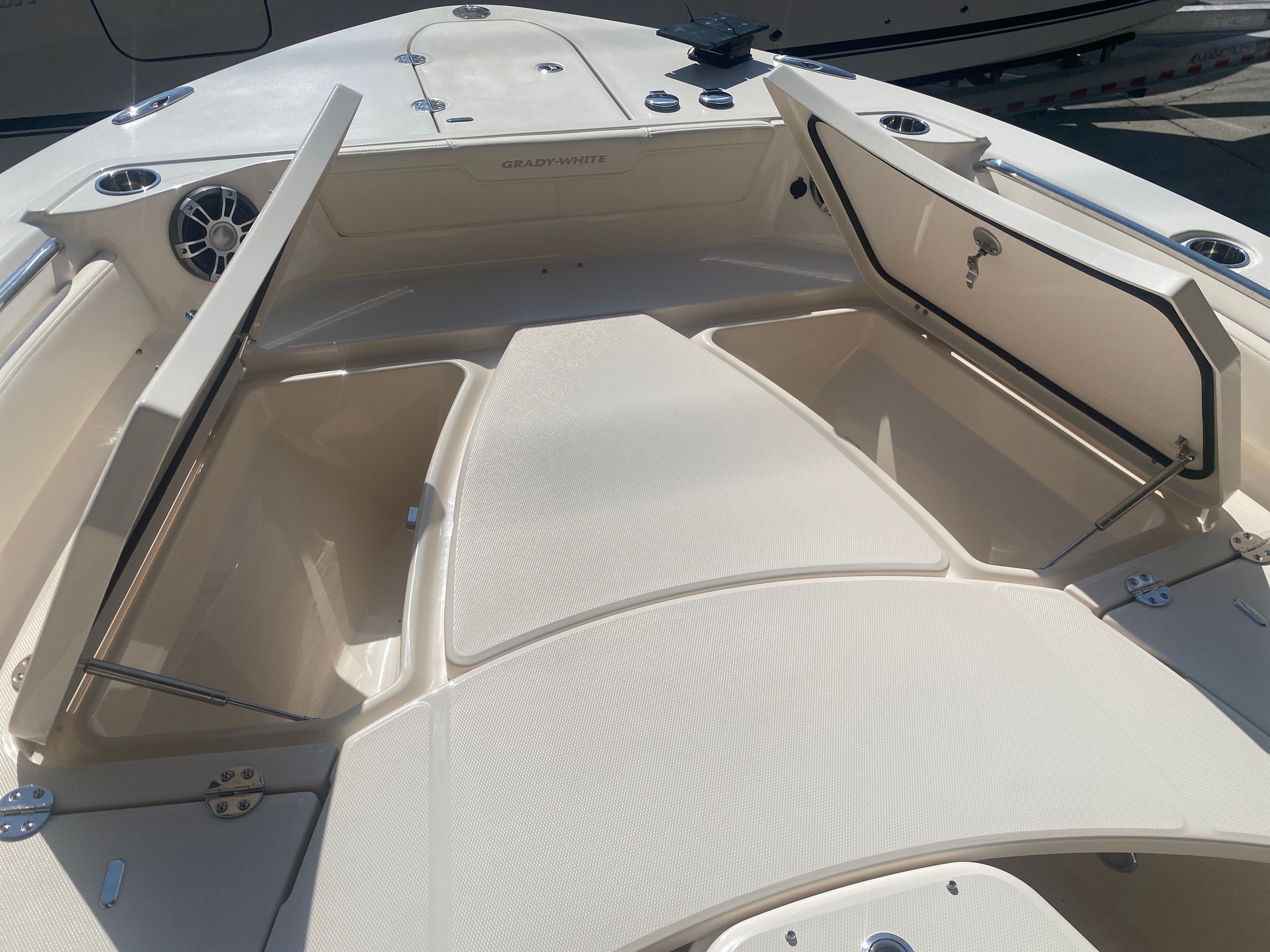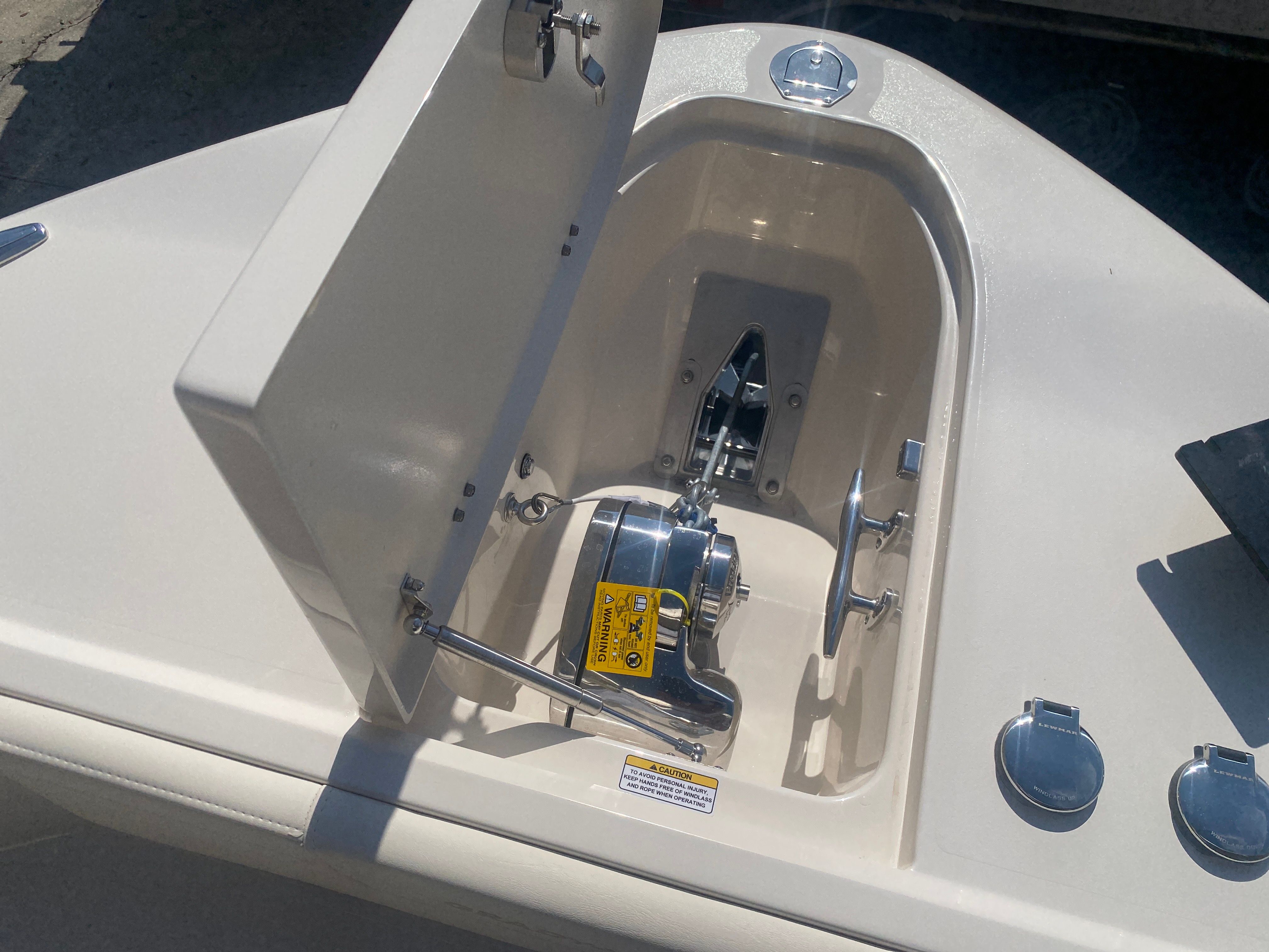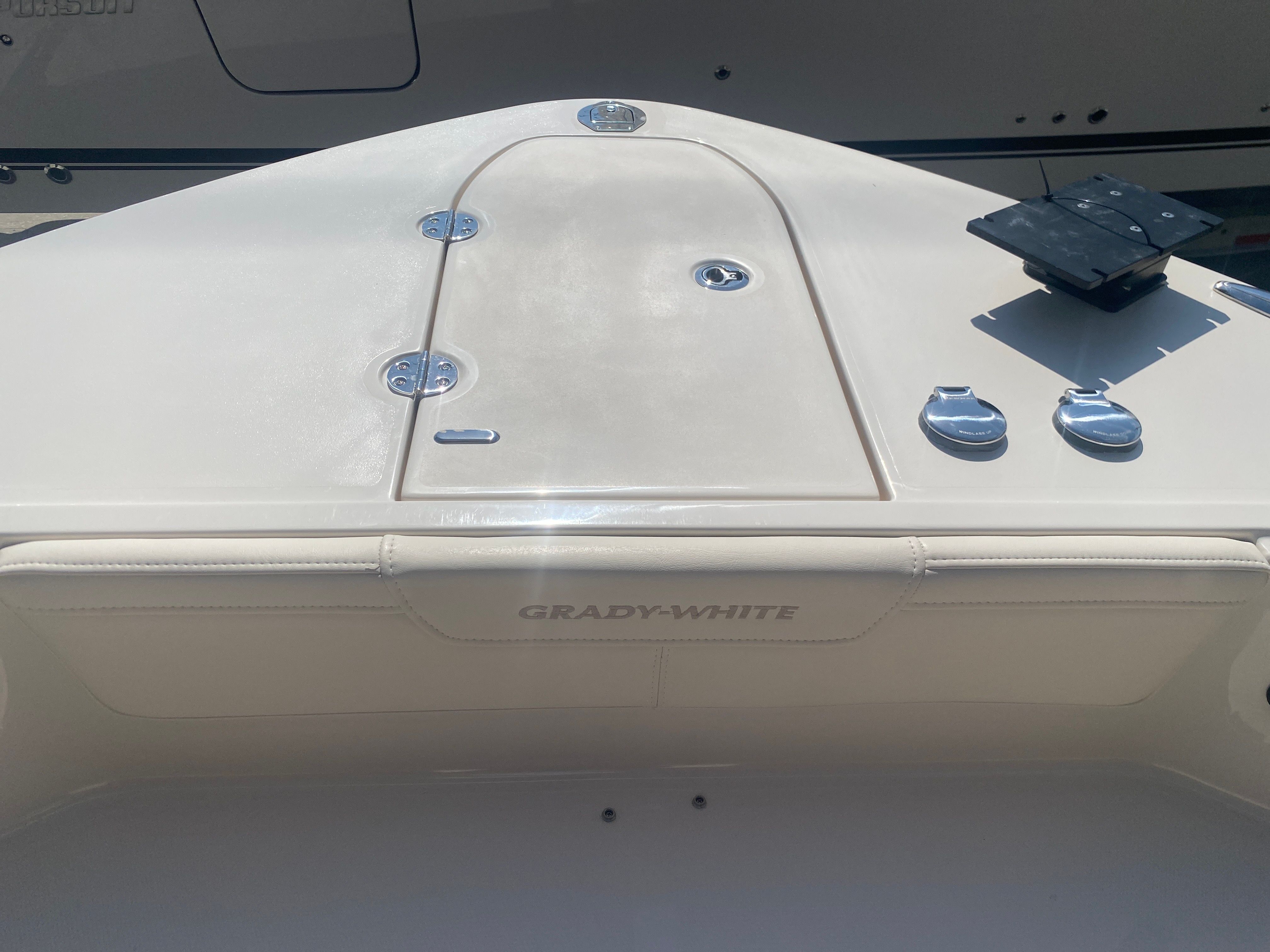 Underwater lights add a touch of elegance and visibility, enhancing your nighttime adventures on the water. The delete engine bolt sealer ensures a smooth and streamlined hull, reducing drag and improving overall performance. The Power PTX Sure Shade Top Oyster provides reliable shade from the sun, keeping you cool and comfortable during those long days on the water. Additionally, the Jit Top Underside Coastal Fog complements the boat's stunning exterior while offering protection from the elements.
