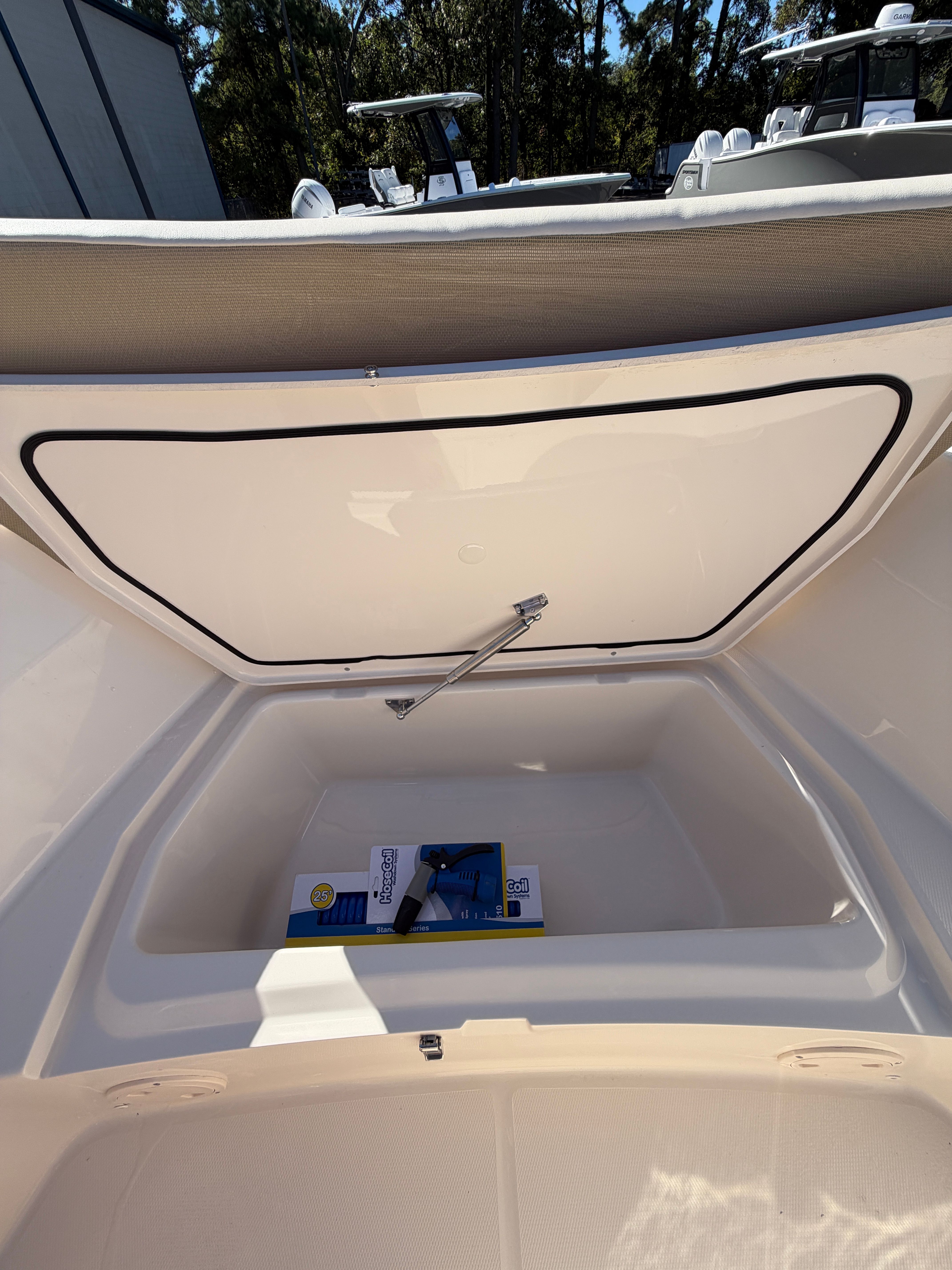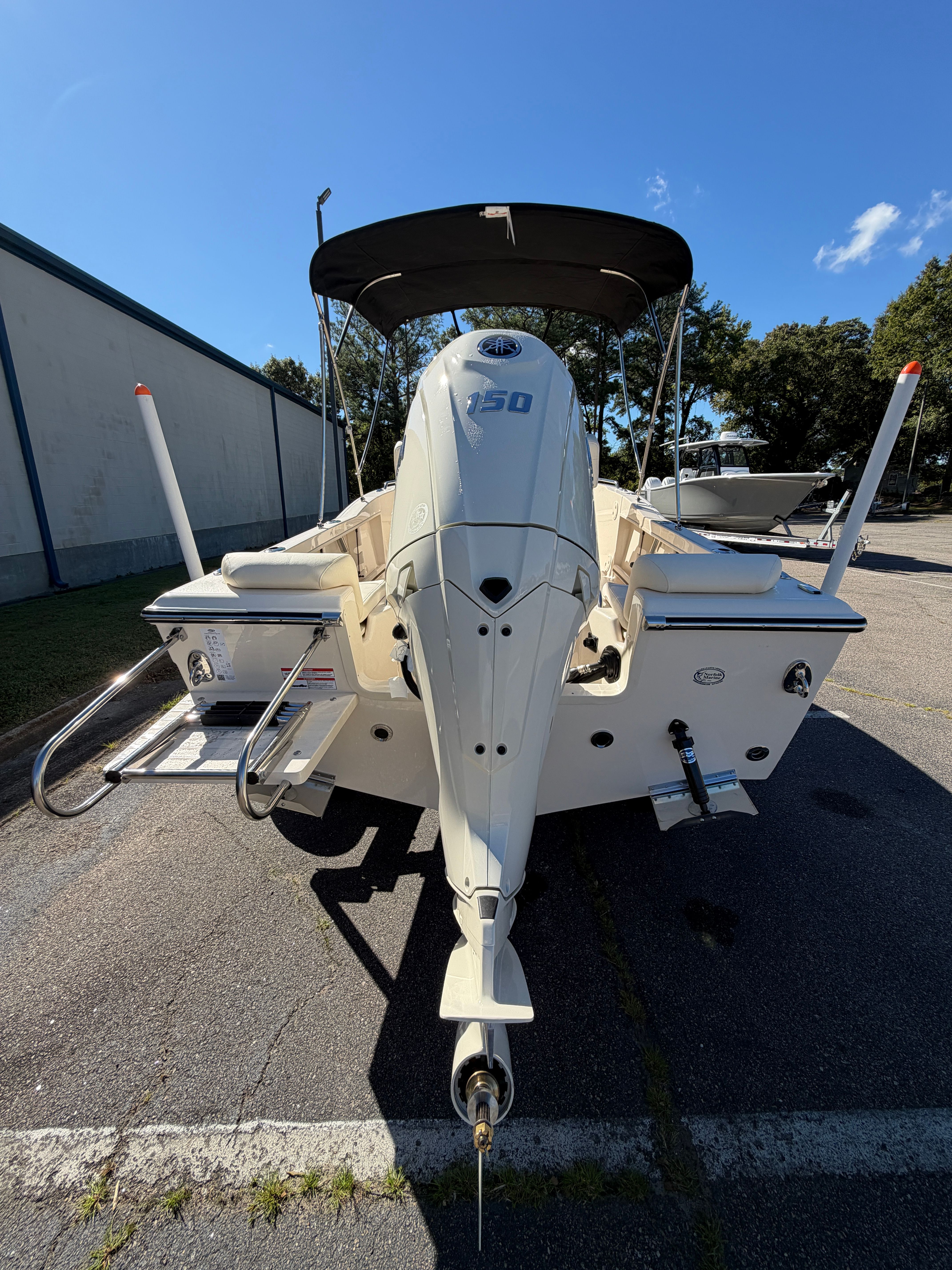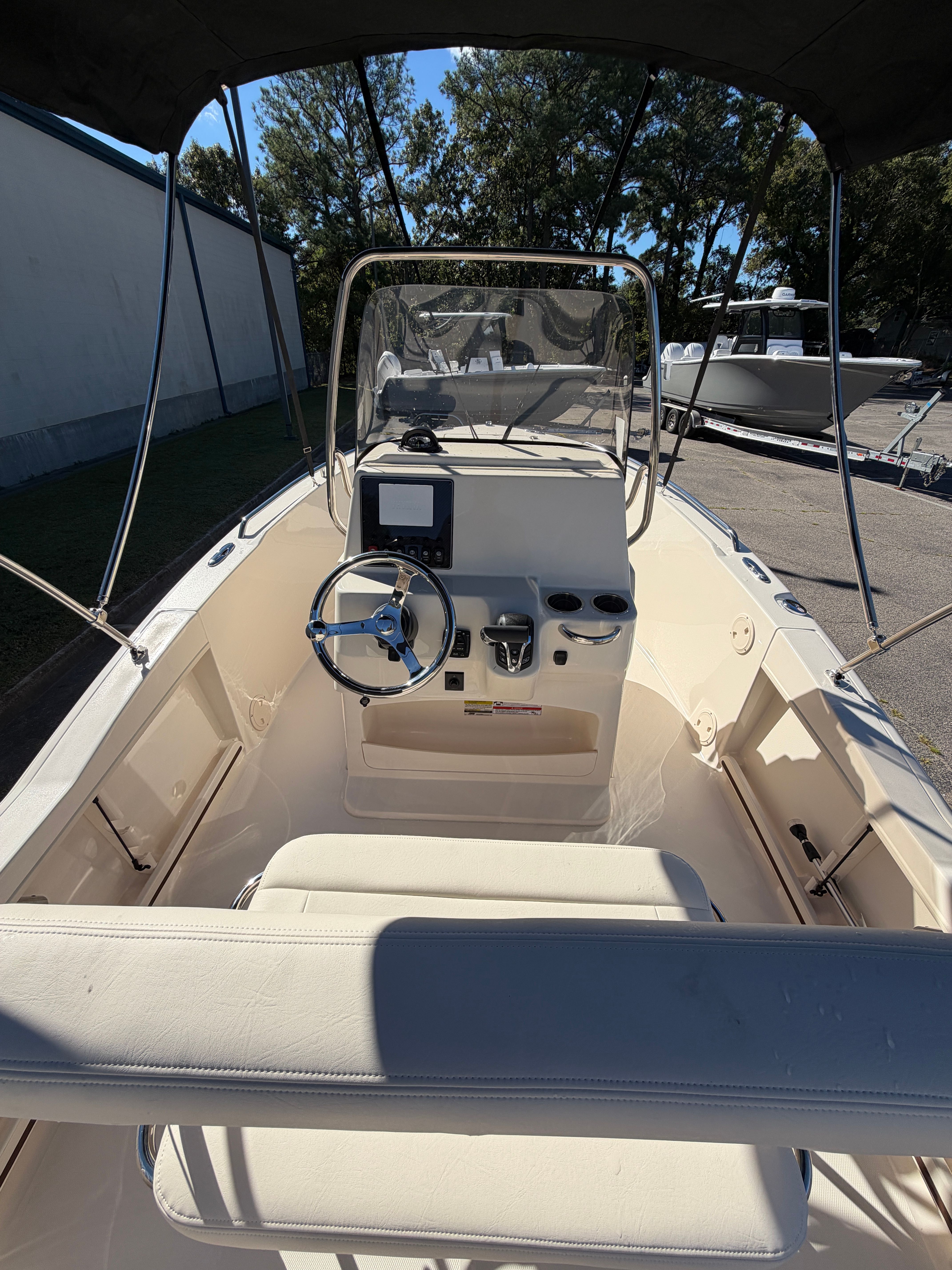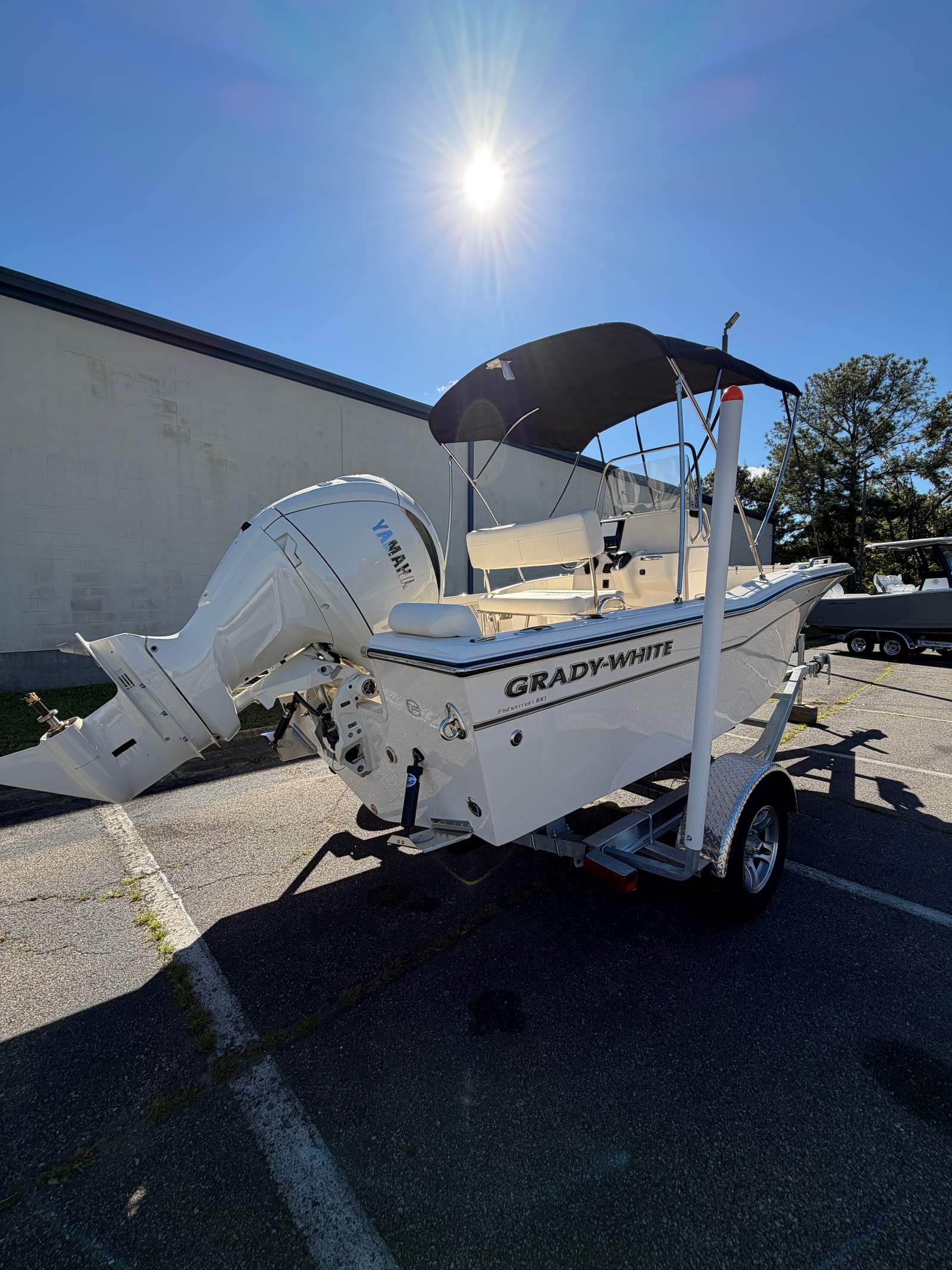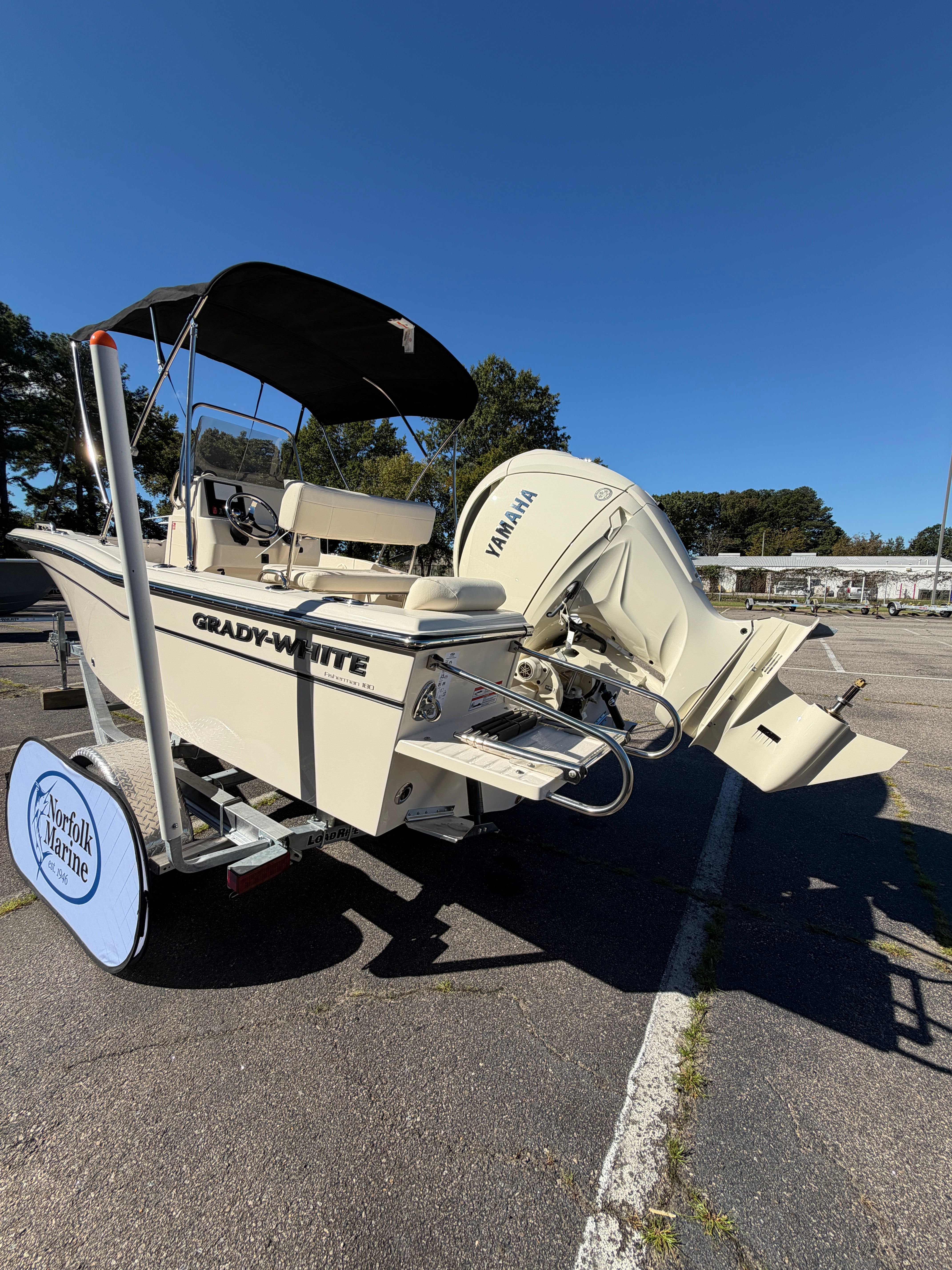 The 2026 Grady-White Fisherman 180 comes equipped with a range of special features designed to enhance your time on the water. The PRERIG SGL YAM F150 IDES180 ensures seamless compatibility with the Yamaha F150XD engine, optimizing both performance and reliability. The hull’s classic white color not only adds to the boat’s visual appeal but also reflects sunlight, helping to keep the deck cooler on hot days. For added convenience, the raw water washdown system makes it easy to clean up after a day of fishing or family fun, keeping your boat spotless and ready for the next adventure. The black "Bimini" top with boot provides essential shade and protection from the sun, allowing you to enjoy extended outings in comfort.