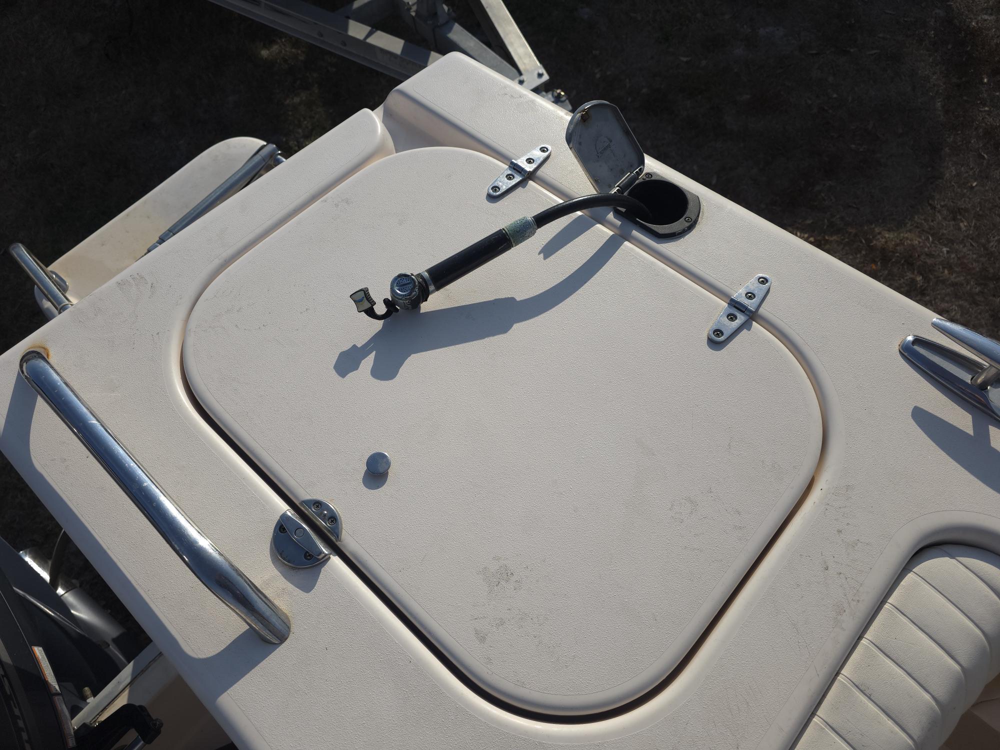 The cockpit is spacious and offers a classic straight transom and traditional single-engine motorwell with no need for a removable or flip-down motorwell dam. This configuration allows for the patented fold-down aft bench seat, as well as the 35-gallon livewell to starboard. The well is fully insulated and doubles as a cooler when not doing live-bait duty. The livewell is fed by a 1,100 gph pump and has full water-column distribution to keep bait strong and healthy throughout the day. A 20-quart drop-in storage box with tray to port is just another “Gradyism” that maximizes storage and makes sense for the family on the water, whether they are fishing or hanging out on the sandbar.