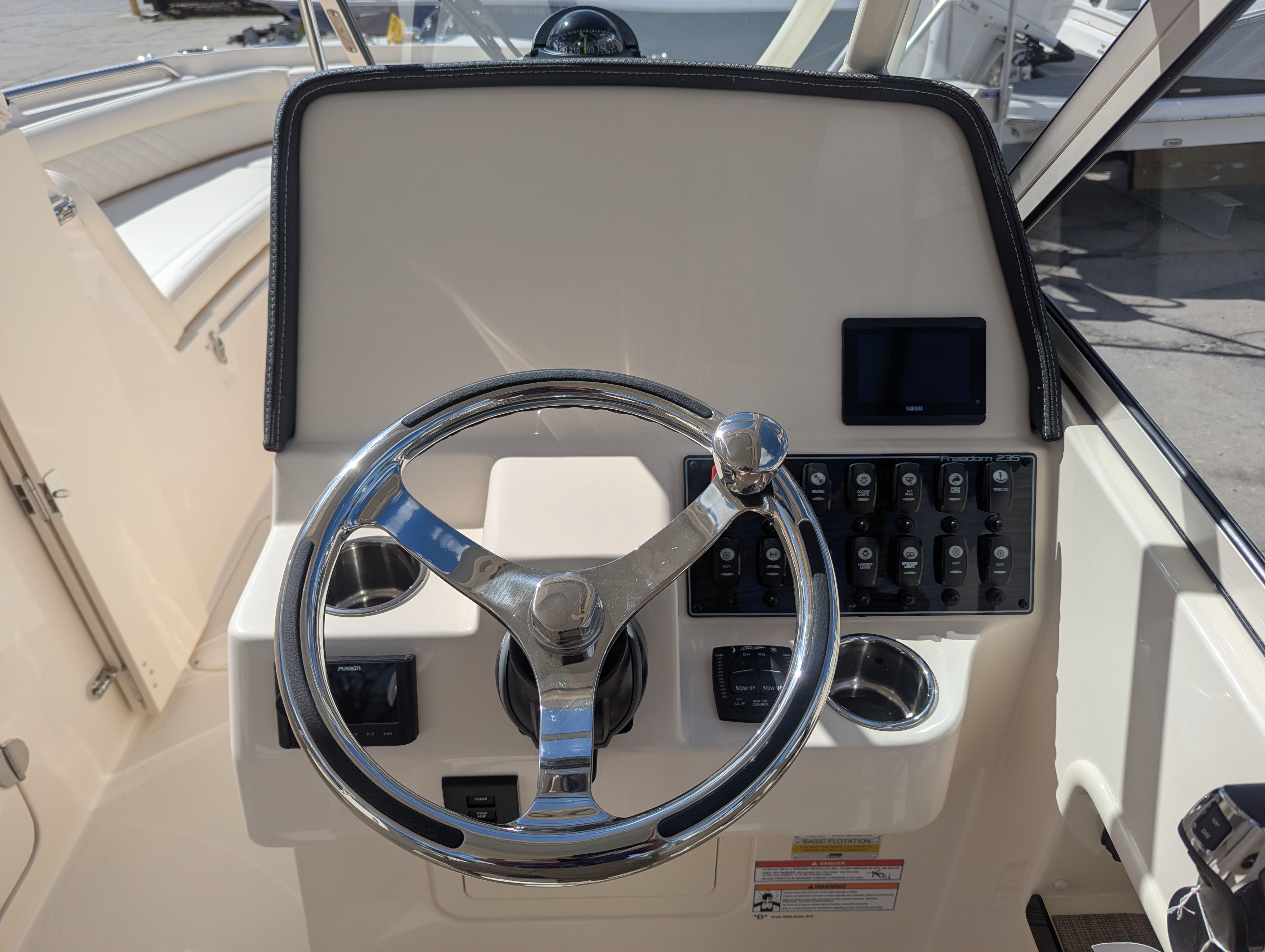 The Grady-White Freedom 235 is designed with practicality in mind, making boat ownership easier and more enjoyable. The cockpit step simplifies boarding for all ages, while the spacious layout provides plenty of storage for gear, water toys, and personal items. The efficient Yamaha F300 engine helps you make the most of your time on the water, offering reliable performance and manageable fuel consumption.Docking and maneuvering are straightforward thanks to the boat’s responsive handling and well-thought-out controls. The anchor windlass system saves time and effort when securing the boat, and the hard top provides protection for both passengers and equipment. Whether you are planning a quick afternoon escape or a full day of adventure, the Freedom 235 is equipped to handle it all with ease.