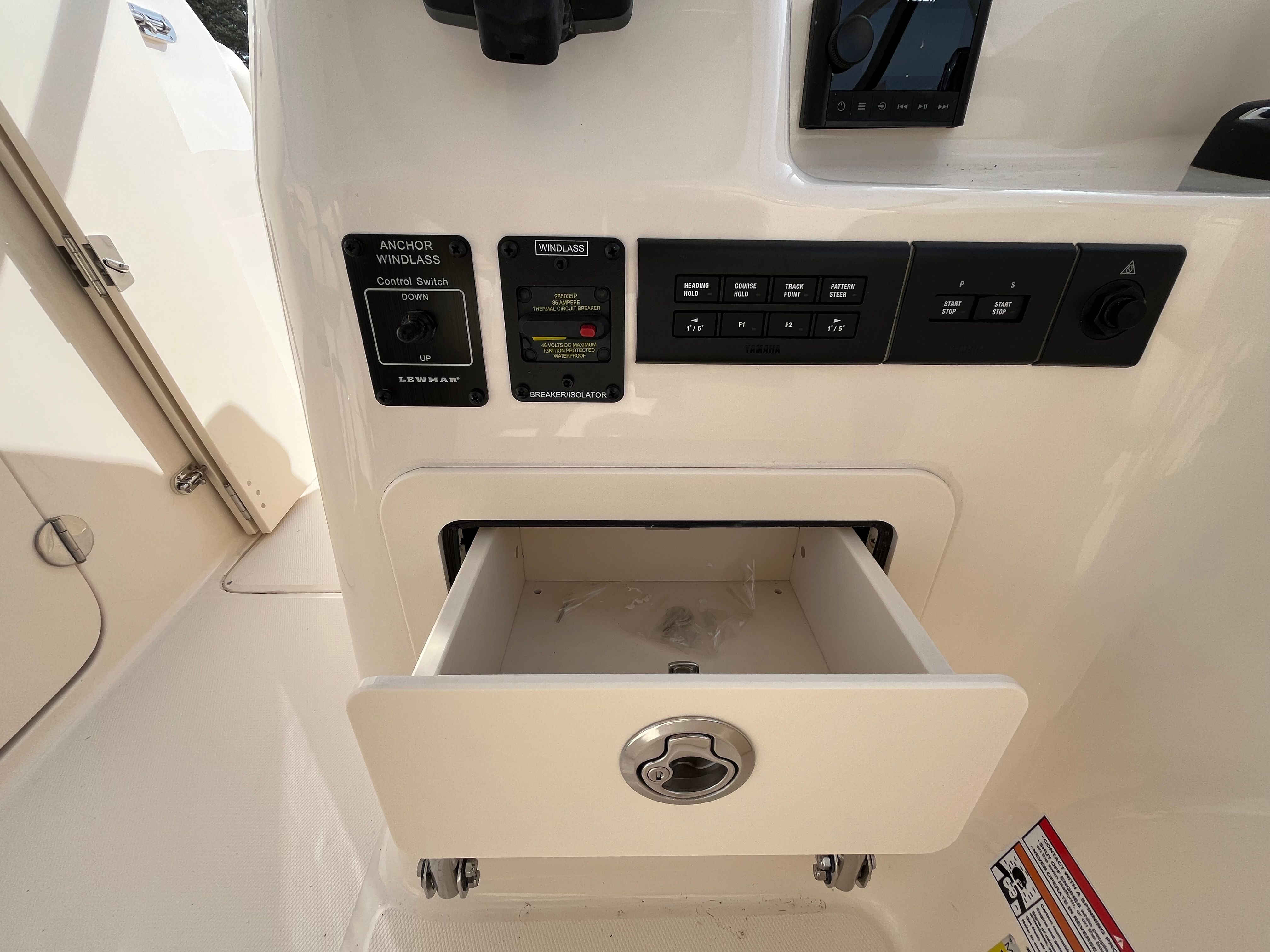 • Marine Head with Electric Flush & Holding Tank – Enhances convenience for long days on the water.