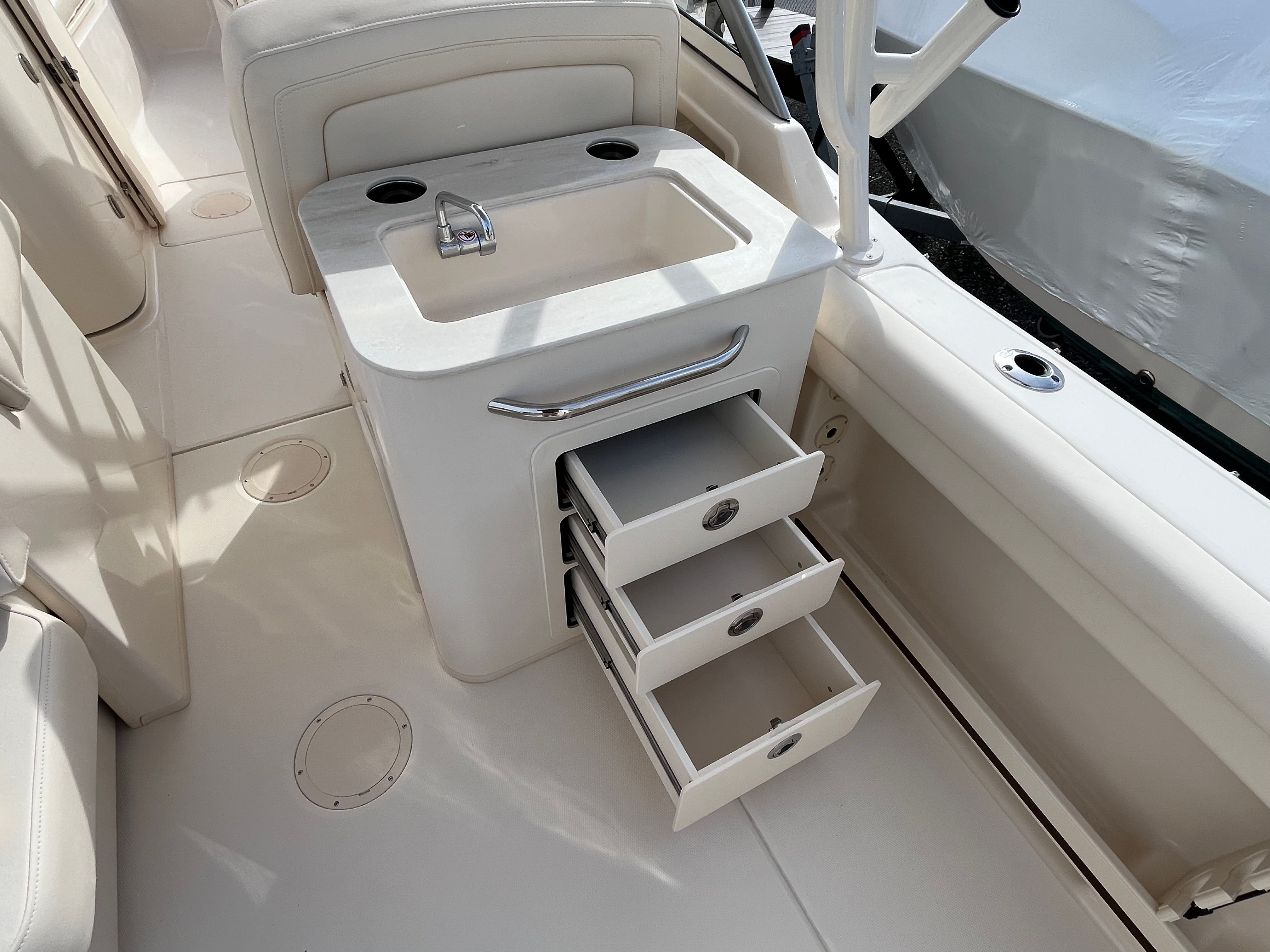 • The legendary Grady White SeaV² hull ensures a stable, smooth ride in varying sea conditions.