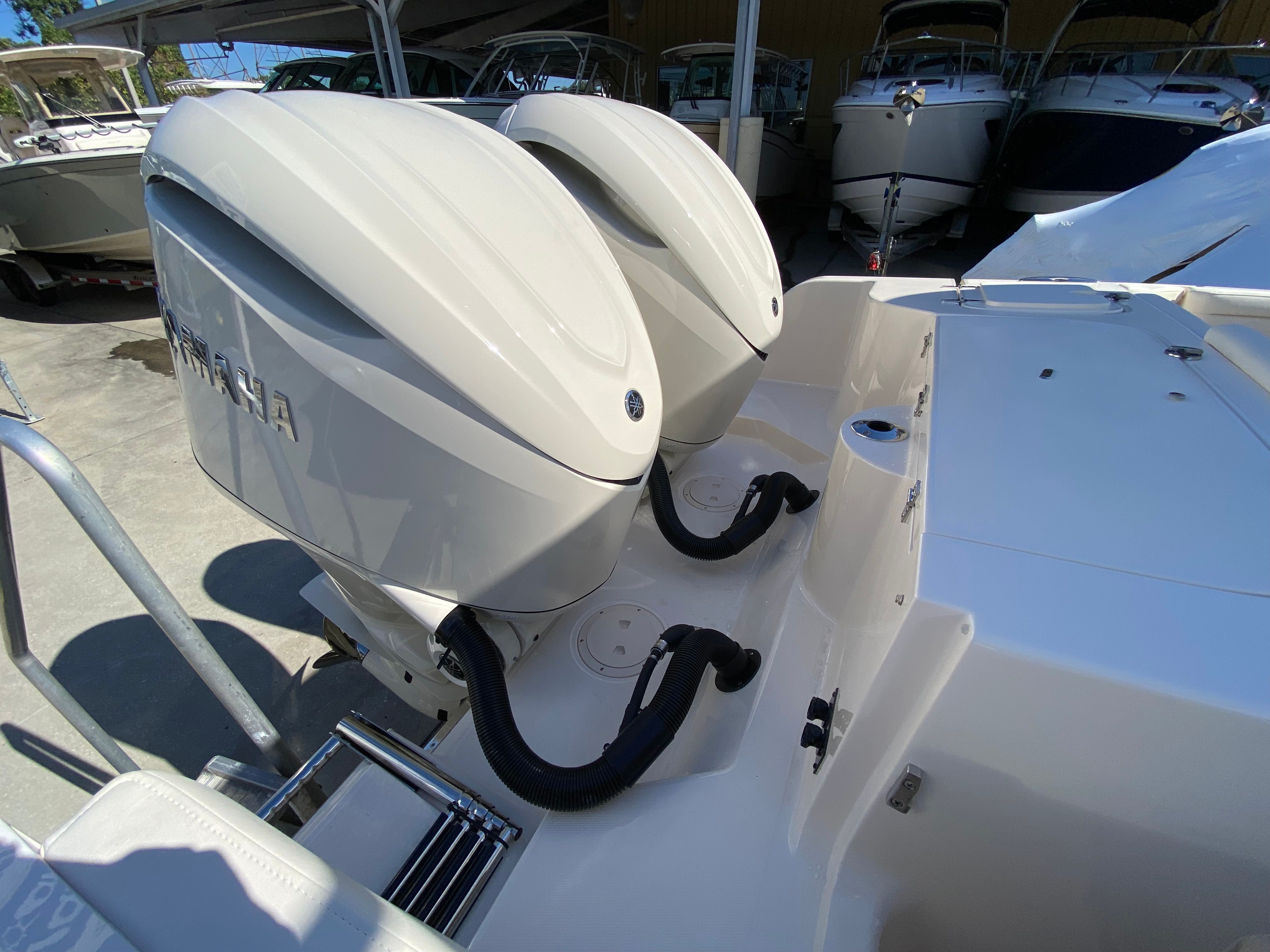 Owning a Grady-White Freedom 285 dual console boat opens the door to a world of fun, relaxation, and adventure. The spacious layout is perfect for socializing, with plenty of seating and open areas for guests to mingle, dine, or lounge. The sun platform insert with cushion transforms the deck into a luxurious sunbathing haven, while the refrigerator in the bar keeps your favorite drinks and snacks within easy reach. Underwater lights create a magical atmosphere for evening cruises, making every moment on the water memorable.The Freedom 285’s dual console design offers exceptional versatility, allowing you to seamlessly transition between fishing, cruising, and entertaining. The ample storage space ensures your gear is organized and accessible, while the protective covers and shade options provide comfort in any weather. With its powerful dual Yamaha engines, you’ll enjoy thrilling performance and reliable operation, making every outing a pleasure.