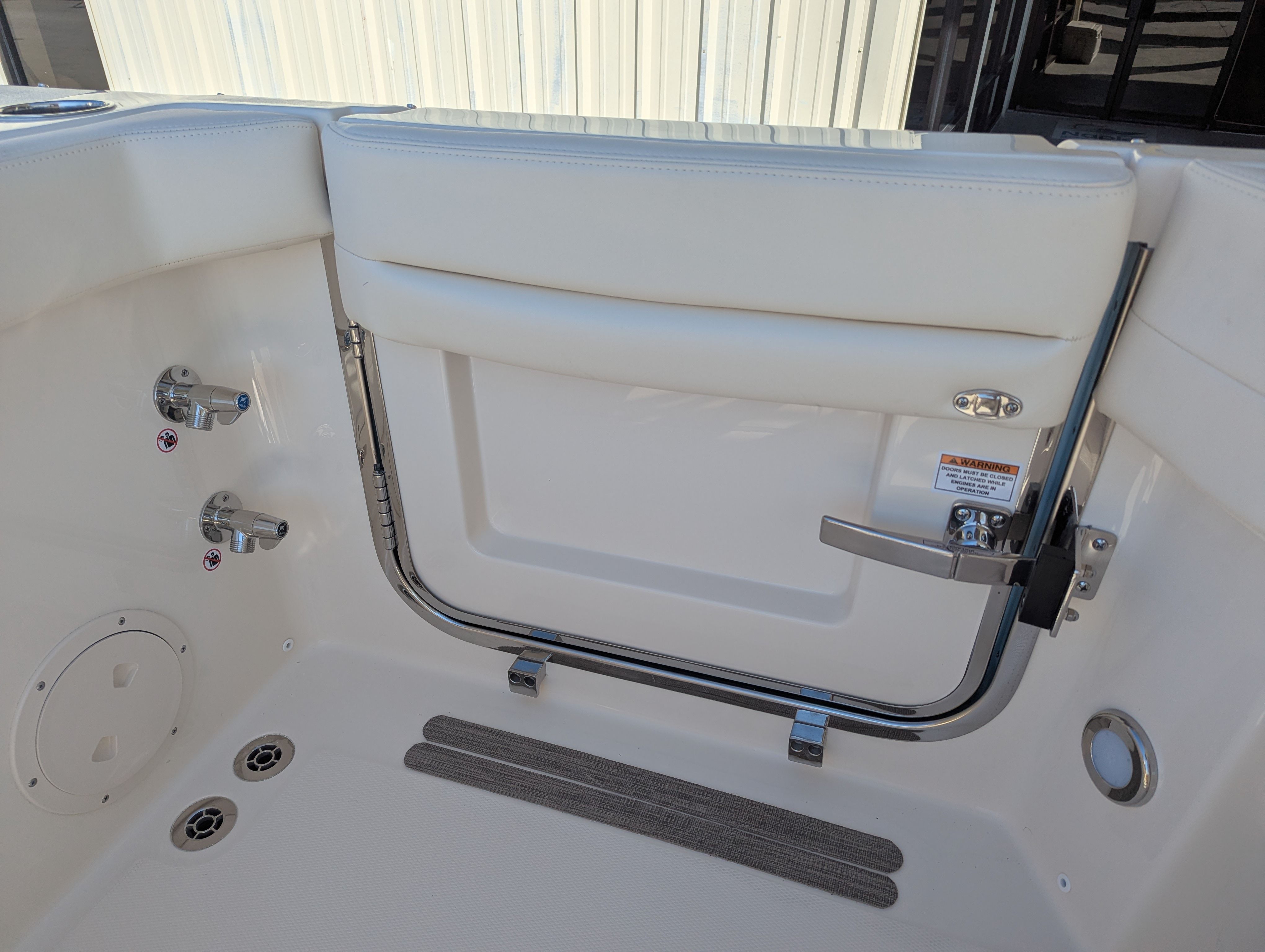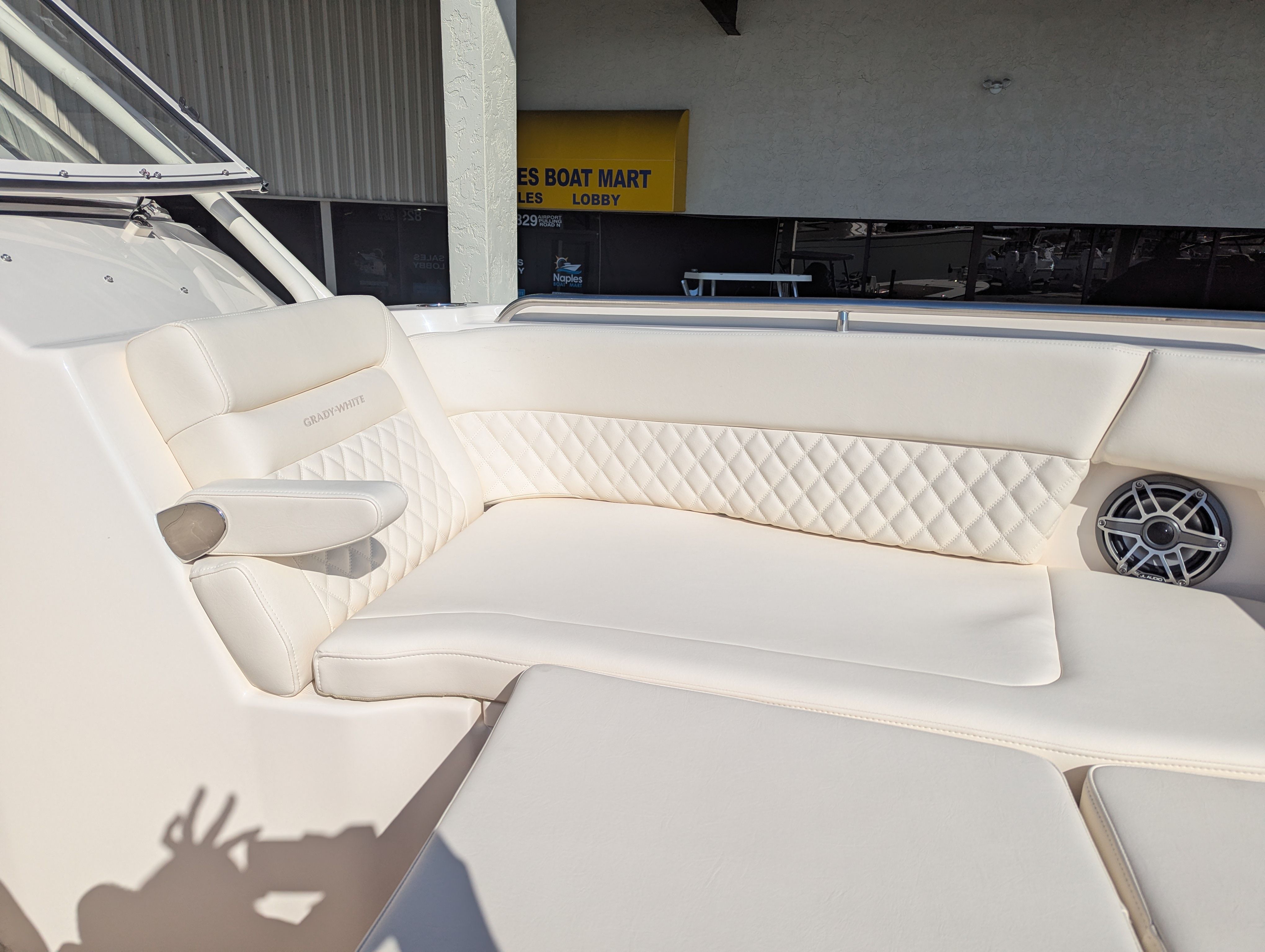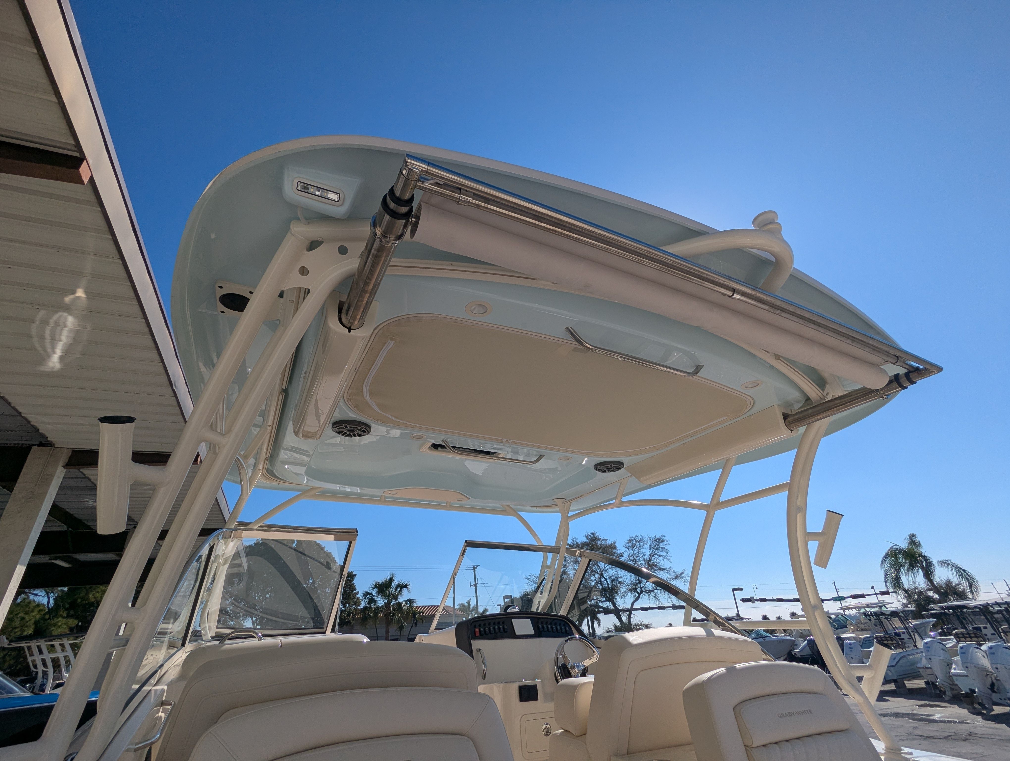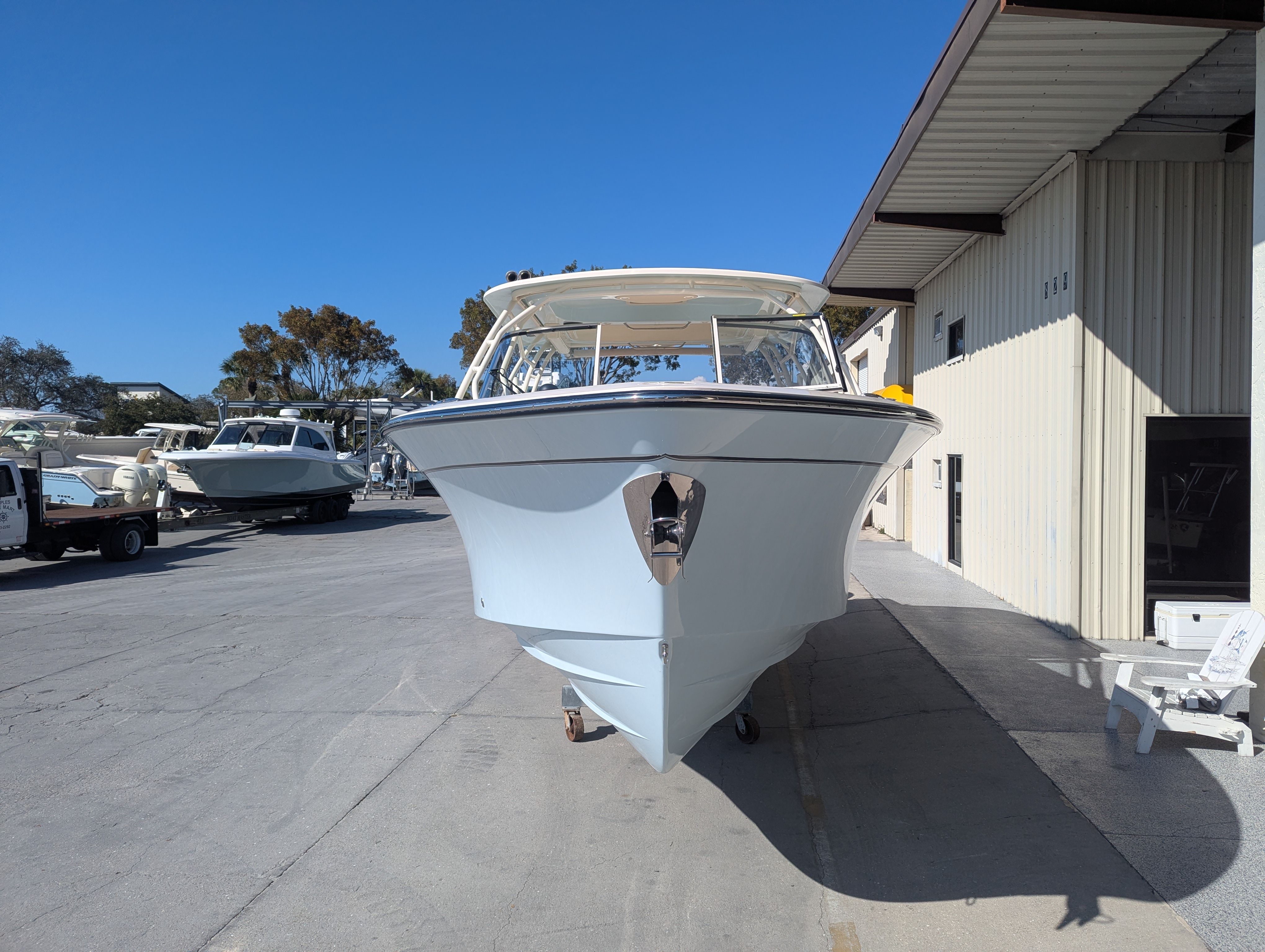 The Grady-White Freedom 307 is designed with practicality in mind. Its dual console layout offers ample storage for gear, water toys, and personal items, keeping the deck clutter-free and organized. The twin Yamaha F350 engines not only provide impressive speed but also make docking and maneuvering straightforward, especially in crowded marinas or tight slips.Fuel efficiency is a hallmark of Yamaha engines, allowing you to spend more time on the water and less time refueling. The boat’s thoughtful design ensures easy access to all areas, making maintenance and cleaning hassle-free. The Electric Sure Shade Top Oyster and other shade options provide quick and convenient protection, so you can adapt to changing conditions with ease.