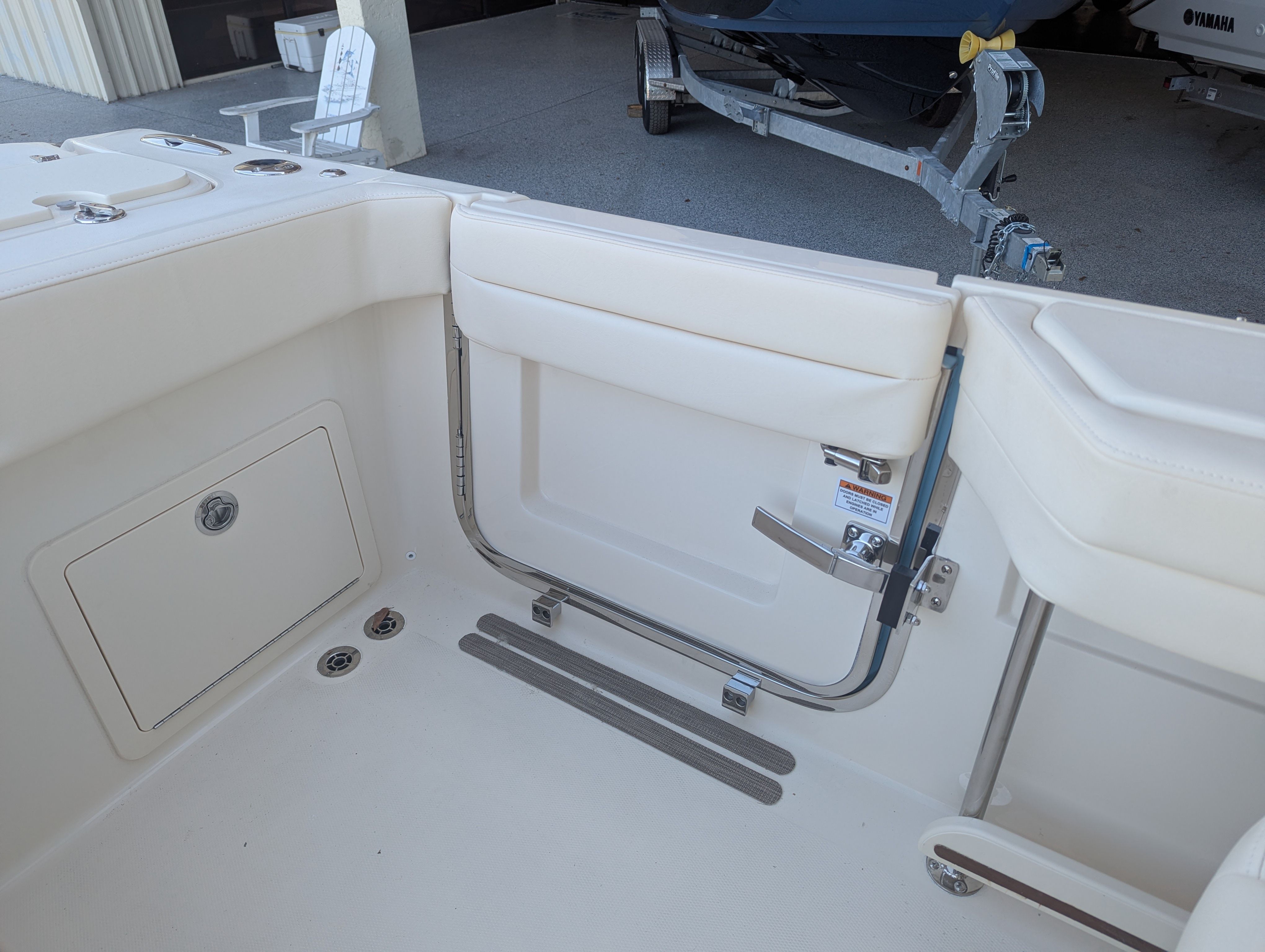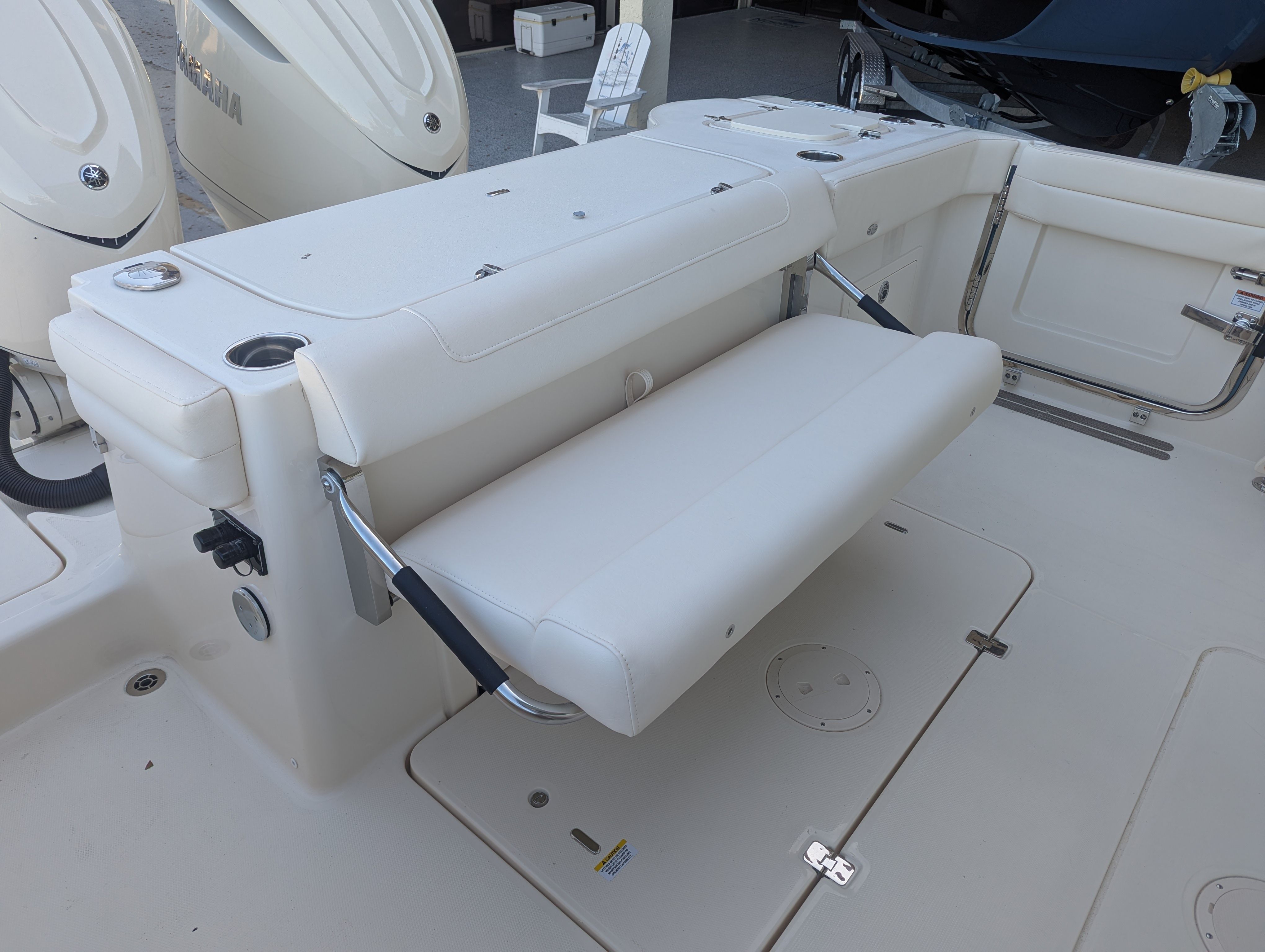 Power and reliability are at the heart of the Grady-White Freedom 325. Equipped with twin Yamaha F350 engines, this boat boasts a combined 700 horsepower, delivering exhilarating speed and smooth handling in a variety of conditions. The Yamaha prerig ensures seamless integration and optimal performance, allowing you to enjoy effortless acceleration, responsive maneuvering, and confidence-inspiring control. Whether you are cruising along the coastline, heading offshore for a day of fishing, or enjoying water sports, the Freedom 325’s robust powertrain provides the performance you need for every adventure.