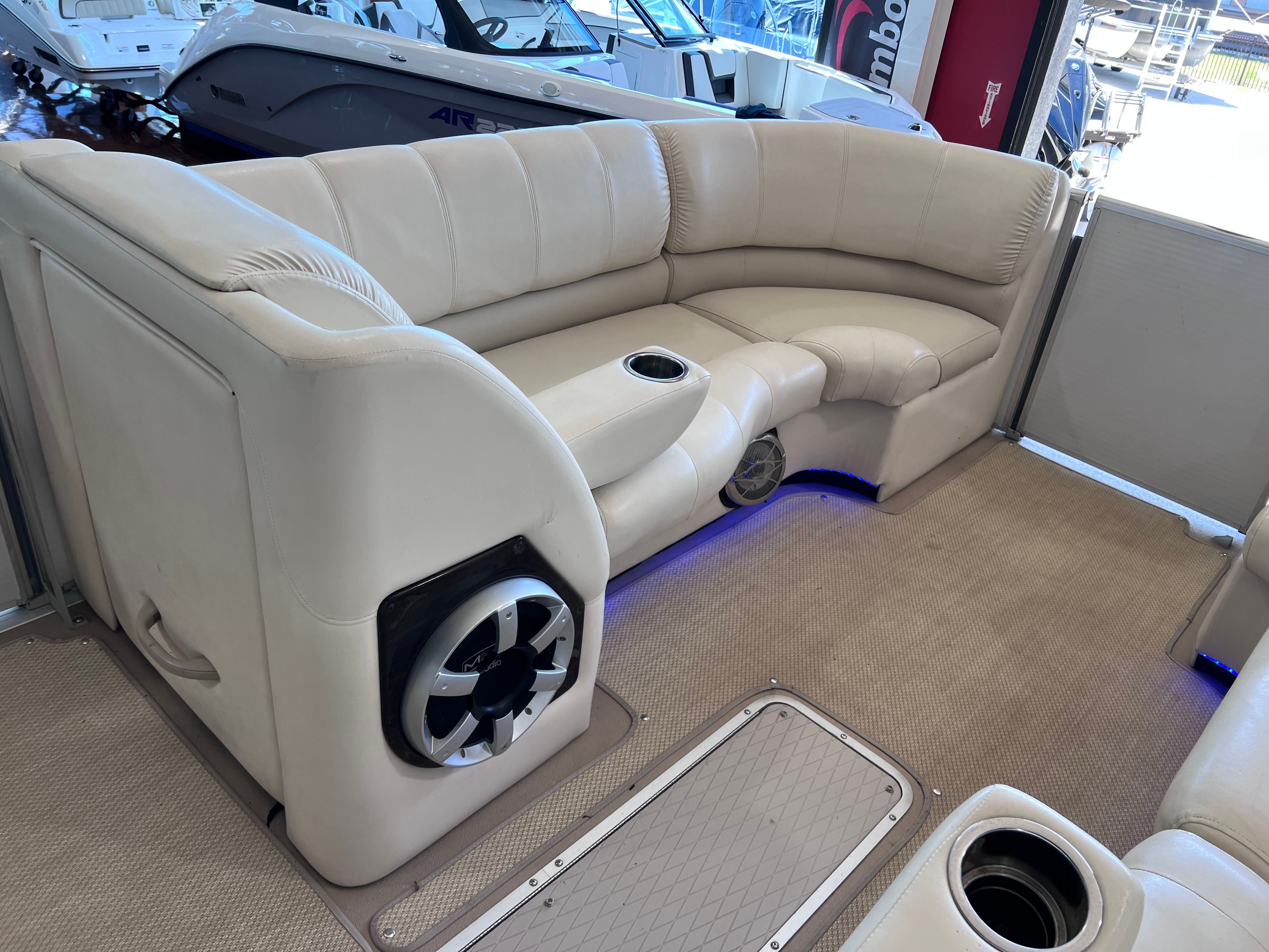The Harris Grand Mariner 230 is thoughtfully designed with features that enhance both comfort and convenience. The 23-foot length provides a spacious deck area, allowing guests to move freely and enjoy the open layout. Plush seating invites relaxation, while the sturdy construction ensures a stable and secure ride. The pontoon’s layout is perfect for hosting gatherings, with plenty of room for coolers, snacks, and water toys. The high-quality materials and attention to detail are evident throughout, reflecting Harris’s reputation for excellence in pontoon boat manufacturing.