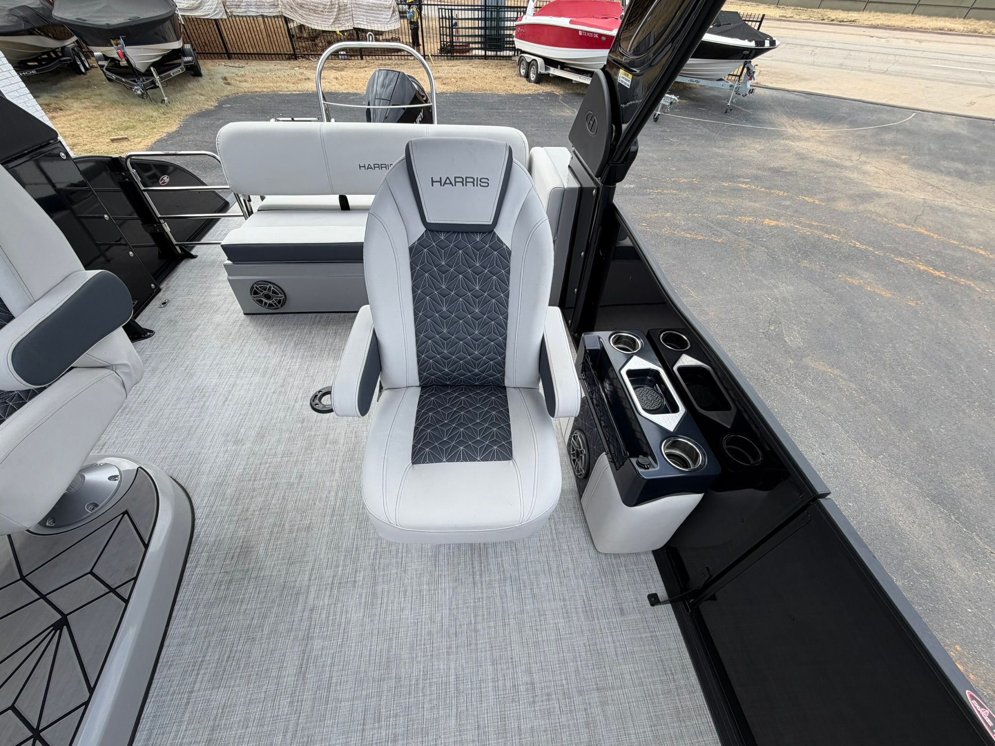 Now available for sale at our Used Boat Super Center in Lewisville, this exceptionally clean 2023 Harris Grand Mariner 230 features a sleek black and grey exterior paired with a light gray and dark graphite accent interior. Powered by a Mercury fuel-injected V8 300 HP engine, this boat has just 96 freshwater hours and delivers impressive performance, smooth handling, and premium comfort throughout.