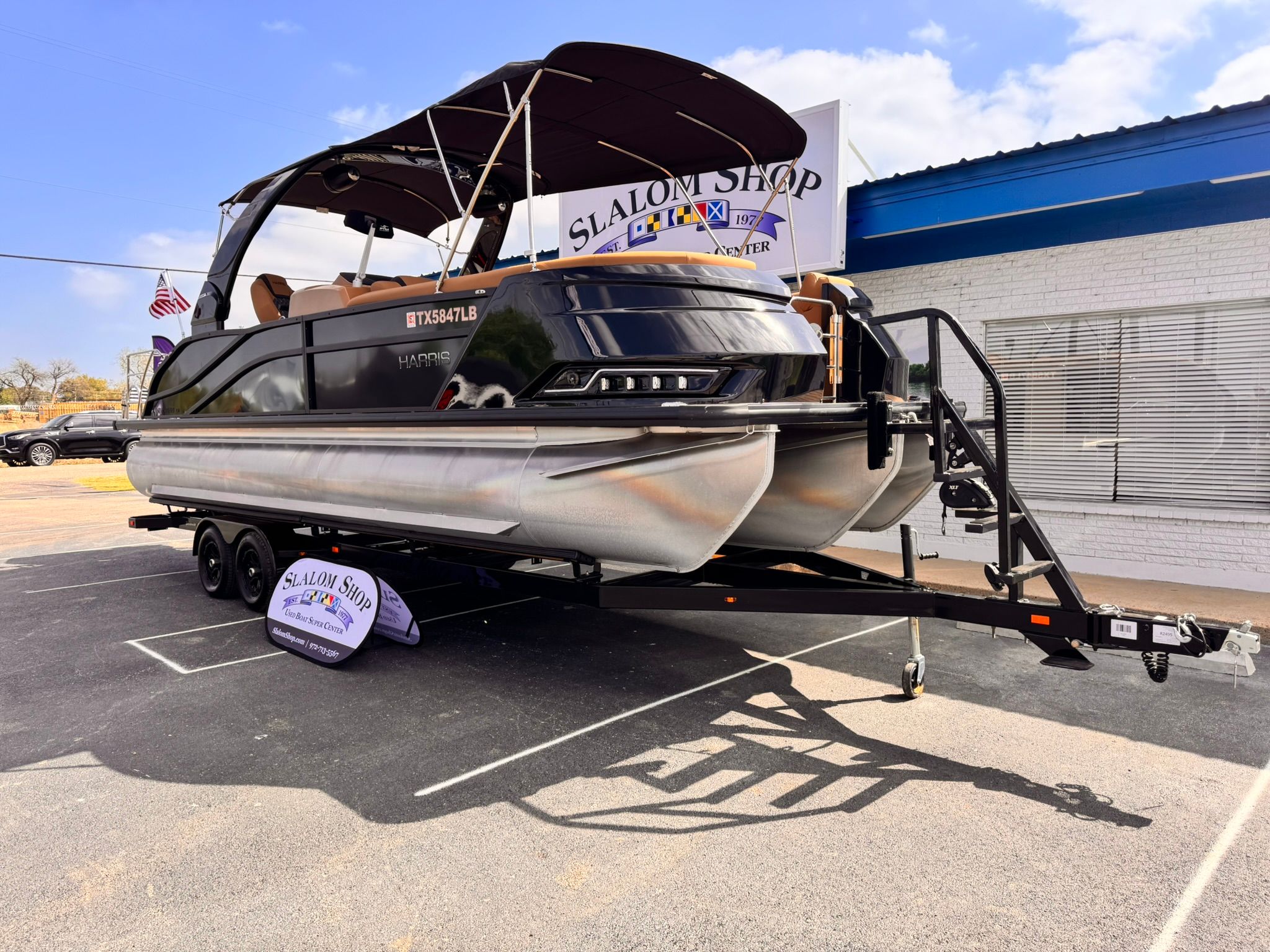 Now available at our Used Boat Super Center in Lewisville, this 2024 Harris Grand Mariner 250 is a top-of-the-line luxury tri-toon built for performance, comfort, and entertaining. Finished with a sleek black fence panel and a rich brown interior, this Grand Mariner is powered by a Mercury V10 400 horsepower outboard with only 19 hours, paired with a 4-blade stainless prop and electric power-assisted steering.