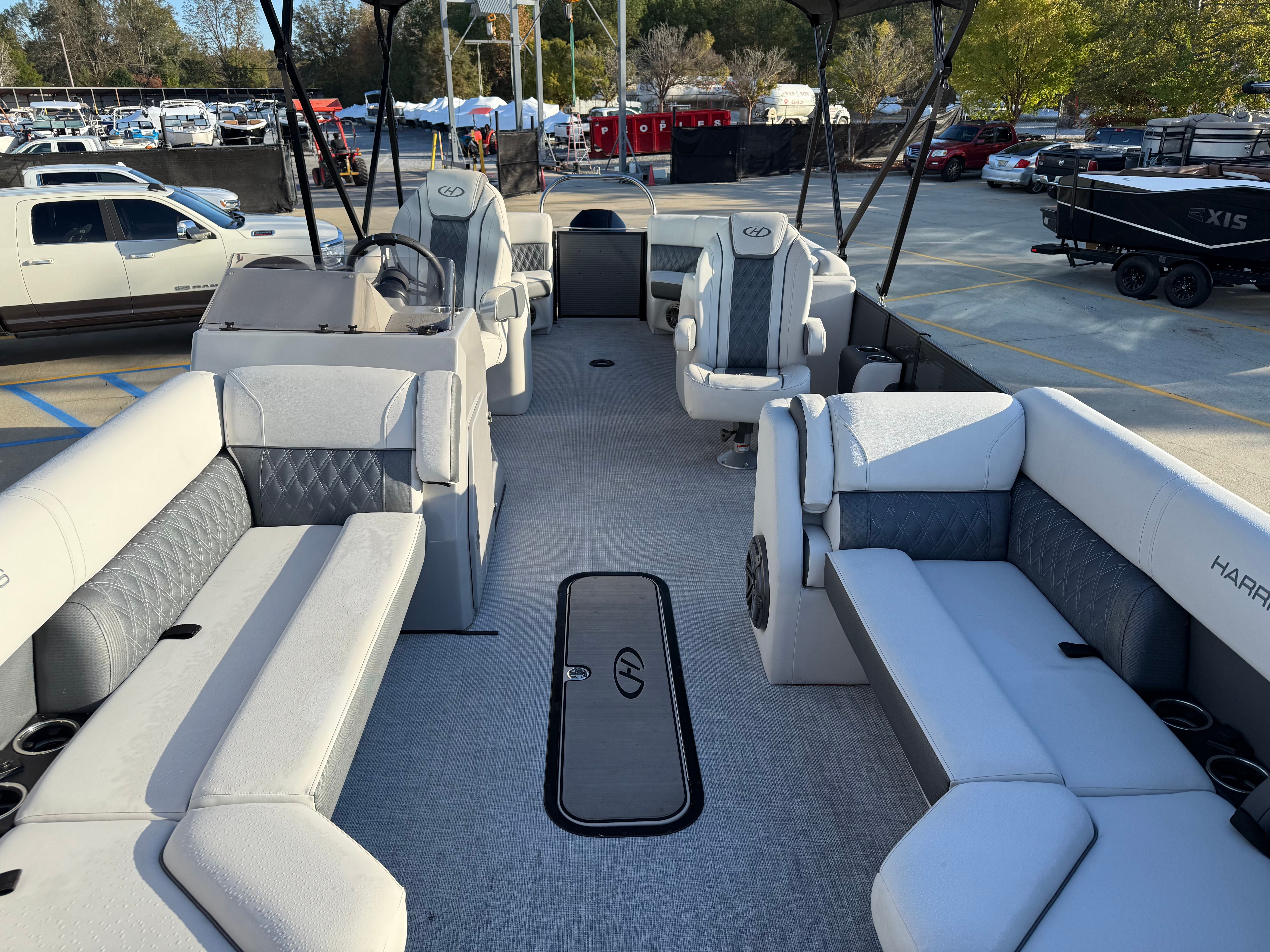 In summary, this 2023 Harris Sunliner 250 pontoon boat for sale offers an unbeatable combination of luxury, performance, and value. With its powerful 250-horsepower engine, spacious layout, and low engine hours, it stands out as a top option for anyone seeking a used Harris boat for sale. Whether you are new to boating or a seasoned captain, the Sunliner 250 promises years of enjoyment on the water. Do not miss your chance to own this exceptional pontoon—contact the dealer today for more information and make your boating dreams a reality.