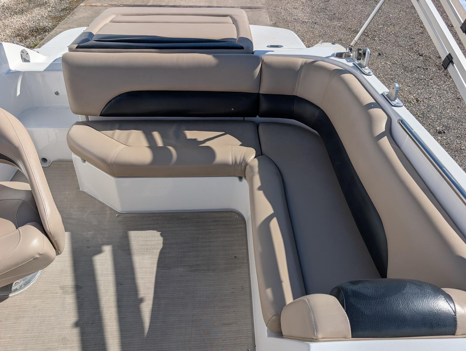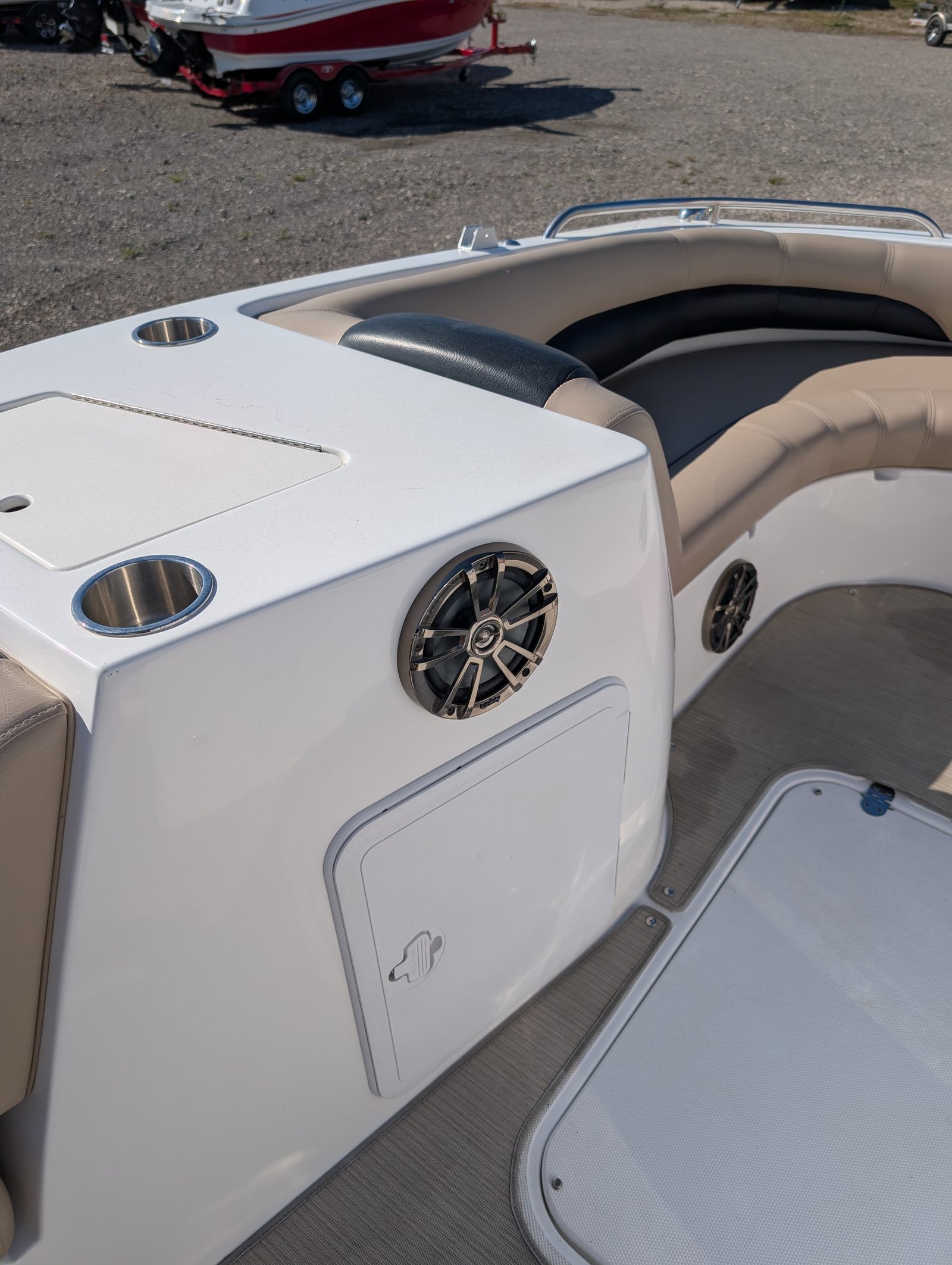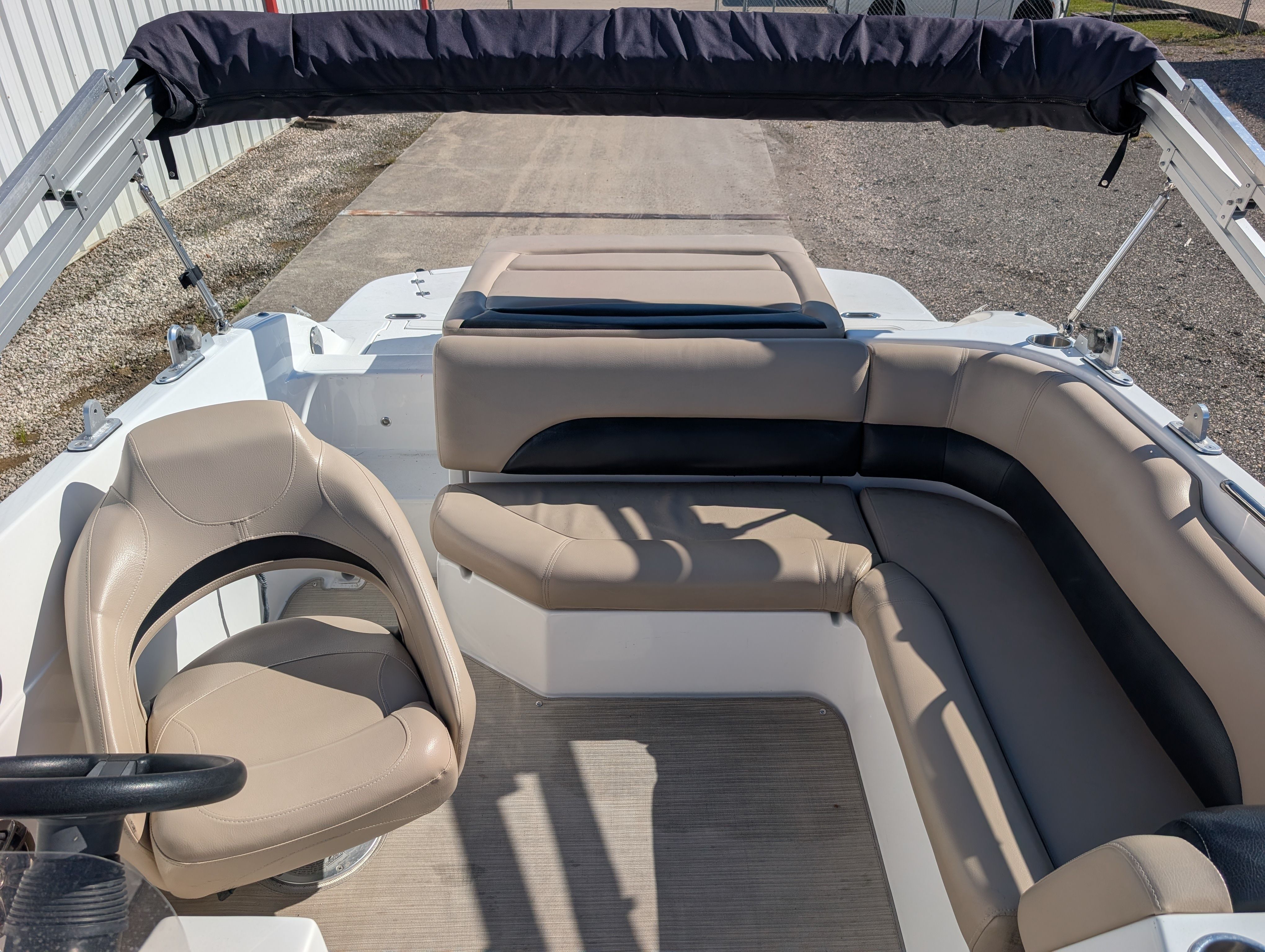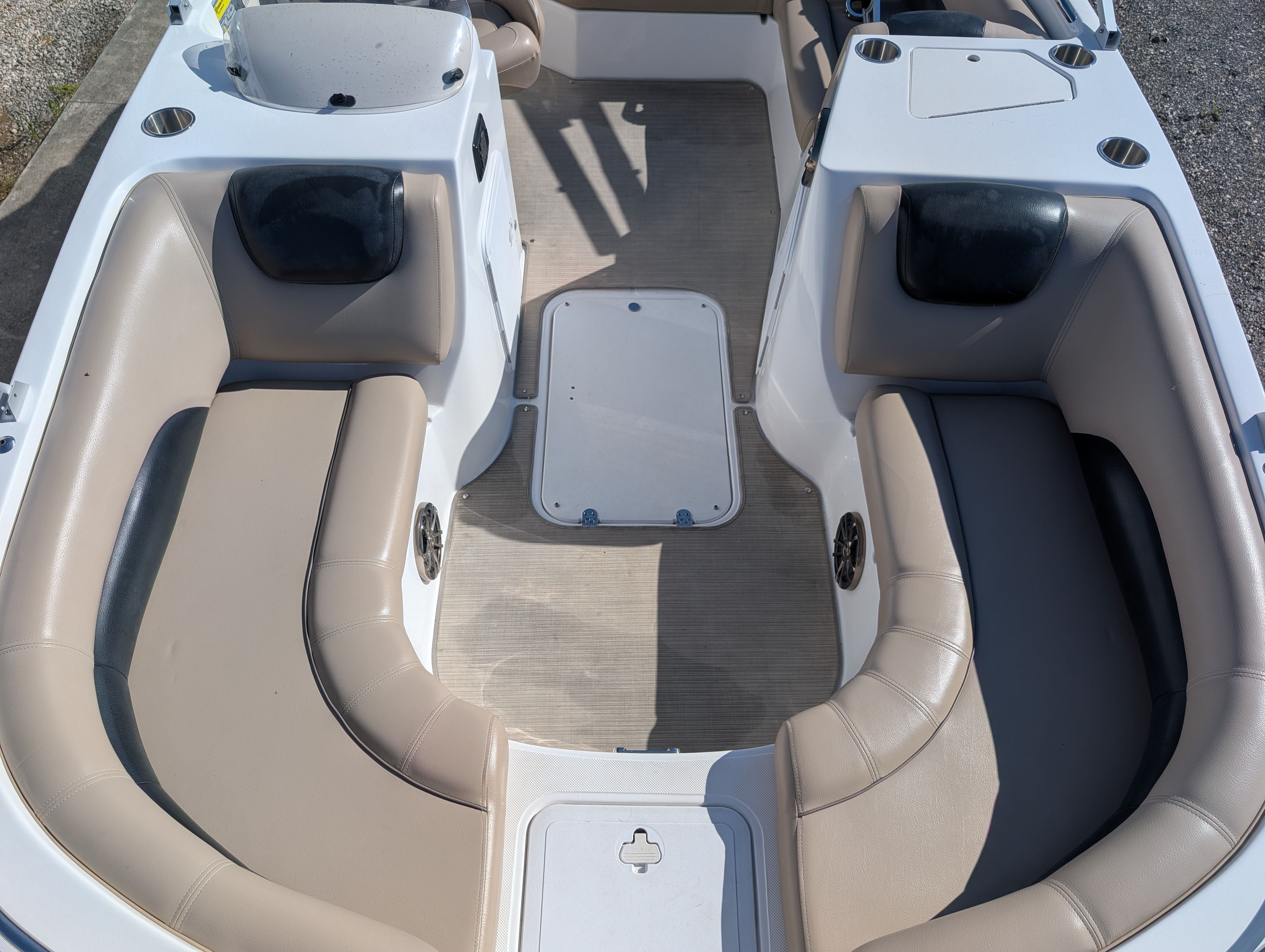 This Hurricane boat for sale is loaded with special features that enhance both its recreational and practical appeal. The wake tower is a standout addition, perfect for wakeboarding, waterskiing, or tubing. It provides a sturdy and elevated tow point, ensuring smooth rides and big air for thrill-seekers. The bimini top offers essential shade and protection from the sun, allowing you to stay cool and comfortable during long summer outings. For anglers, the fish finder is a valuable tool, helping you locate the best fishing spots with ease and precision. These features make the Hurricane 188 SS a true multi-purpose vessel, ready for whatever adventure you have in mind.