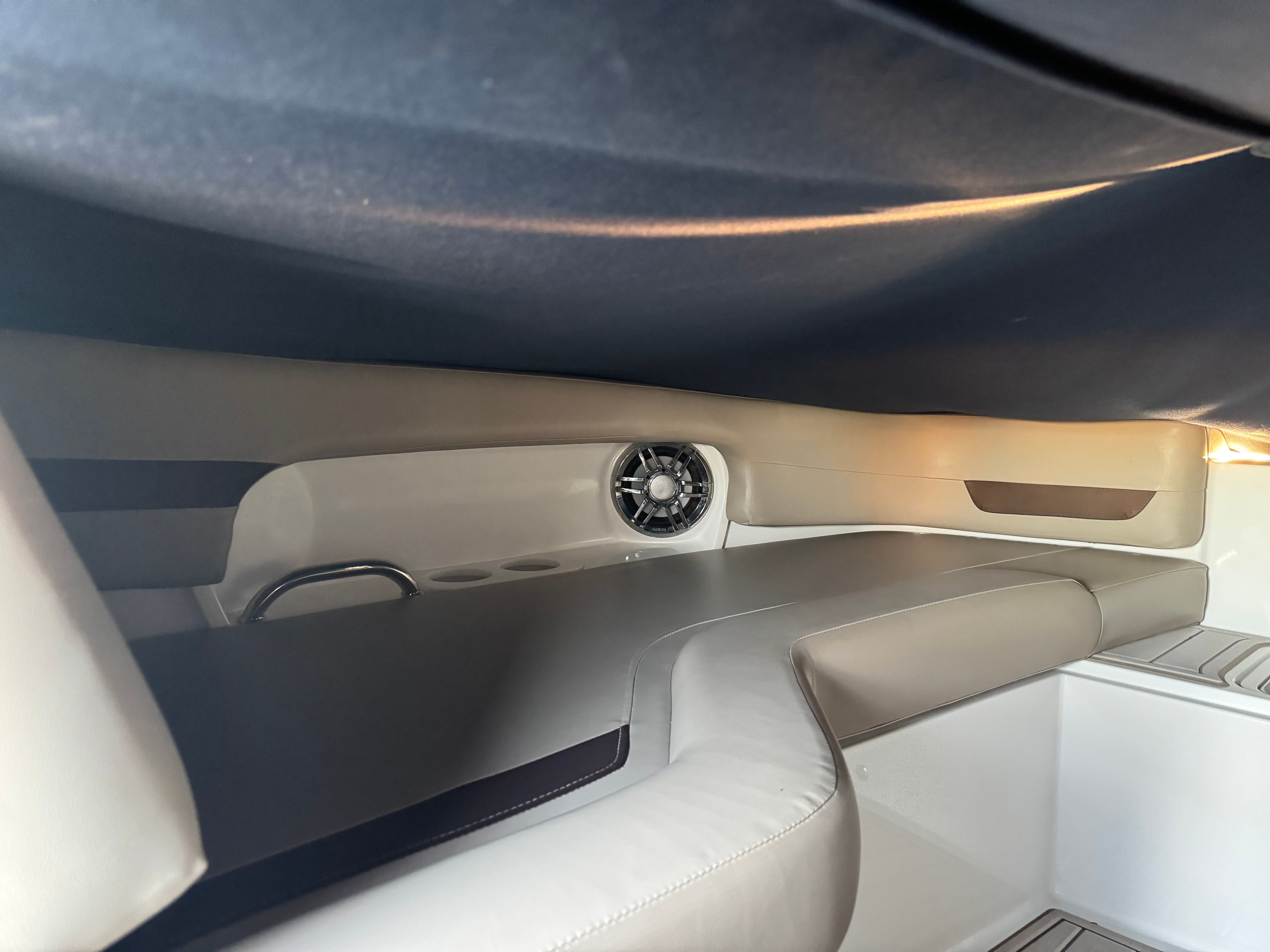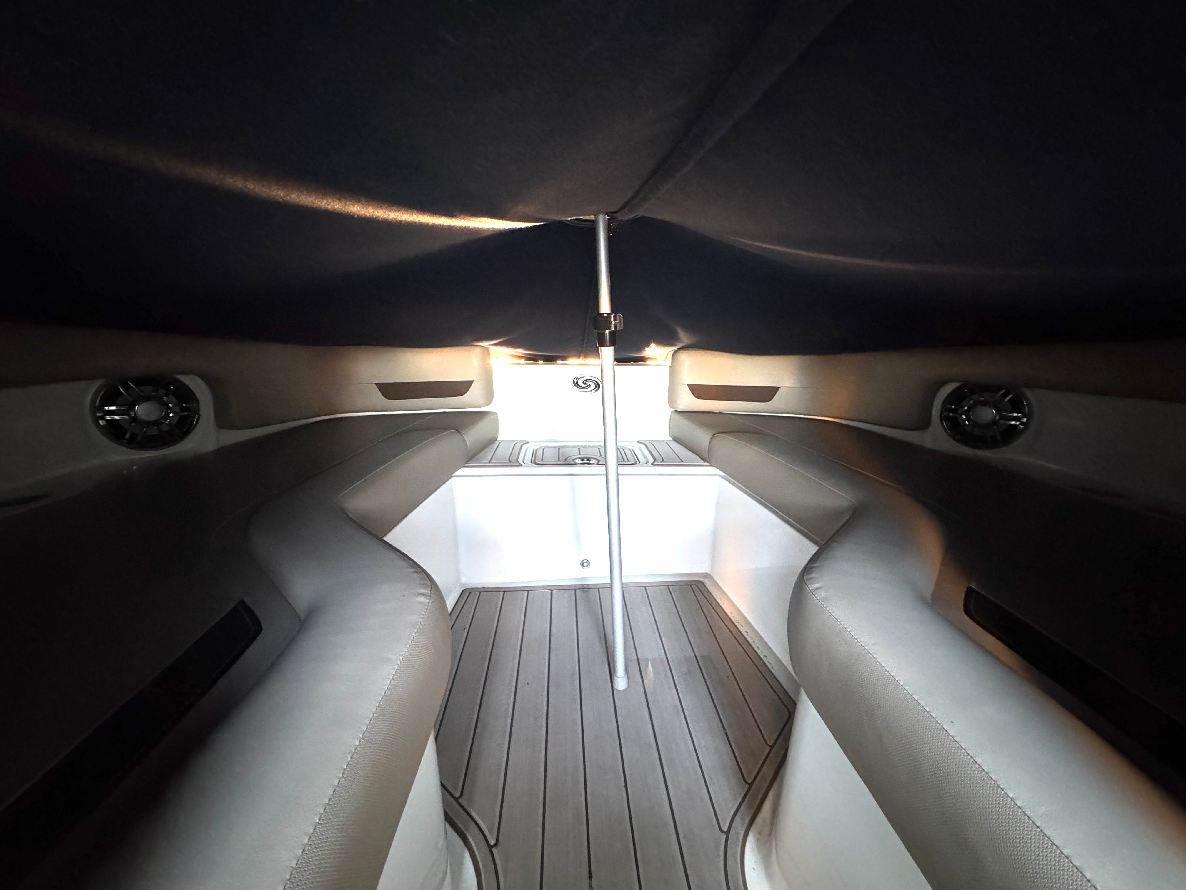 This Hurricane boat for sale is designed with comfort and convenience in mind. The bowrider layout maximizes seating and lounging space, allowing everyone on board to find their perfect spot. The open bow area is perfect for sunbathing or enjoying panoramic views, while the spacious cockpit provides plenty of room for socializing and entertaining. Thoughtful storage solutions throughout the boat ensure that all your gear, snacks, and essentials are easily accessible yet neatly stowed away.The Sundeck 235 OB’s ergonomic helm station puts all controls within easy reach, offering intuitive operation and excellent visibility. High-quality materials and finishes are evident throughout, from the plush seating to the durable flooring, ensuring a luxurious experience every time you step aboard. With its versatile design, this bowrider is equally at home hosting a lively group of friends or providing a peaceful retreat for a quiet afternoon on the water.