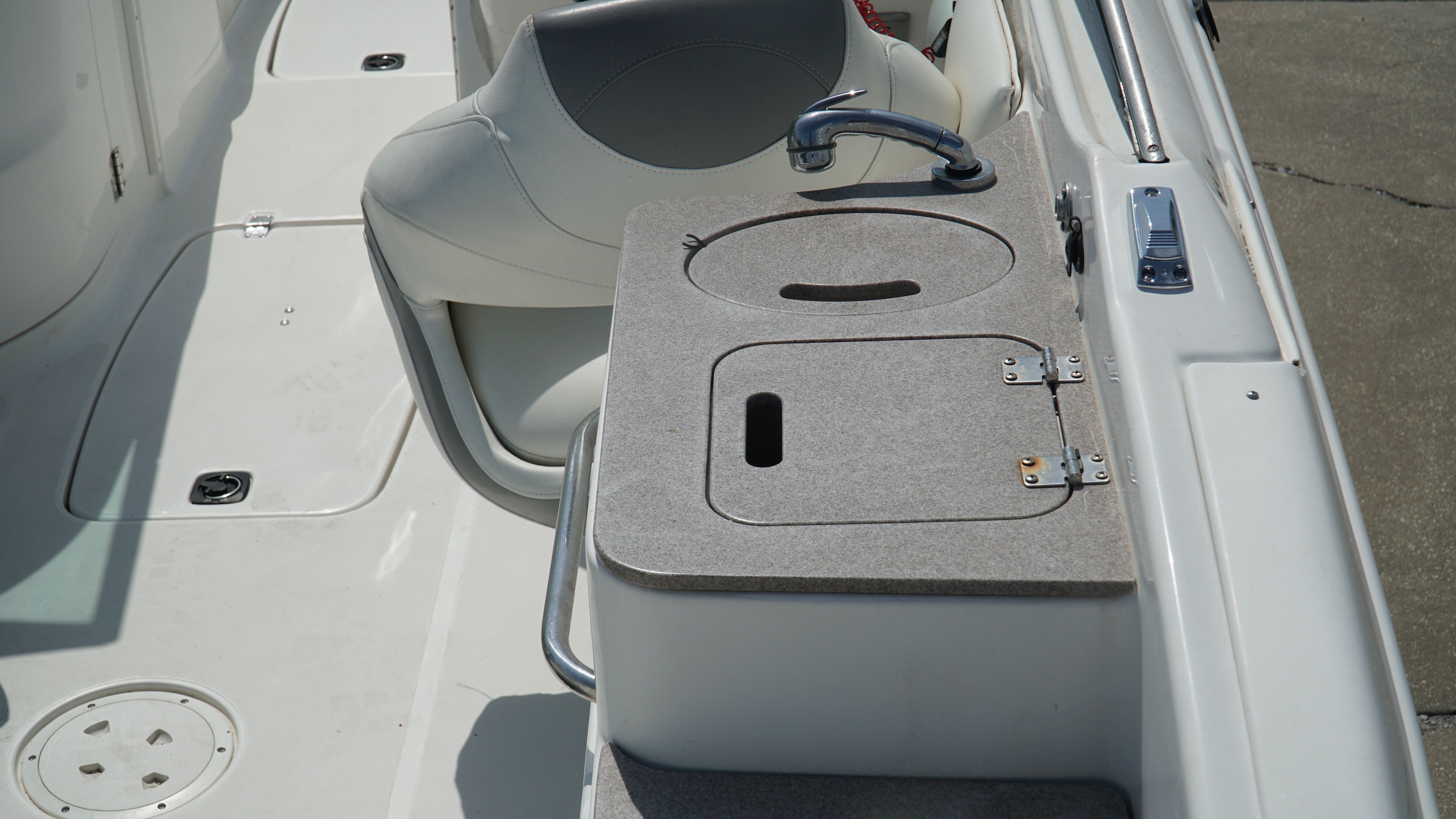 Practicality is at the heart of the Hurricane Sundeck 2400 OB’s appeal. The Center Console configuration makes it easy to move around the boat, access storage compartments, and manage gear. Docking and maneuvering are straightforward, thanks to the responsive handling and intuitive controls. The efficient 200-horsepower engine helps keep fuel costs in check, so you can spend more time enjoying the water and less time worrying about expenses.Storage is another key advantage of this model. The smartly designed compartments provide ample space for life jackets, fishing gear, water toys, and personal belongings, keeping the deck clutter-free and organized. The durable construction and easy-to-clean surfaces make maintenance a breeze, allowing you to spend more time on the water and less time on upkeep.