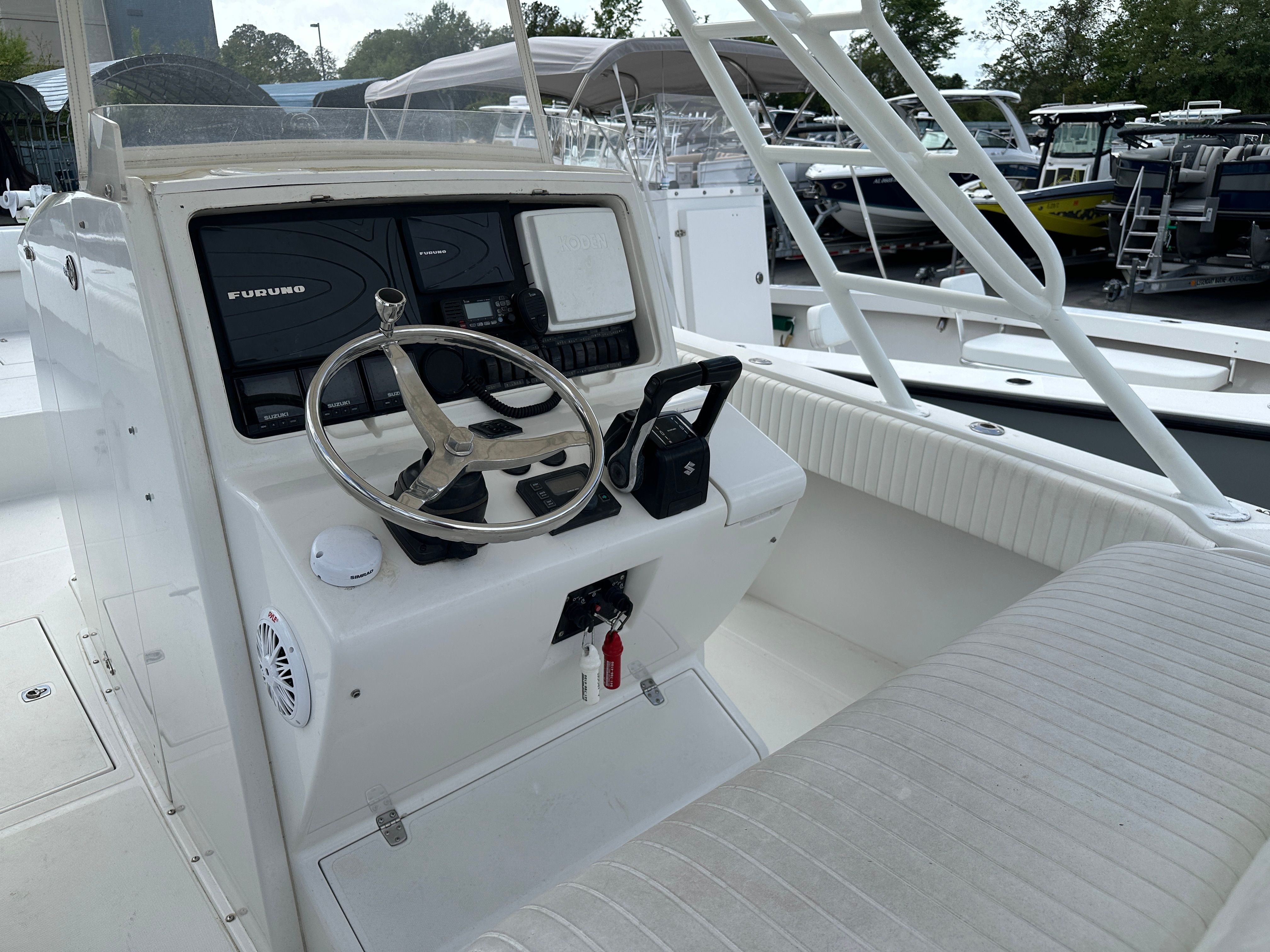 Owning a Jupiter 31 HFS Center Console boat opens up a world of fun and adventure on the water. The spacious deck and smart layout make it easy to host friends and family for a day of sun, sea, and socializing. The powerful engines ensure you can reach your favorite destinations quickly, while the stable hull design provides a comfortable ride for everyone on board. Whether you’re casting lines at dawn, enjoying a sunset cruise, or anchoring at a secluded beach, this Jupiter boat for sale offers the versatility to create unforgettable memories.The center console design is especially appealing for those who value both fishing and leisure. With unobstructed access around the boat, anglers can move freely while pursuing their catch, while non-fishing guests can relax and enjoy the scenery. The Jupiter 31 HFS is also known for its smooth handling and responsive controls, making it a pleasure to operate for boaters of all experience levels.